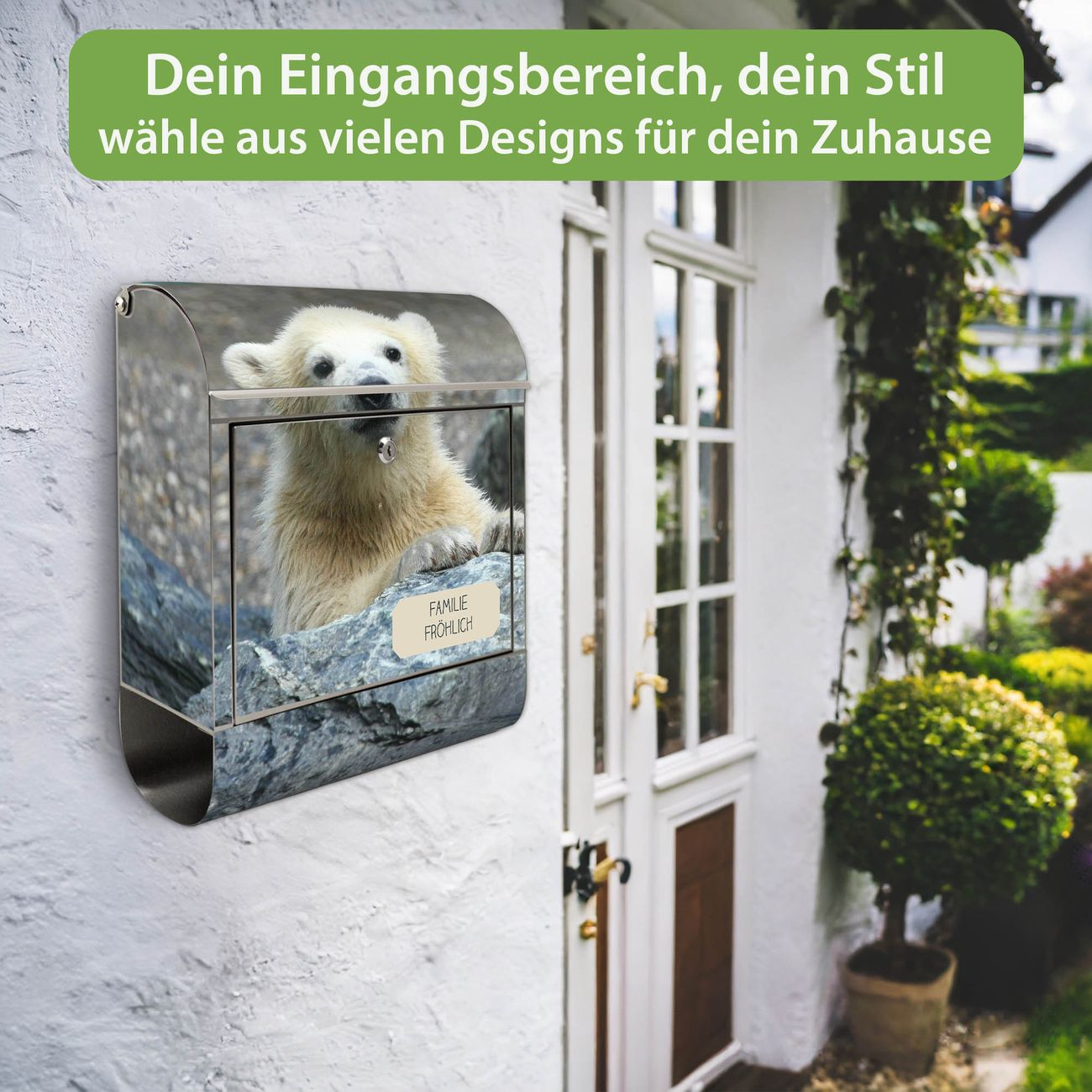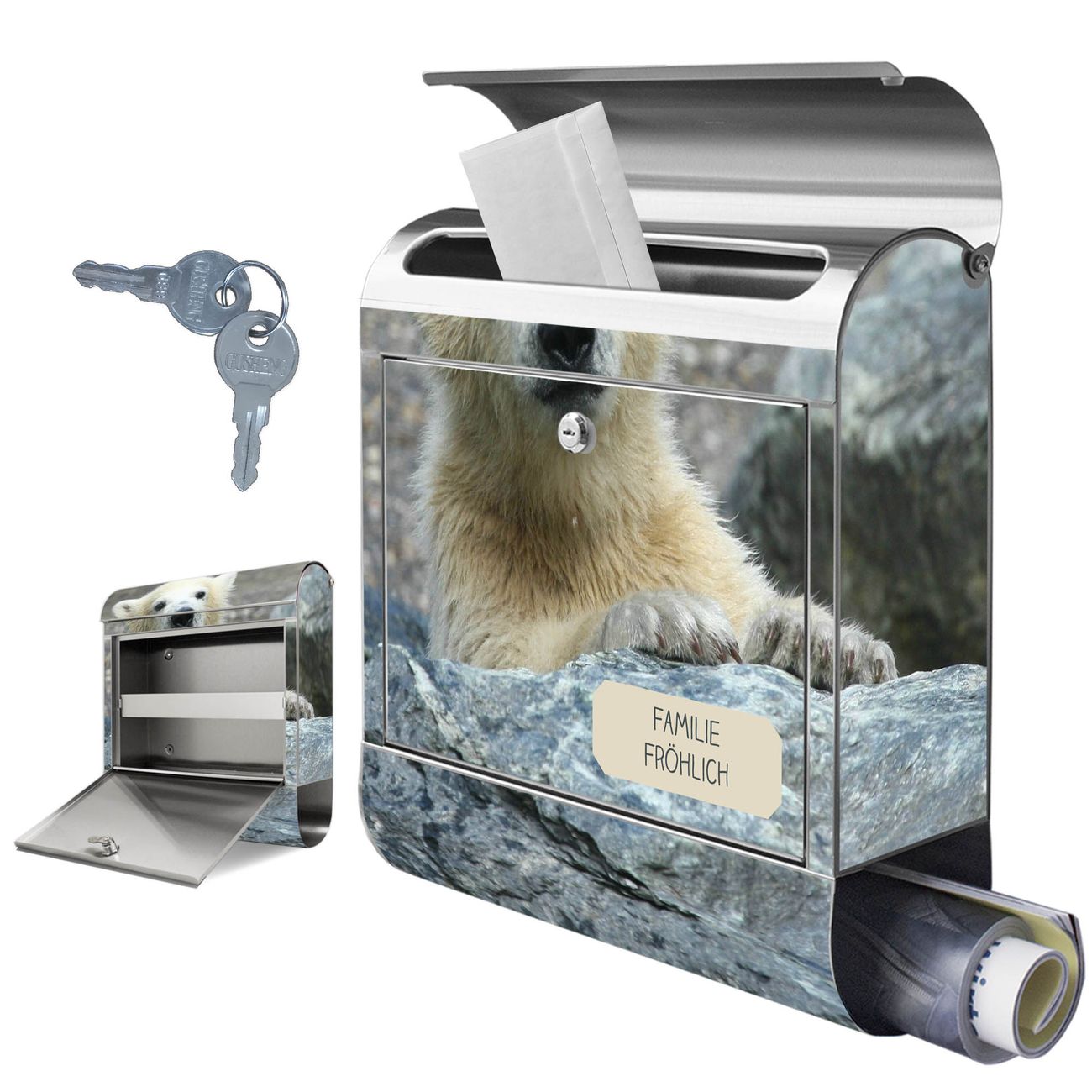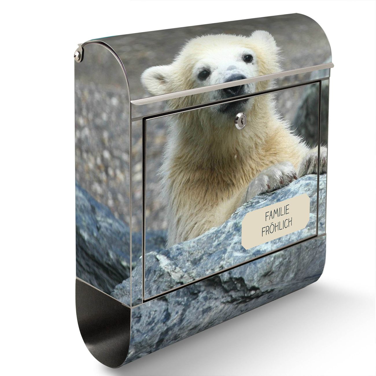 Wandbriefkasten Edelstahl Motiv Eisbär Baby