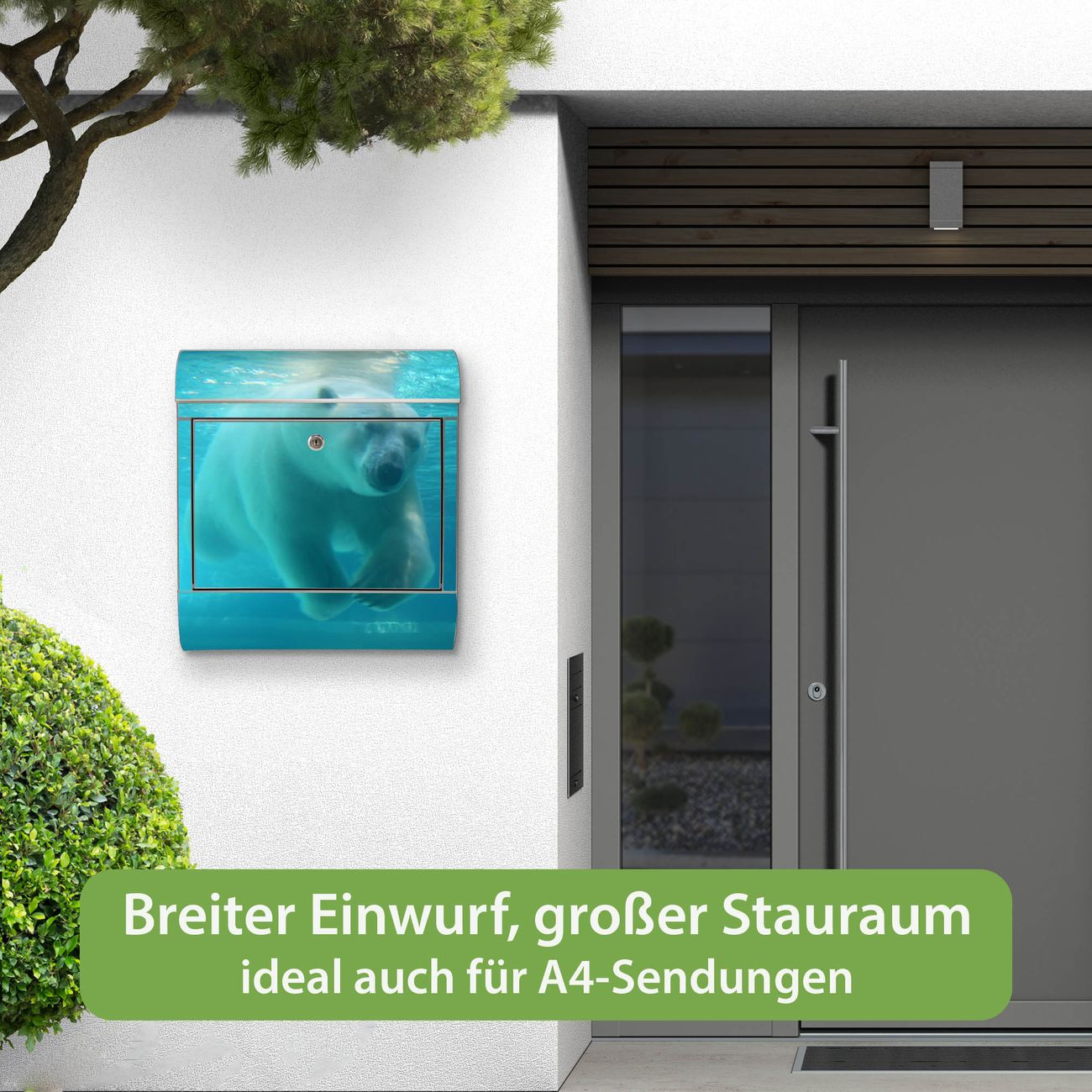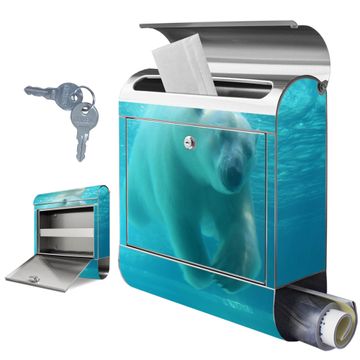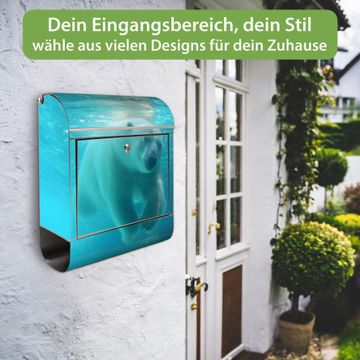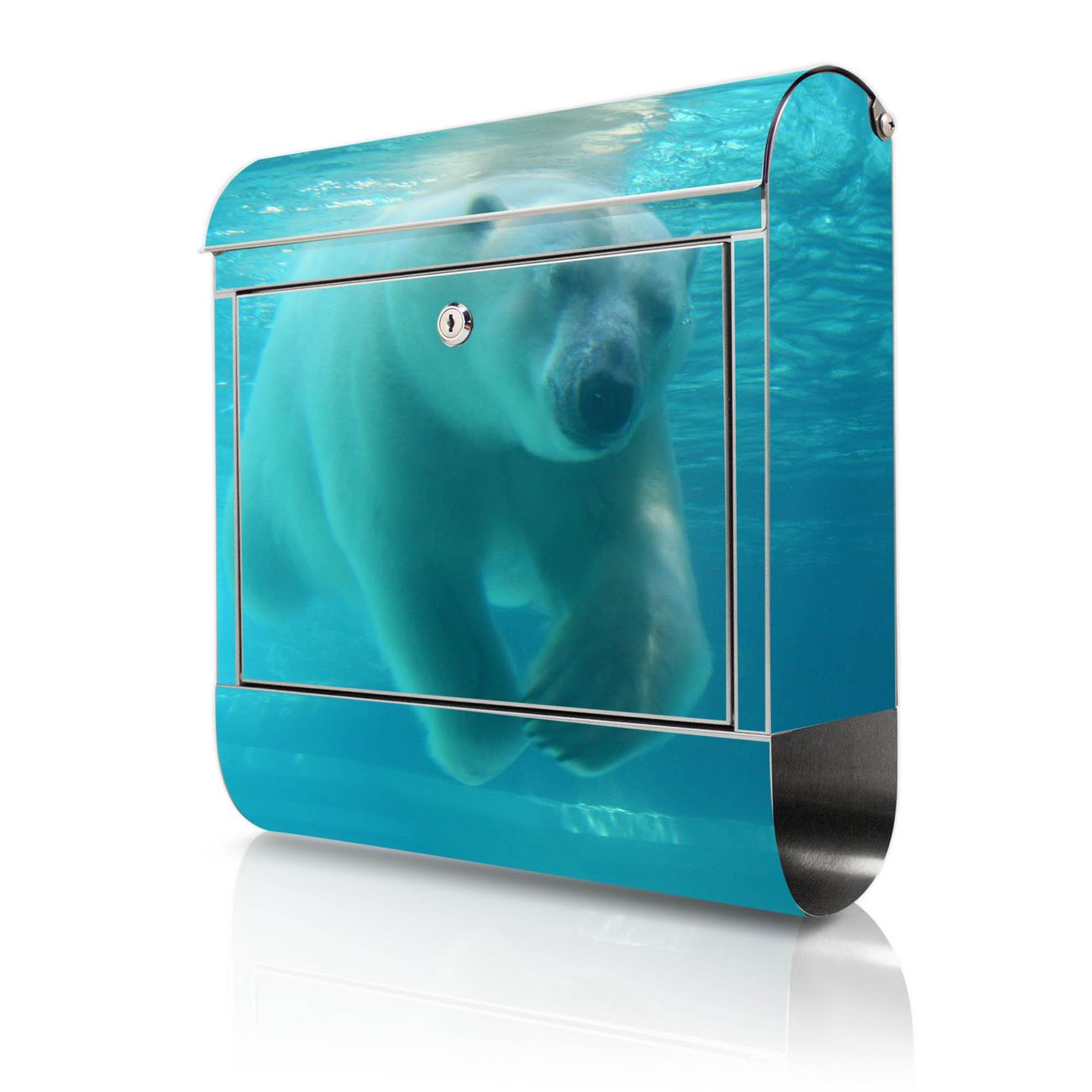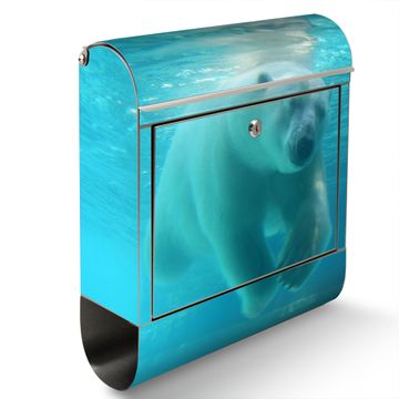 Wandbriefkasten Edelstahl Motiv Eisbär unter Wasser