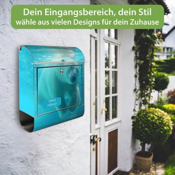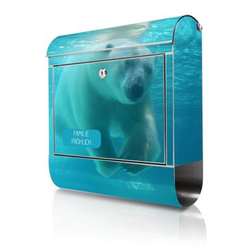 Wandbriefkasten Edelstahl Motiv Eisbär unter Wasser