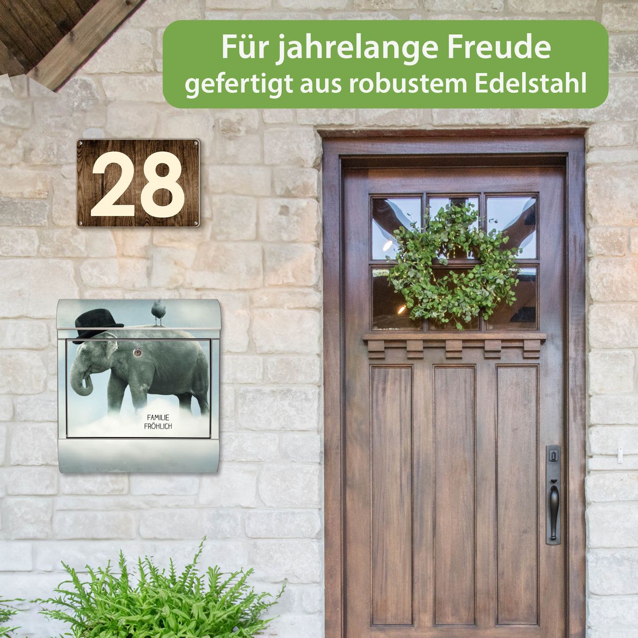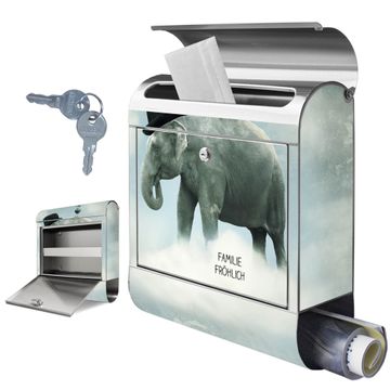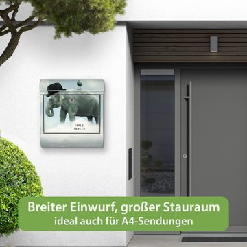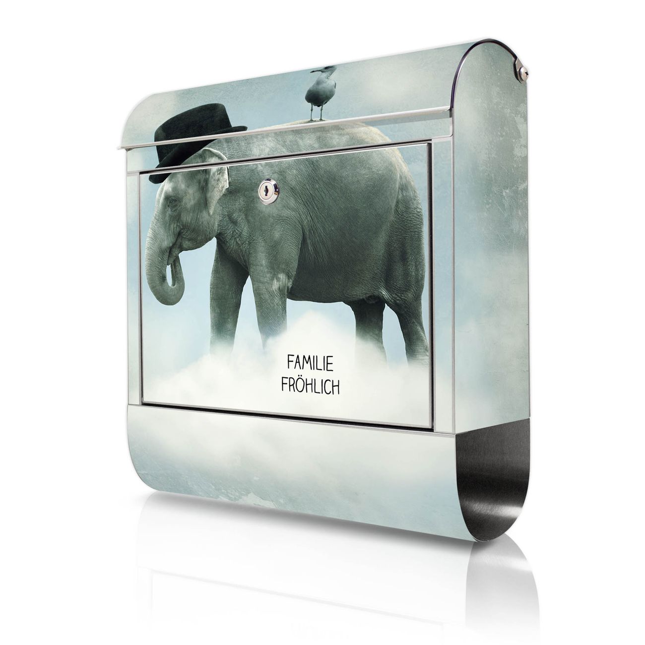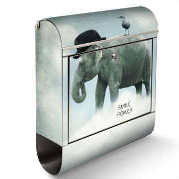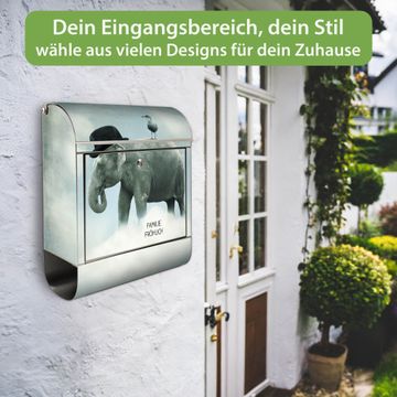 Wandbriefkasten Edelstahl Motiv Elefant und Möwe