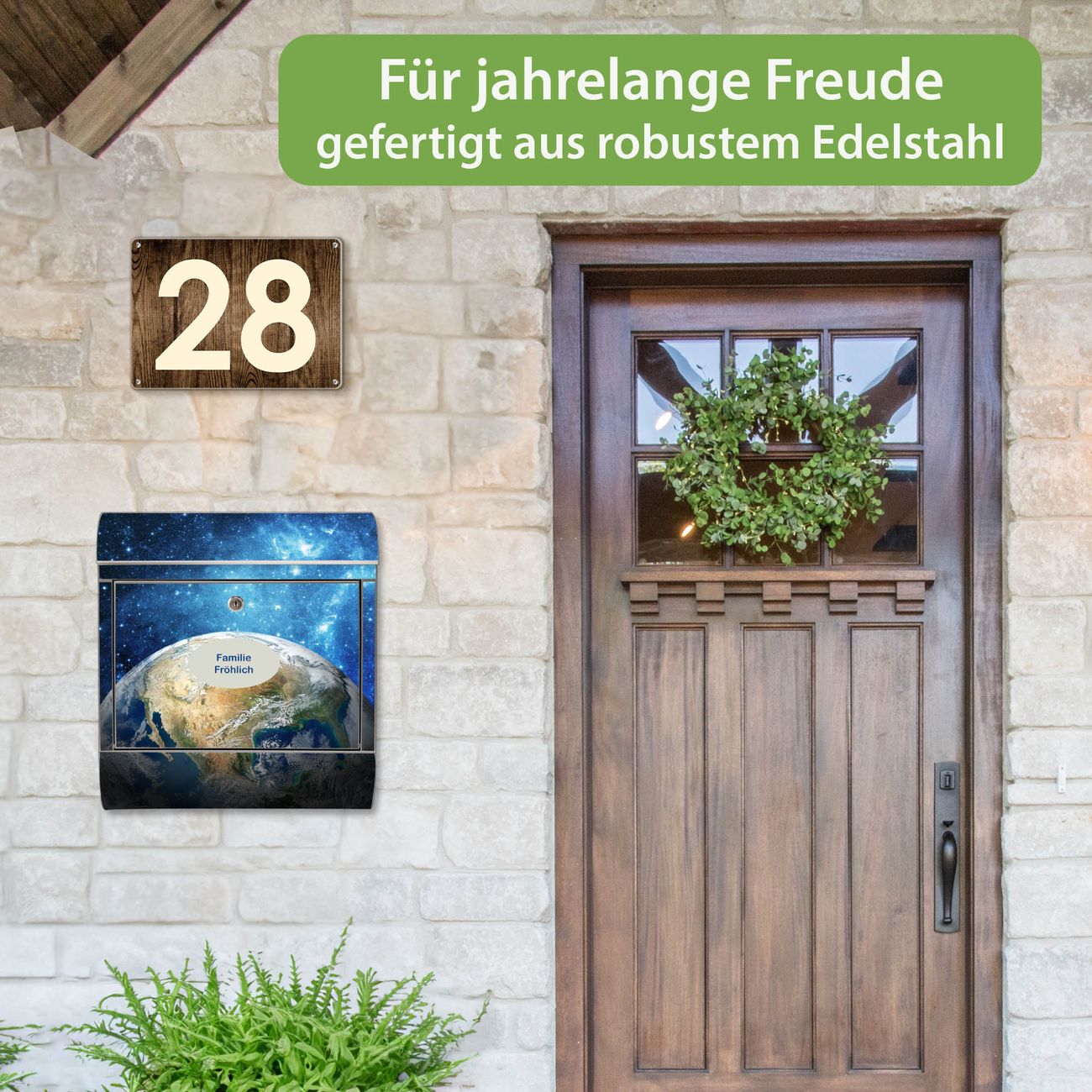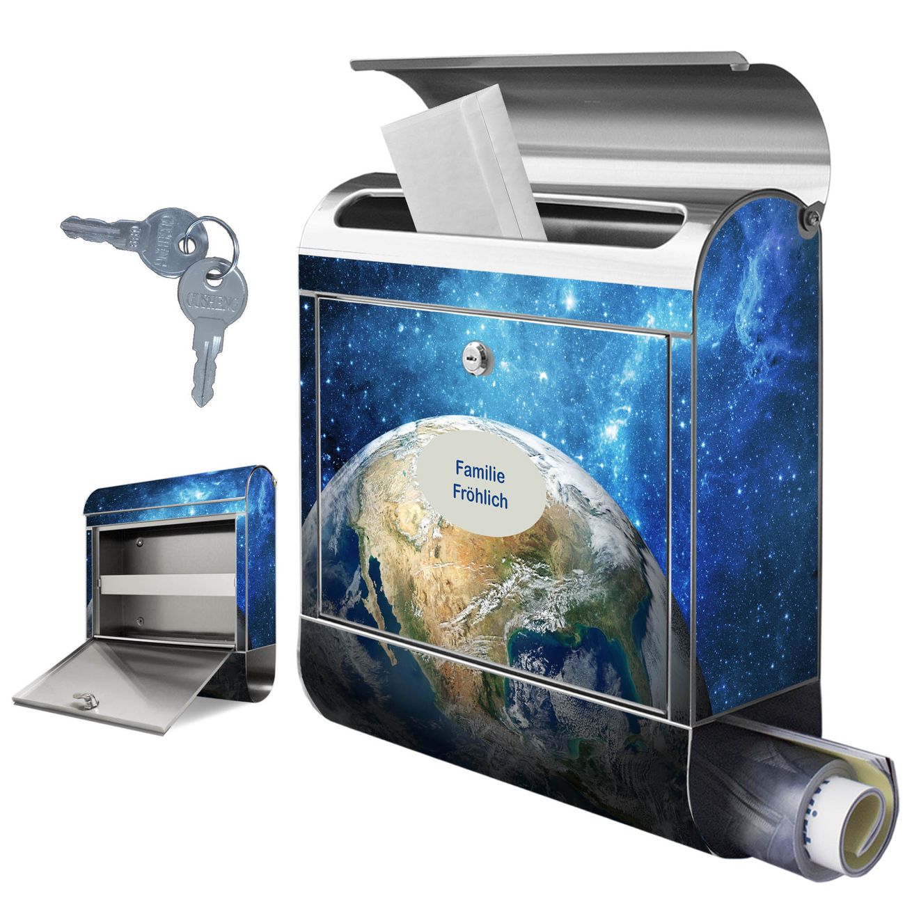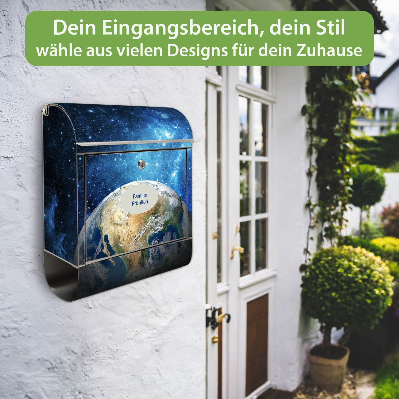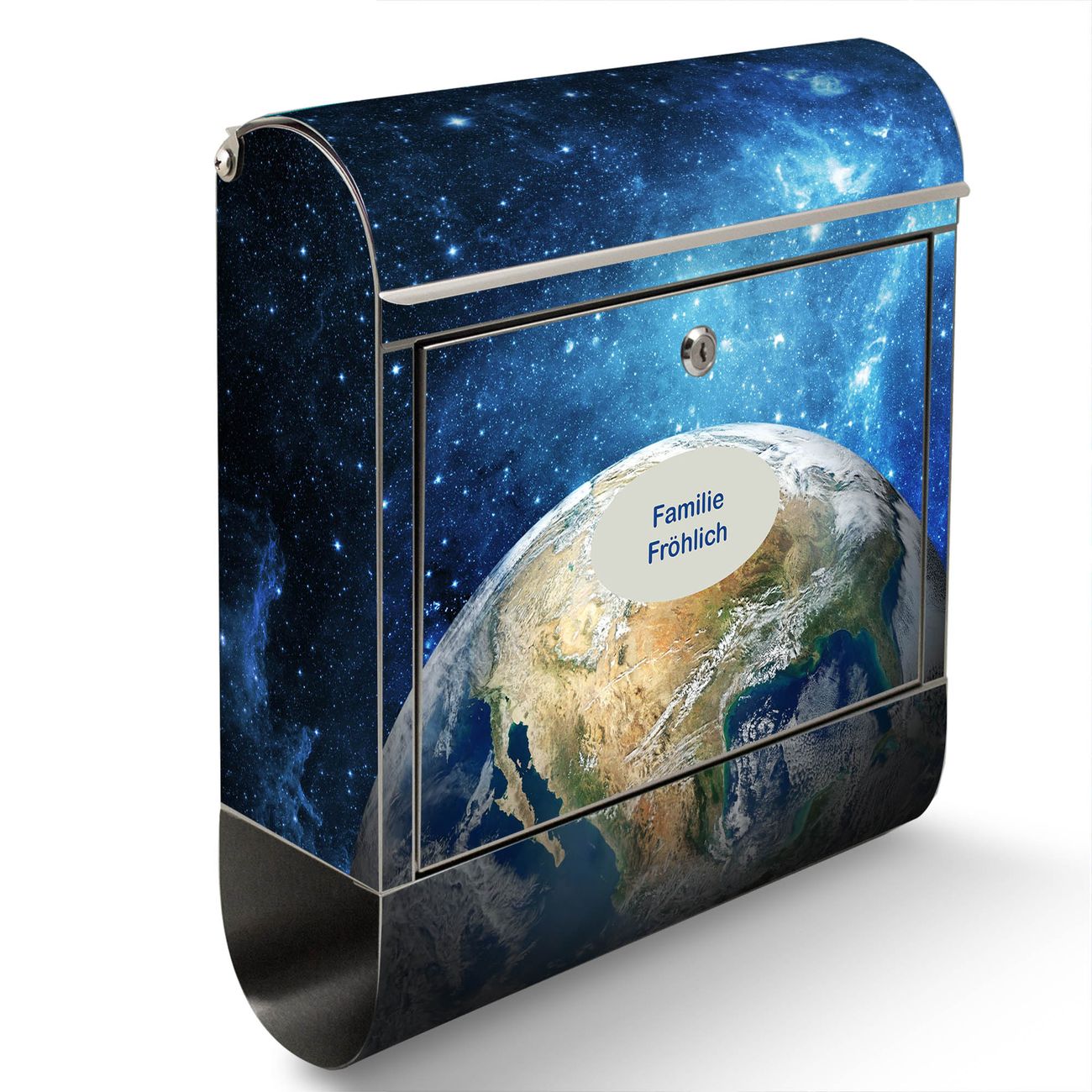 Wandbriefkasten Edelstahl Motiv Erdkugel