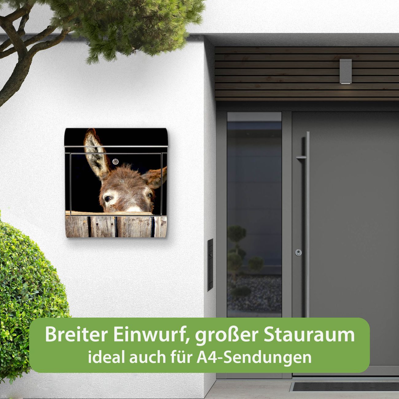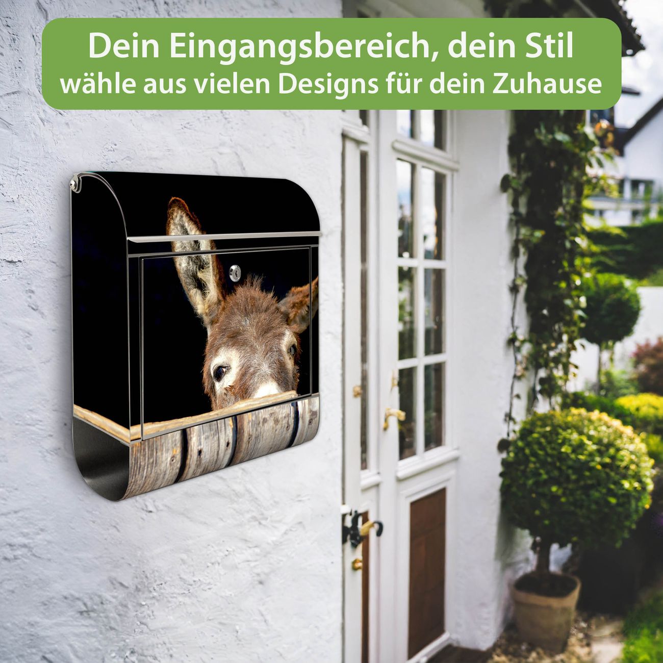 Wandbriefkasten Edelstahl Motiv Esel