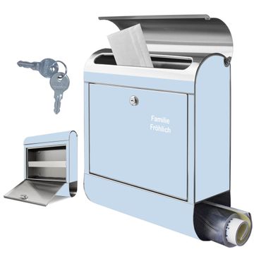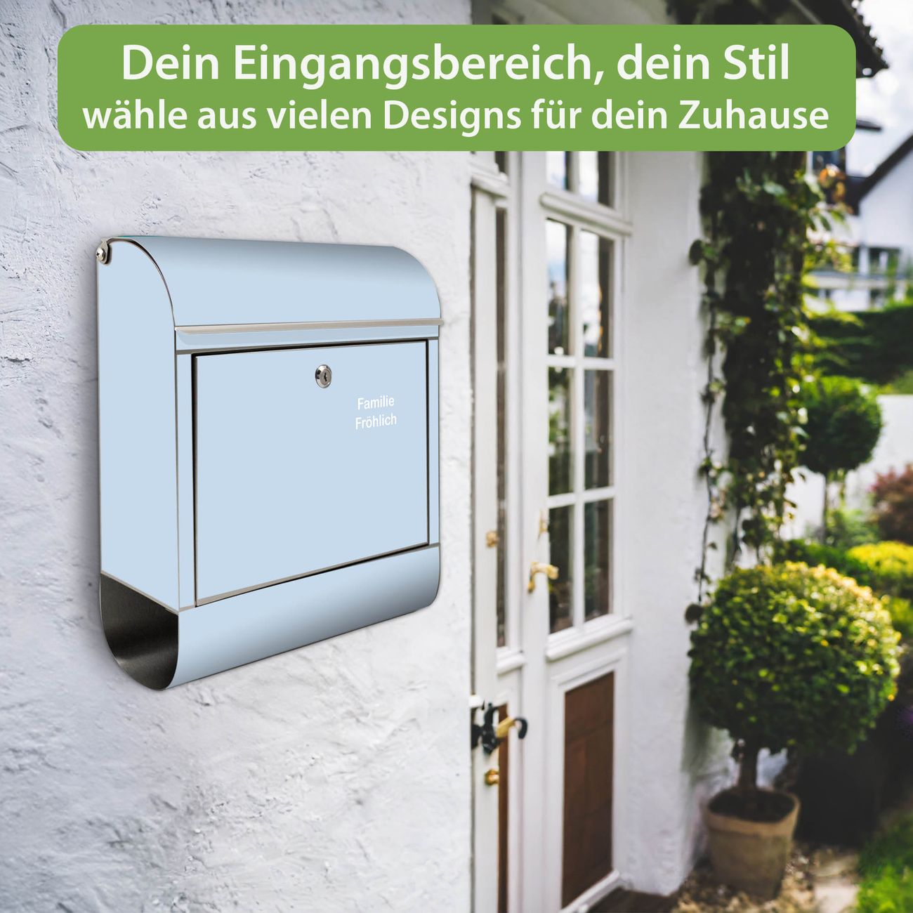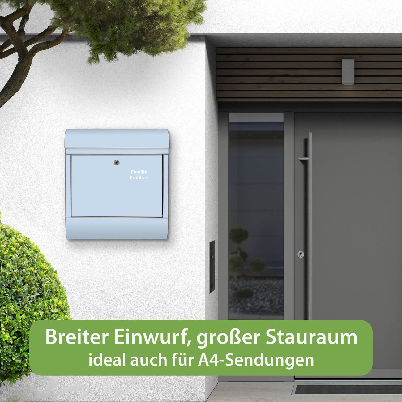 Wandbriefkasten Edelstahl Farbe Himmelblau