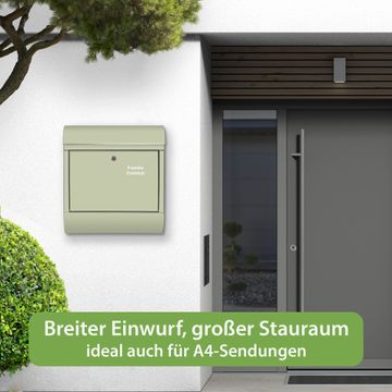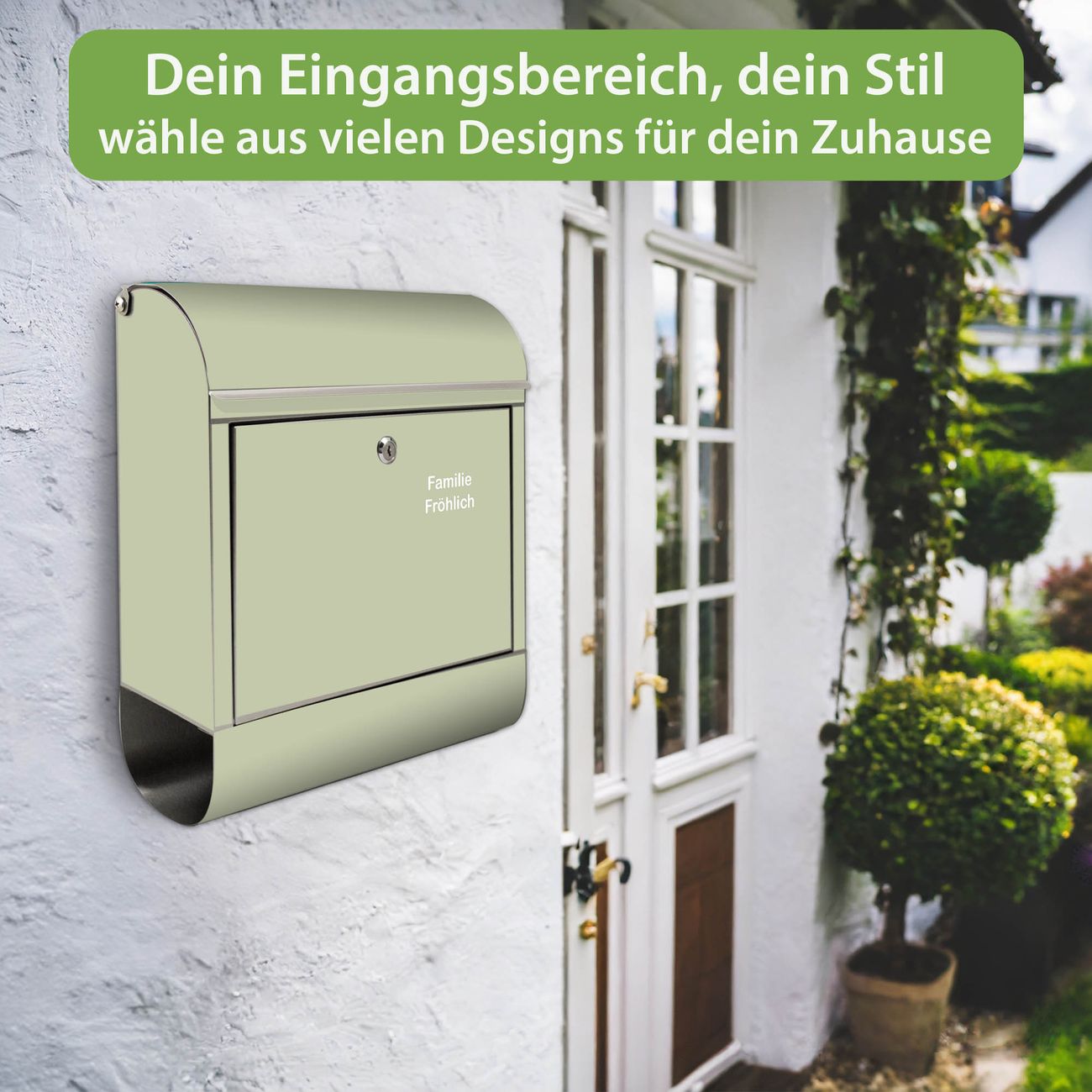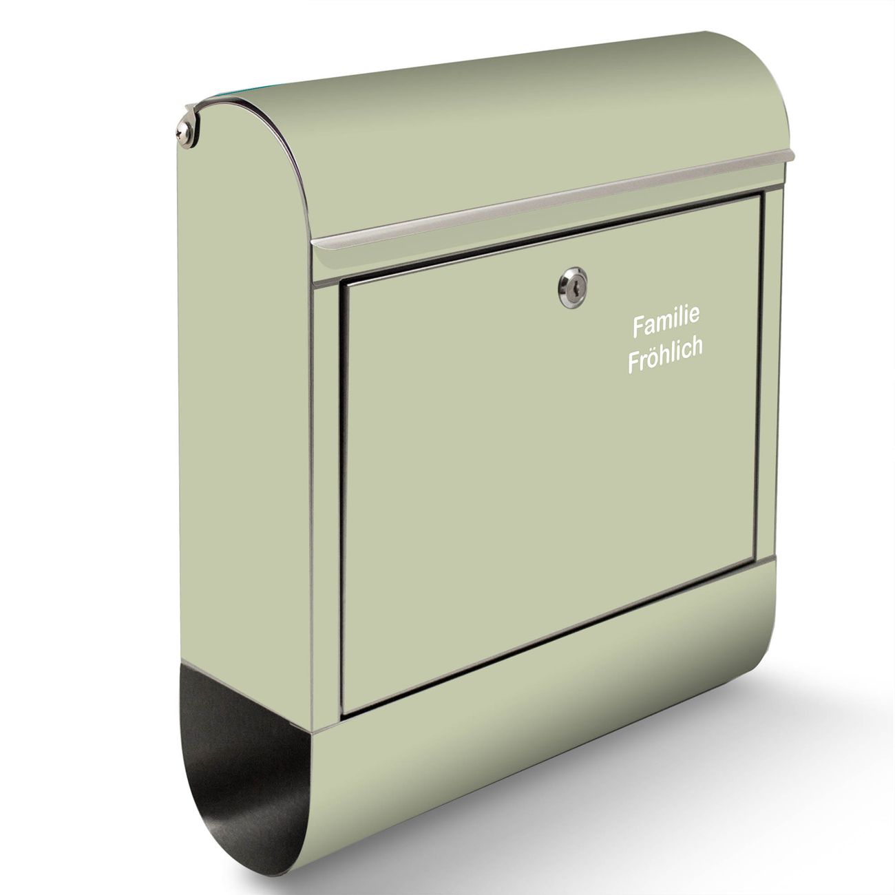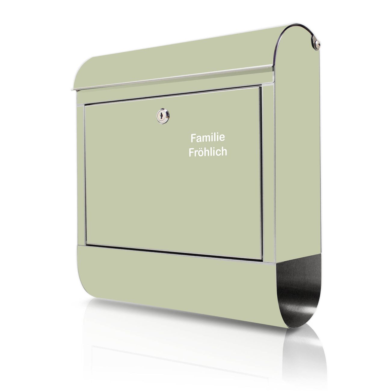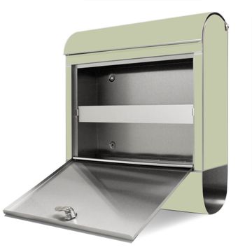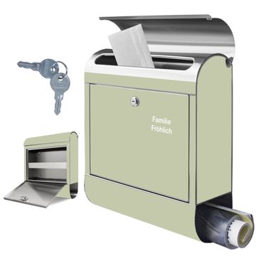 FUNKTION: Der banjado Edelstahl Briefkasten mit Motiv Farbe Olive bietet Ihnen mit seinem Fassungsvermögen genügend Platz auch für große A4 Sendungen. Das integrierte Zeitungsfach eignet sich hervorragend um unkompliziert die Tageszeitung zu fassen. Auf Wunsch können Sie bei uns den passenden Ständer kaufen und so aus dem Wandbriefkasten einen Standbriefkasten machen. DESIGN: Der Motivbriefkasten hat ein sehr ansprechendes und ausgefallenes Design, damit entlocken Sie Ihren Nachbarn und dem Postboten ein Lächeln. Heben Sie Sich ab von der tristen grauen Masse ohne auf Funktionalität zu verzichten. DETAILS: Der Design Briefkasten mit Motiv Farbe Olive besteht aus hochwertigem 18/0 Edelstahl. Das Motiv besteht aus einer wetter- und UV-resistenten Folie, die mit einem Schutzlaminat überzogen ist. Der Briefkasten wird mit Montagematerial und zwei Schlüsseln geliefert. NUTZEN: Sie können diesen Briefkasten sowohl als Wandbriefkasten montieren oder einen passenden Ständer auswählen und als Standbriefkasten einbetonieren. Die Größe bietet genügend Platz für Sendungen aller Art, das hochwertige Edelstahl ist rostfrei und die Motivfolie absolut wetterfest. SCHUTZ: Um Ihre Post optimal vor Witterungseinflüssen wie Starkregen zu schützen, empfehlen wir, den Briefkasten geschützt anzubringen. BANJADO: Ihr Briefkasten wird in Sachsen in einer kleinen Manufaktur von Hand veredelt. Die Motivfolie ist lösungsmittelfrei und schutzlaminiert, dies sorgt für einen langen Halt. Wir legen großen Wert auf die Verbindung von Funktionalität und Design. Sie erhalten Handarbeit aus Sachsen.