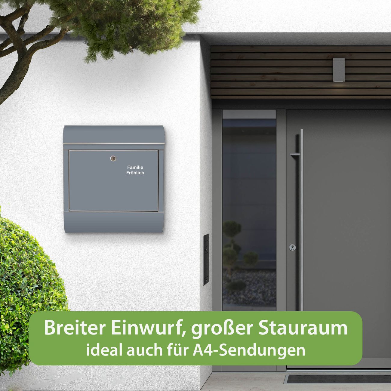 Wandbriefkasten Edelstahl Farbe Schiefergrau