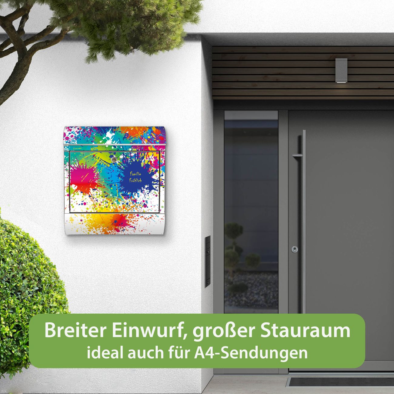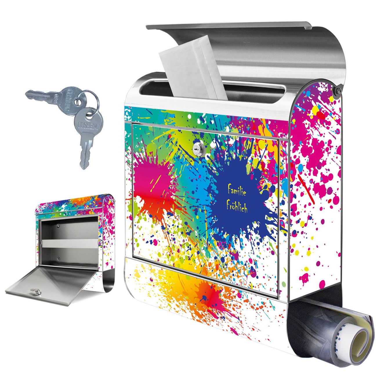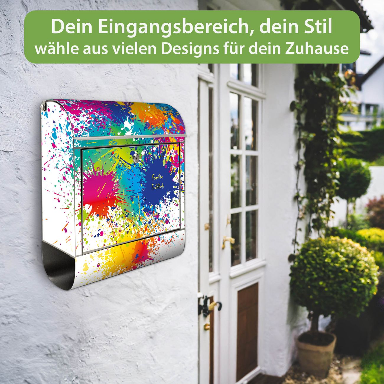 Wandbriefkasten Edelstahl Motiv Farbspritzer