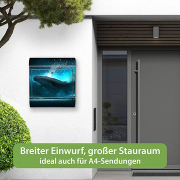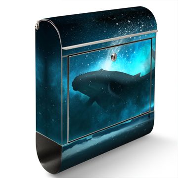 Wandbriefkasten Edelstahl Motiv fliegender Wal