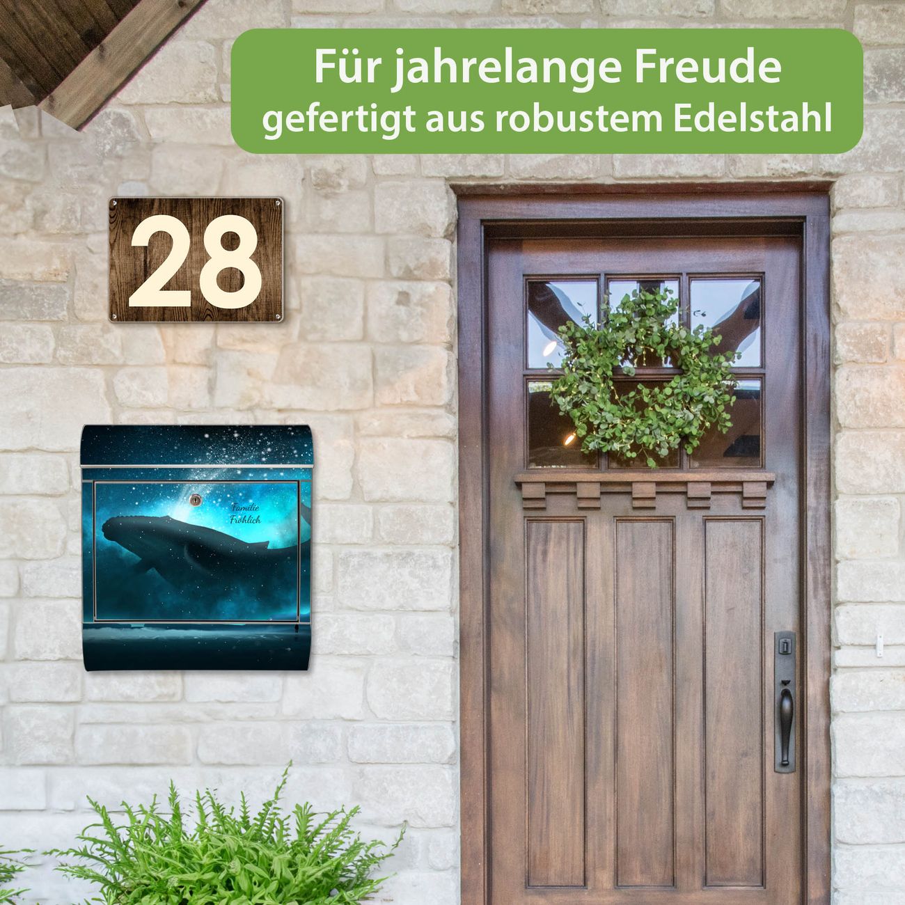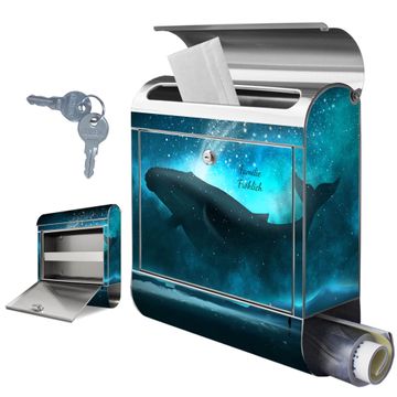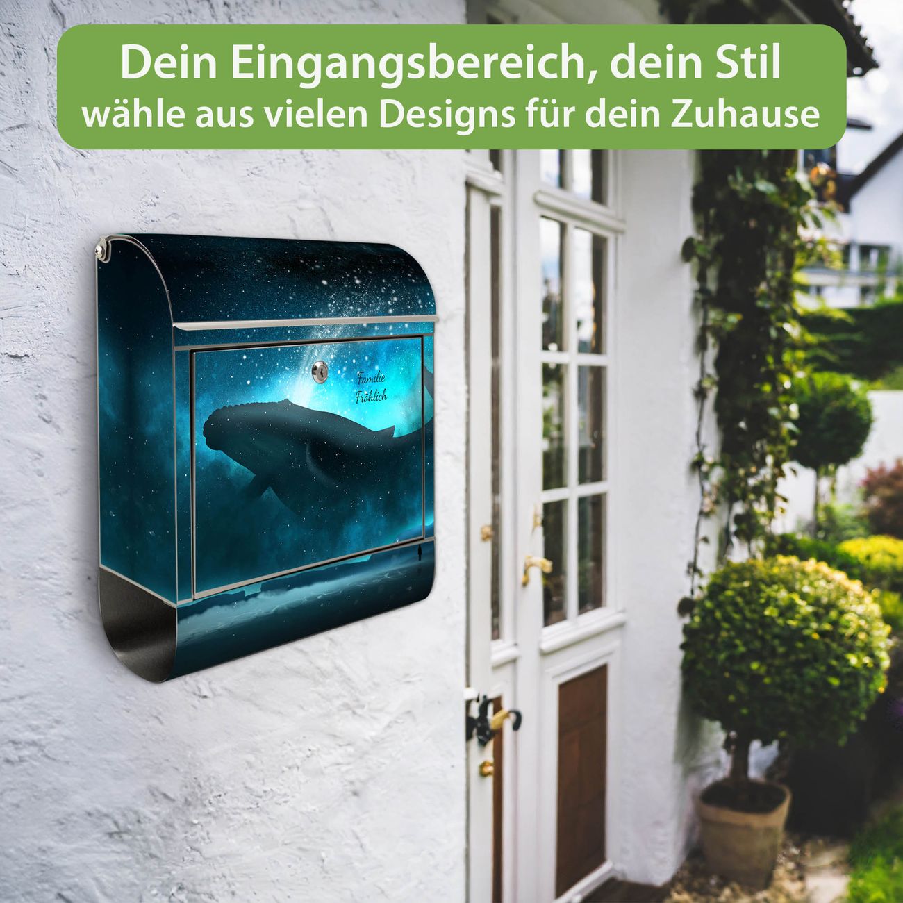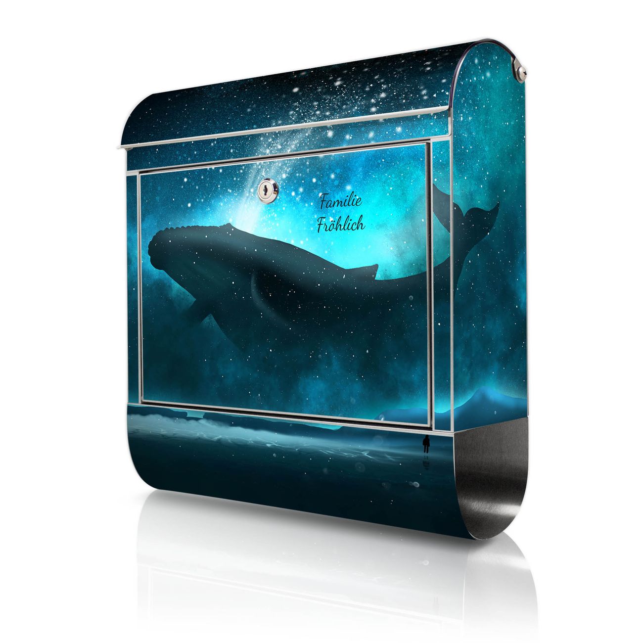 Wandbriefkasten Edelstahl Motiv fliegender Wal