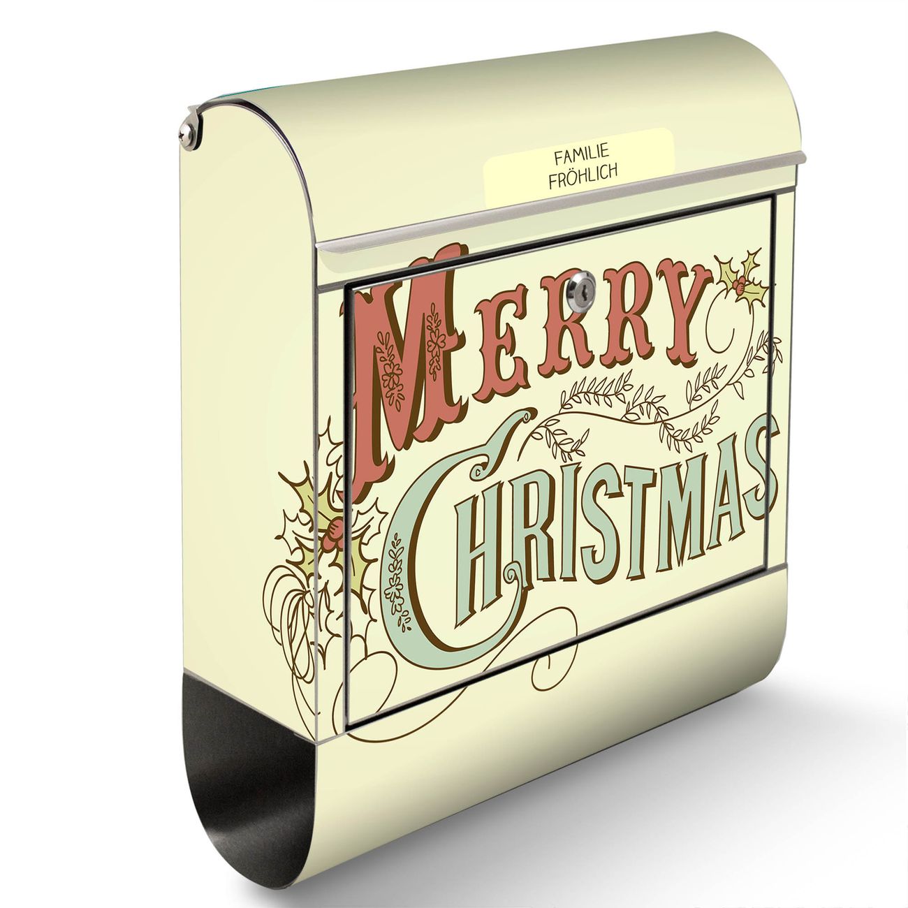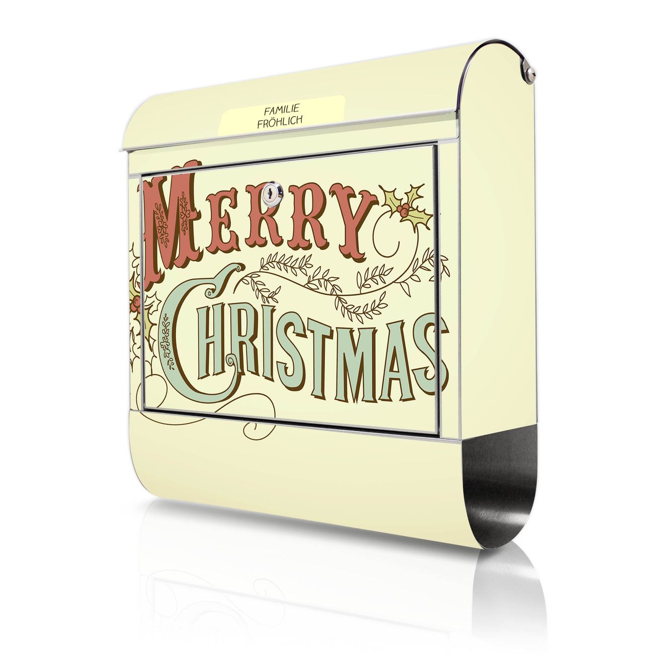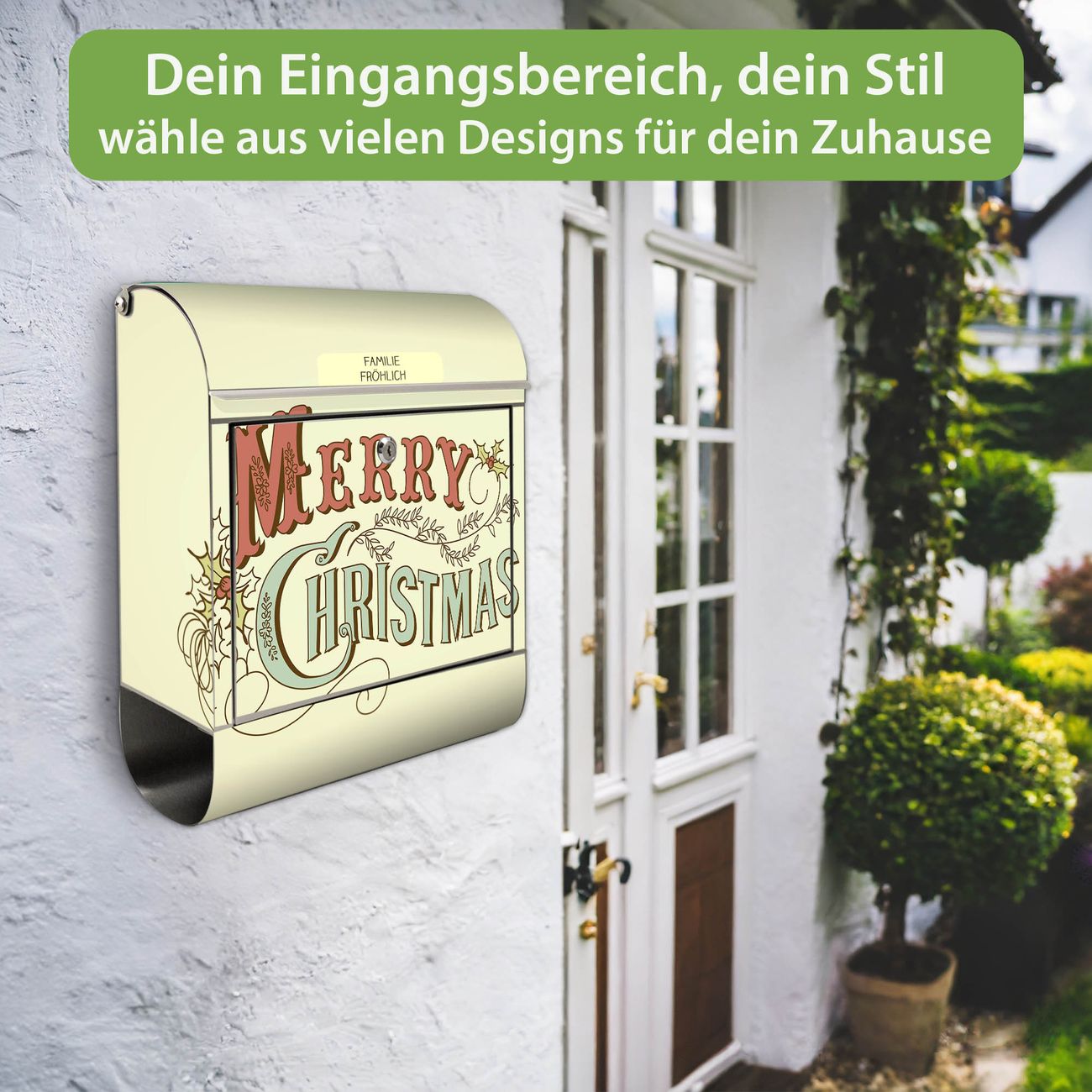 Wandbriefkasten Edelstahl Motiv Frohes Fest