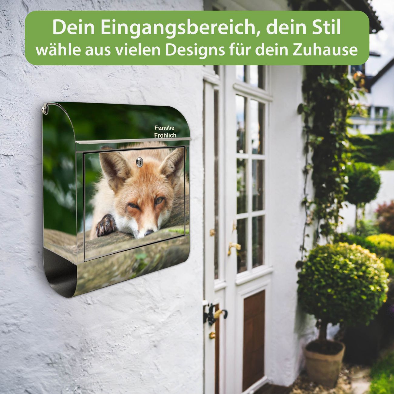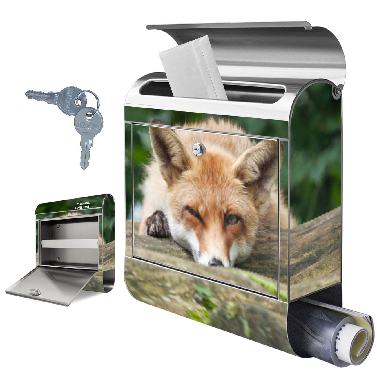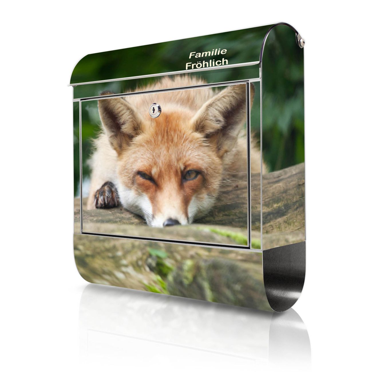 Wandbriefkasten Edelstahl Motiv Fuchs Relax