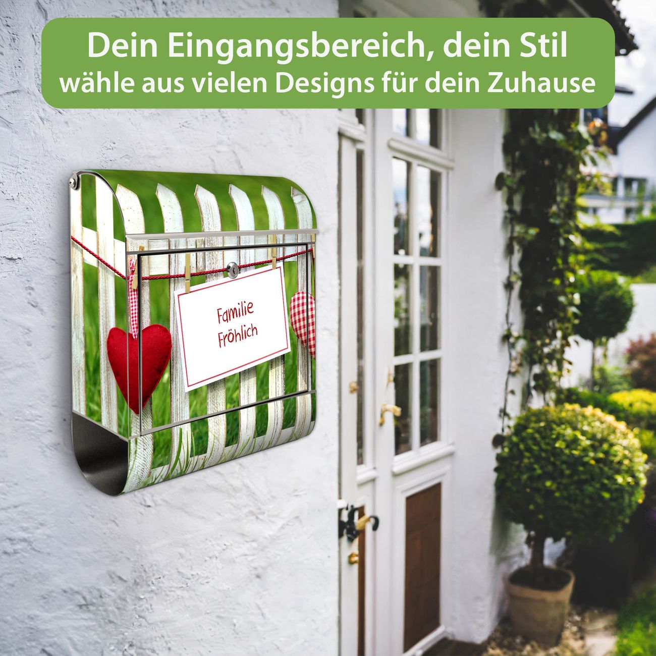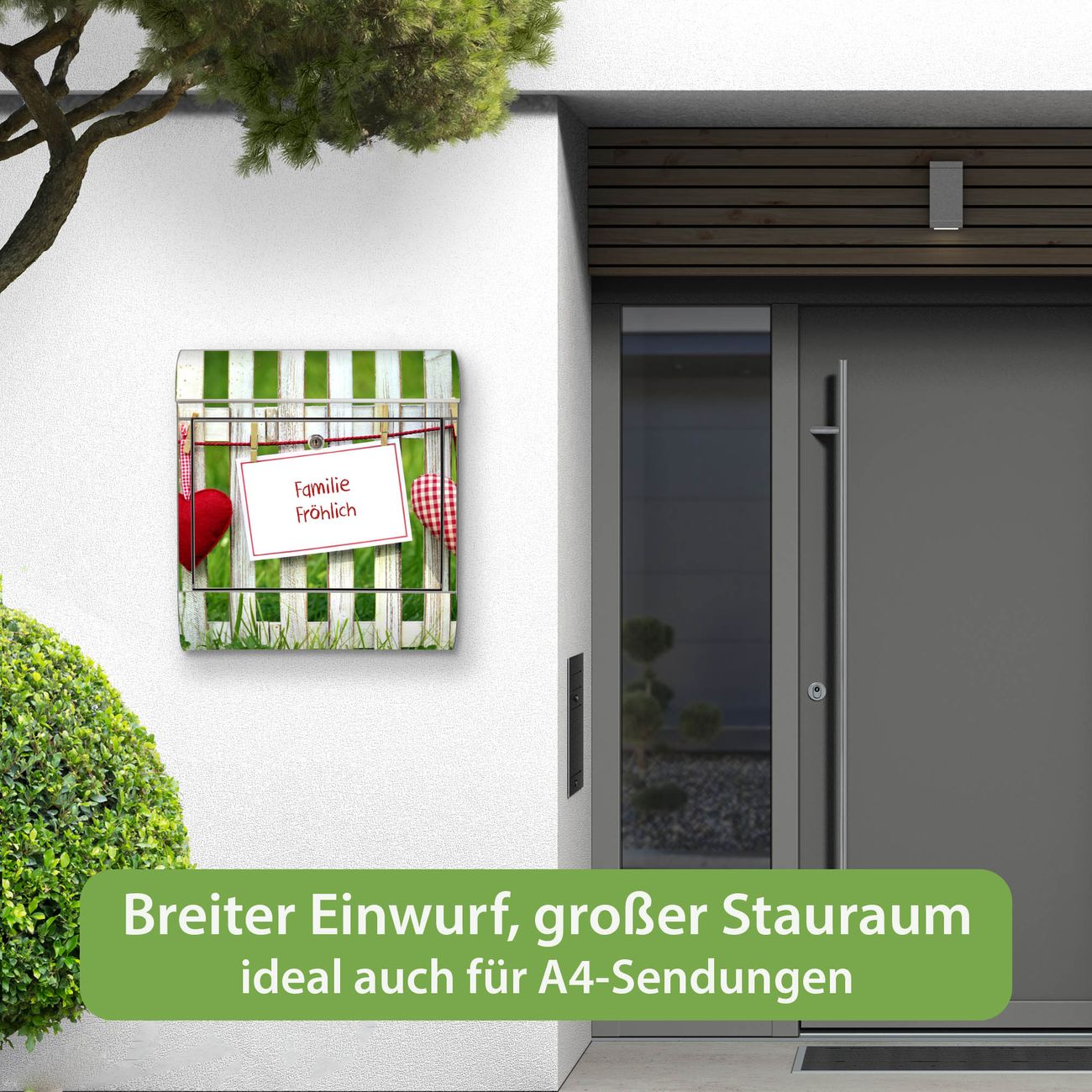 Wandbriefkasten Edelstahl Motiv Gartenzaun