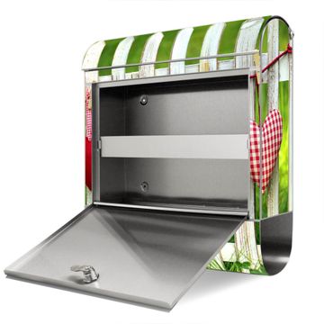 FUNKTION: Der banjado Edelstahl Briefkasten mit Motiv Motiv Gartenzaun bietet Ihnen mit seinem Fassungsvermögen genügend Platz auch für große A4 Sendungen. Das integrierte Zeitungsfach eignet sich hervorragend um unkompliziert die Tageszeitung zu fassen. Auf Wunsch können Sie bei uns den passenden Ständer kaufen und so aus dem Wandbriefkasten einen Standbriefkasten machen. DESIGN: Der Motivbriefkasten hat ein sehr ansprechendes und ausgefallenes Design, damit entlocken Sie Ihren Nachbarn und dem Postboten ein Lächeln. Heben Sie Sich ab von der tristen grauen Masse ohne auf Funktionalität zu verzichten. DETAILS: Der Design Briefkasten mit Motiv Motiv Gartenzaun besteht aus hochwertigem 18/0 Edelstahl. Das Motiv besteht aus einer wetter- und UV-resistenten Folie, die mit einem Schutzlaminat überzogen ist. Der Briefkasten wird mit Montagematerial und zwei Schlüsseln geliefert. NUTZEN: Sie können diesen Briefkasten sowohl als Wandbriefkasten montieren oder einen passenden Ständer auswählen und als Standbriefkasten einbetonieren. Die Größe bietet genügend Platz für Sendungen aller Art, das hochwertige Edelstahl ist rostfrei und die Motivfolie absolut wetterfest. SCHUTZ: Um Ihre Post optimal vor Witterungseinflüssen wie Starkregen zu schützen, empfehlen wir, den Briefkasten geschützt anzubringen. BANJADO: Ihr Briefkasten wird in Sachsen in einer kleinen Manufaktur von Hand veredelt. Die Motivfolie ist lösungsmittelfrei und schutzlaminiert, dies sorgt für einen langen Halt. Wir legen großen Wert auf die Verbindung von Funktionalität und Design. Sie erhalten Handarbeit aus Sachsen.