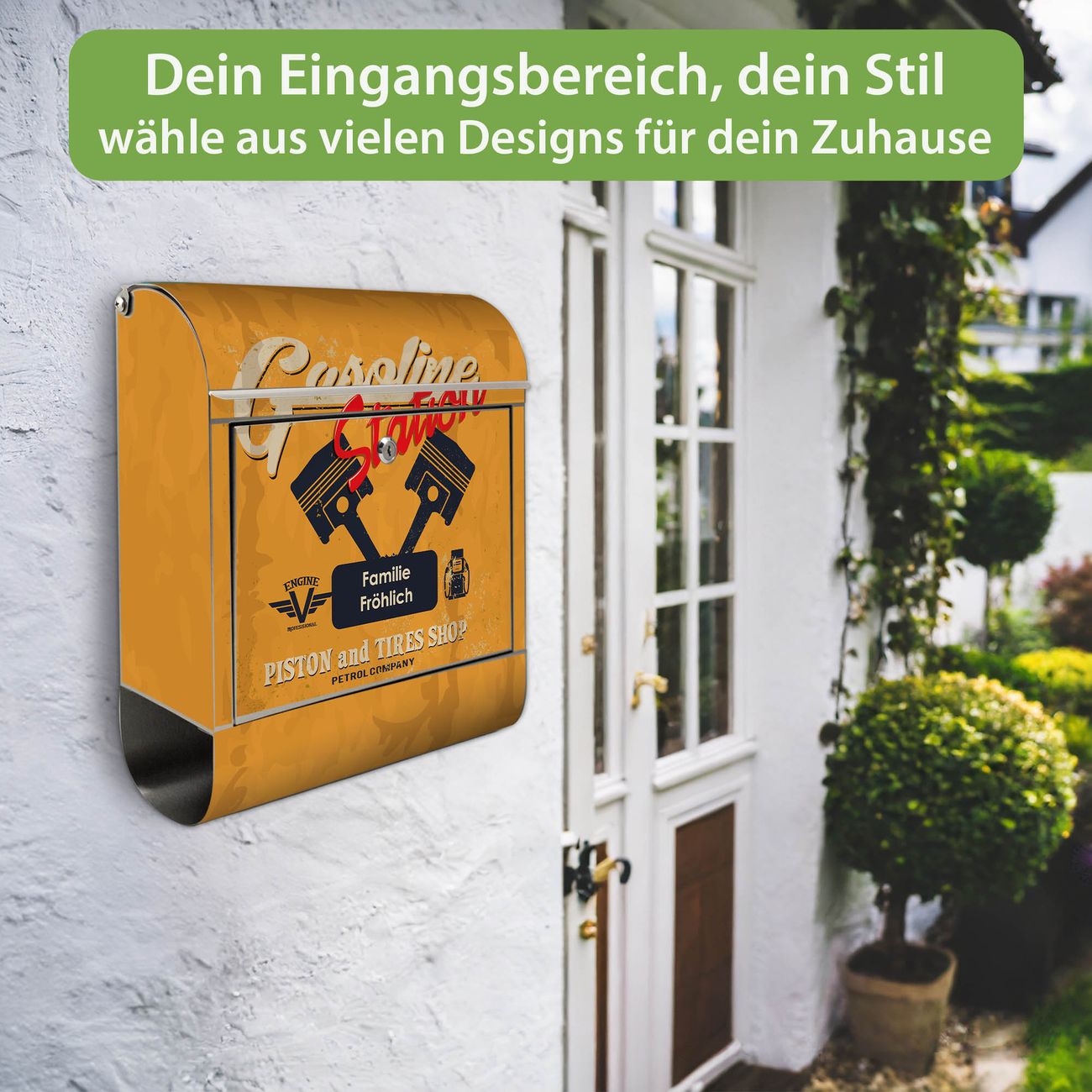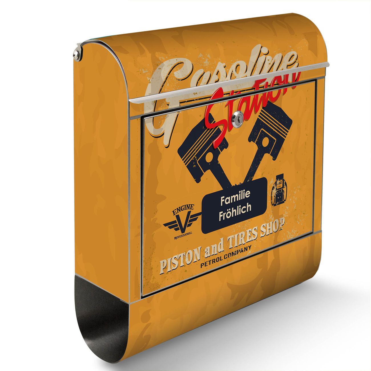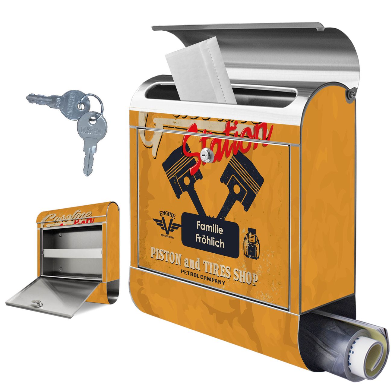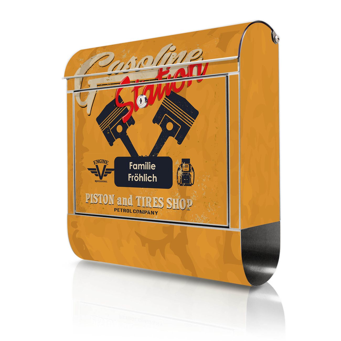 Wandbriefkasten Edelstahl Motiv Gasoline Station