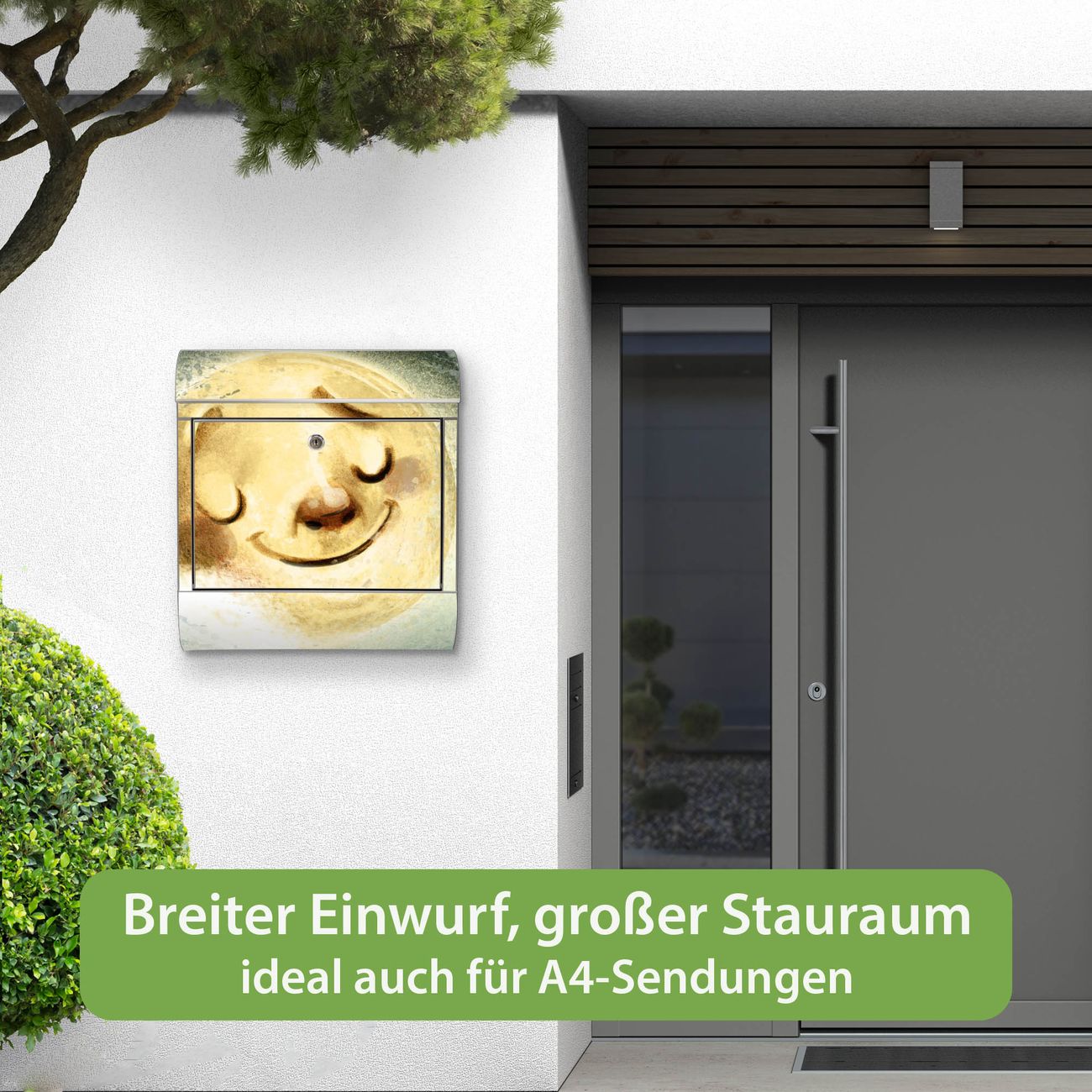 Wandbriefkasten Edelstahl Motiv Glücksmond