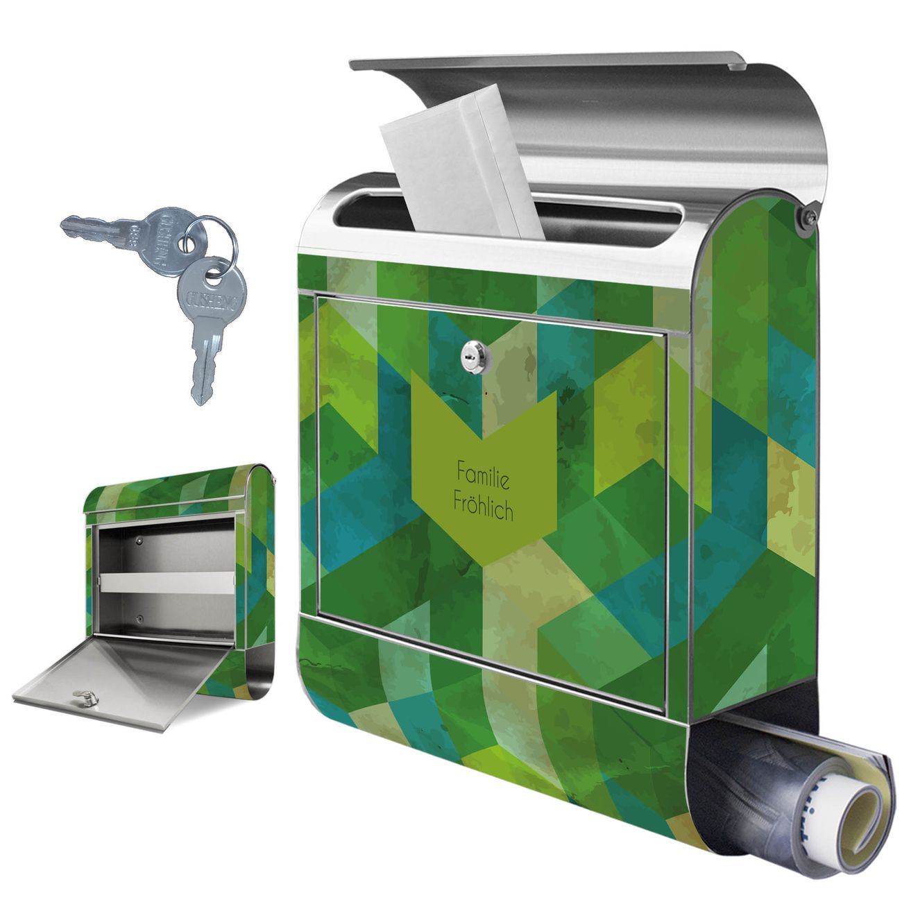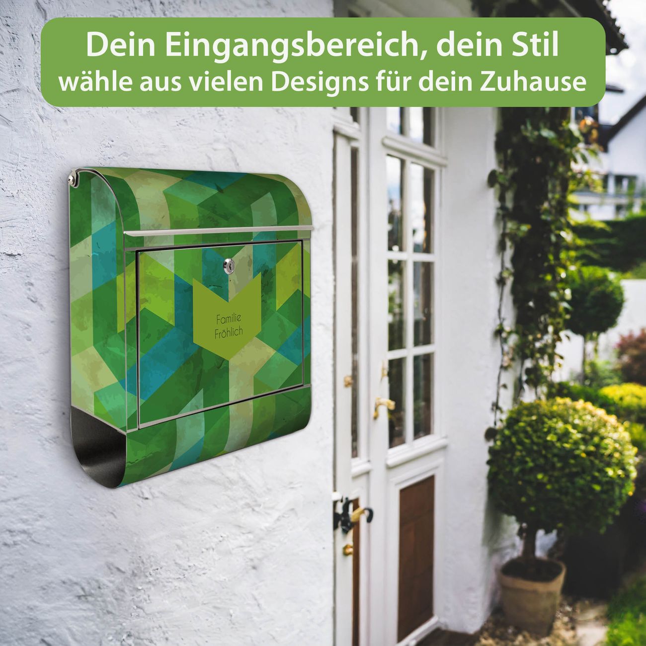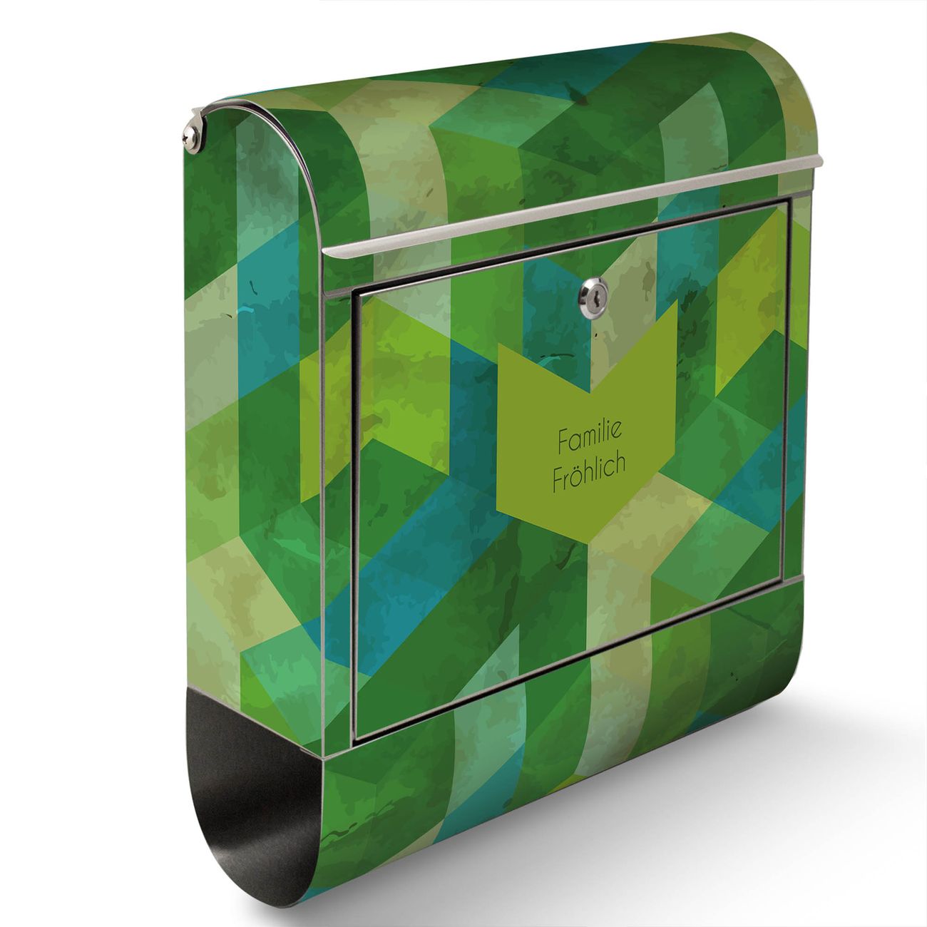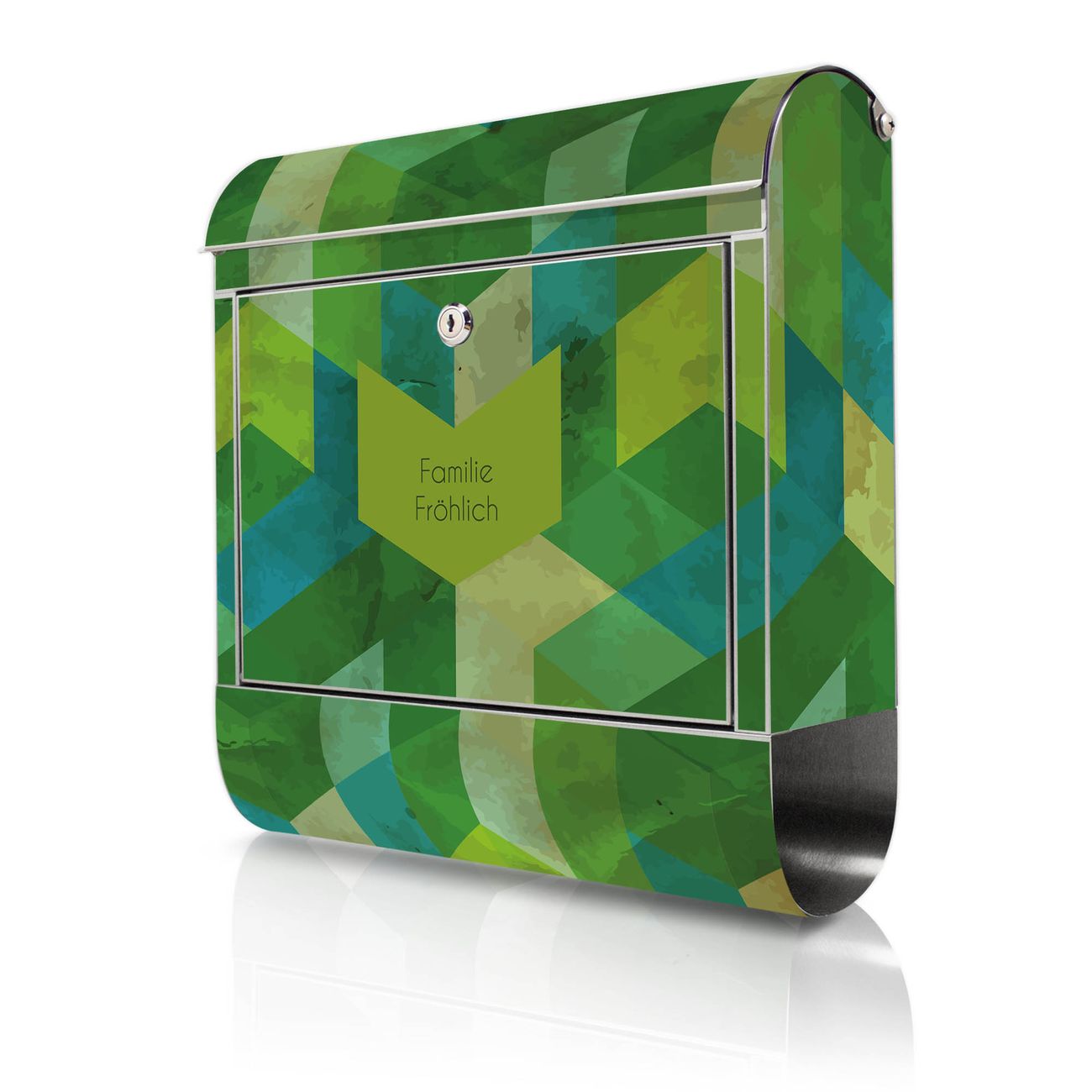 Wandbriefkasten Edelstahl Motiv Grüne Würfel