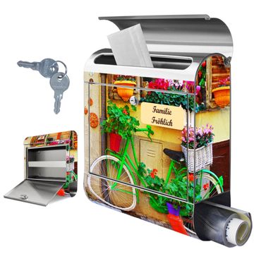 Wandbriefkasten Edelstahl Motiv Grünes Fahrrad