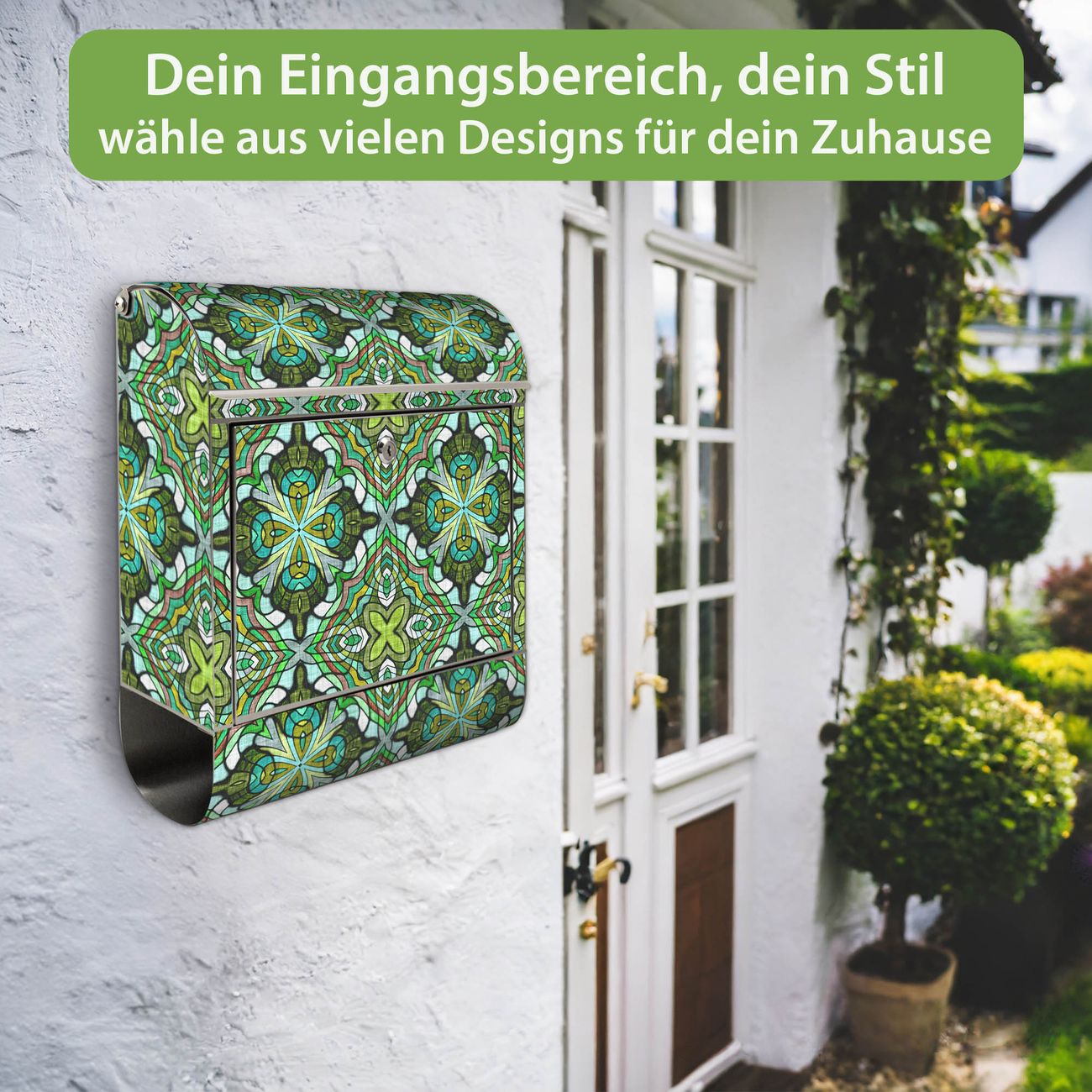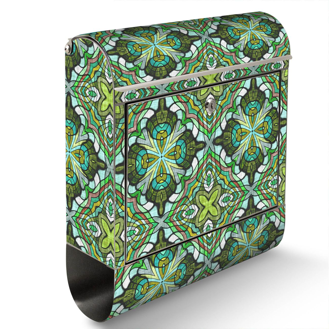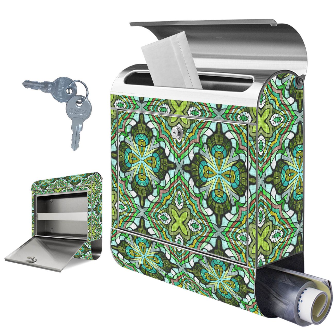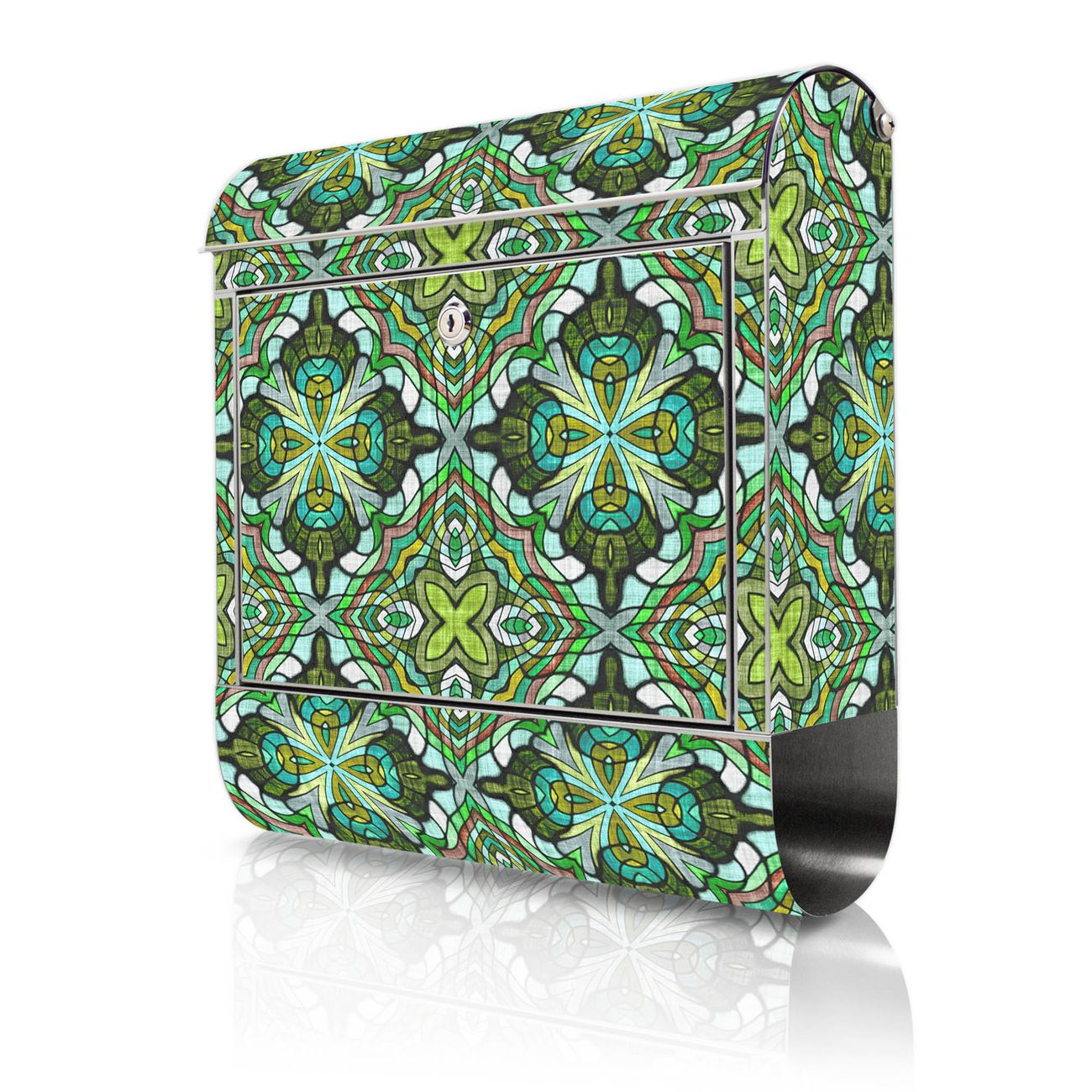 Wandbriefkasten Edelstahl Motiv Grünes Muster