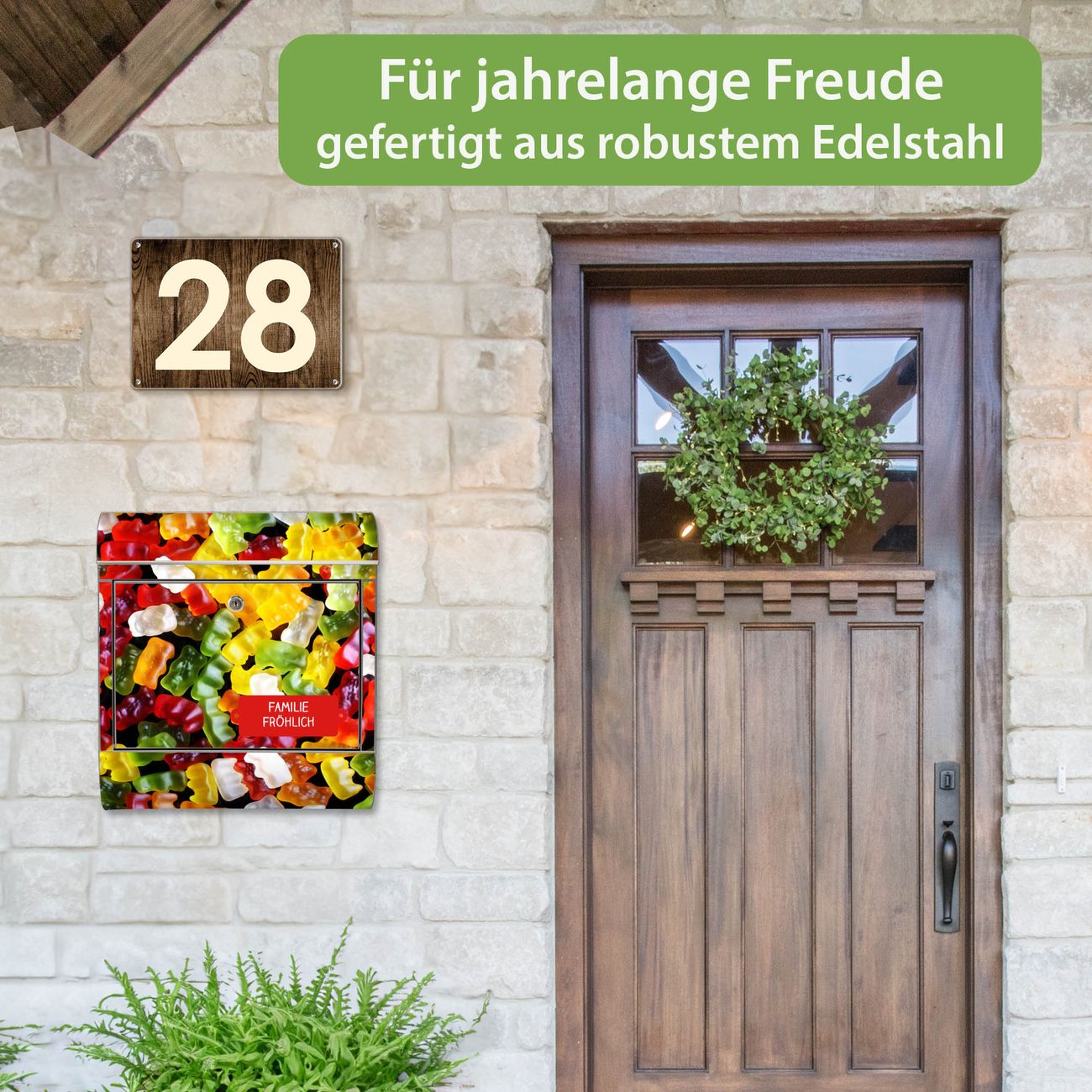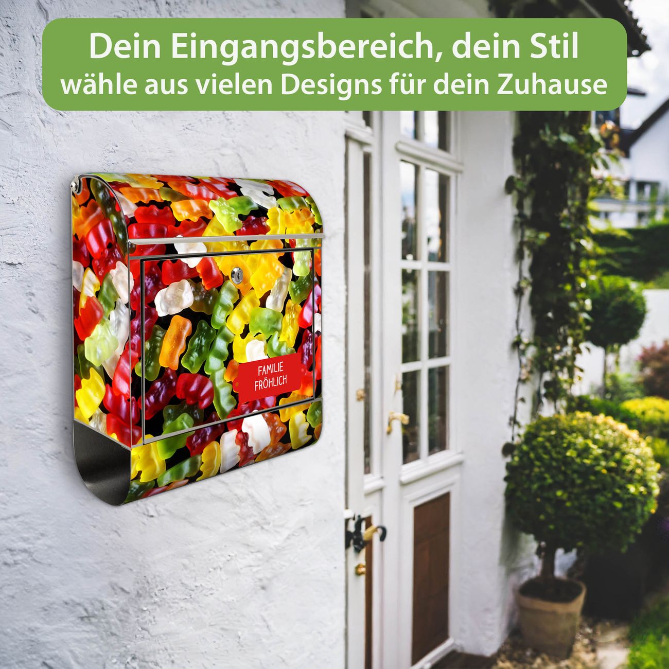 Wandbriefkasten Edelstahl Motiv Gummibaerchen