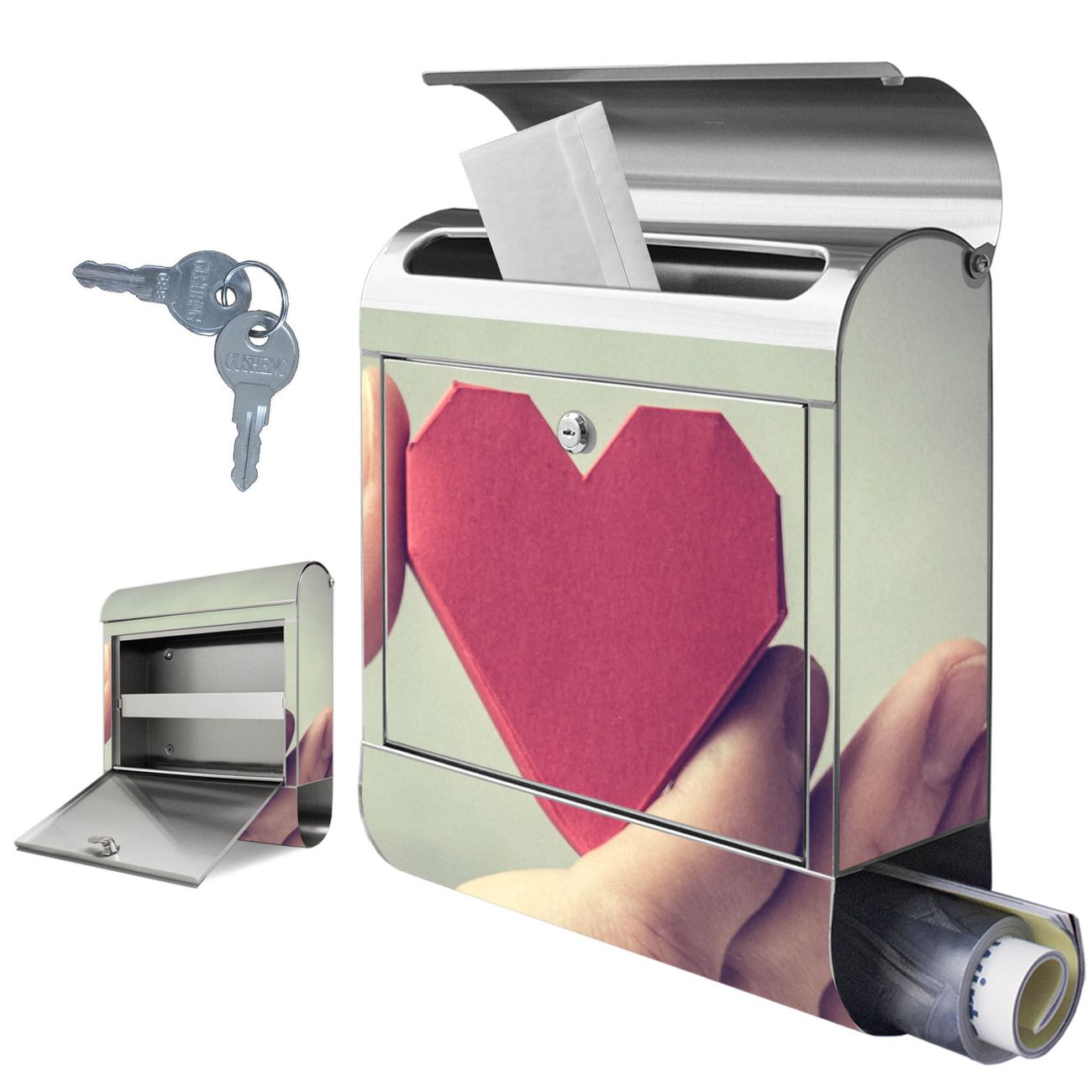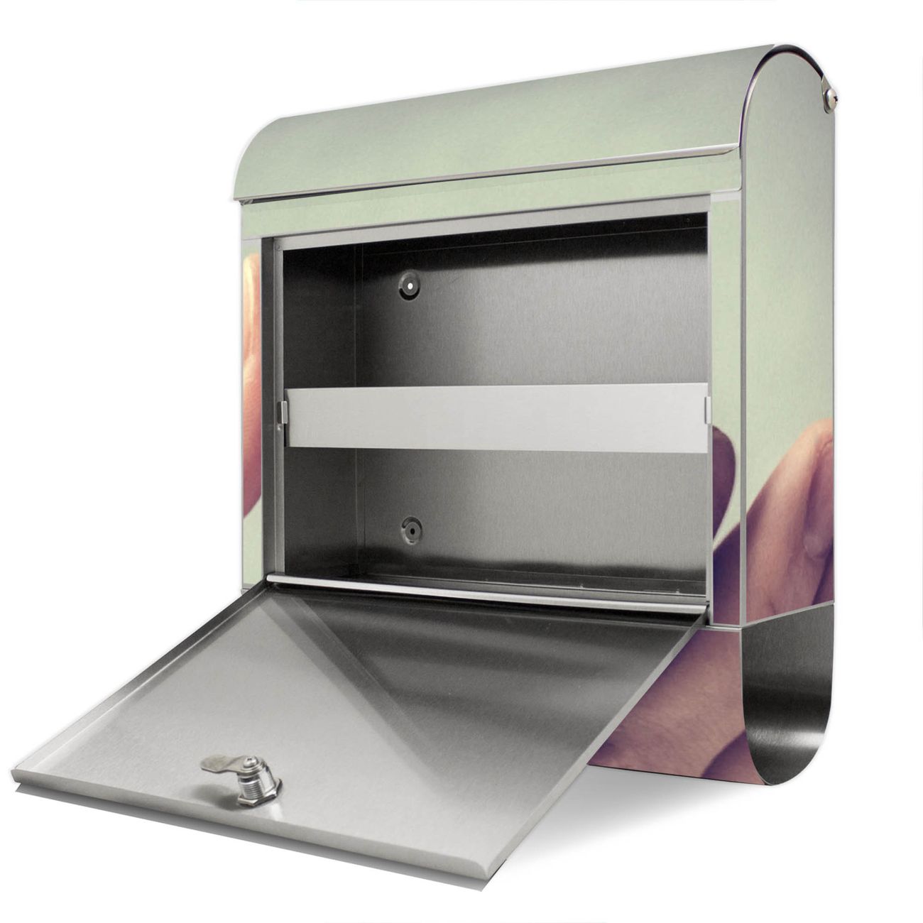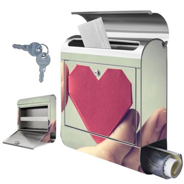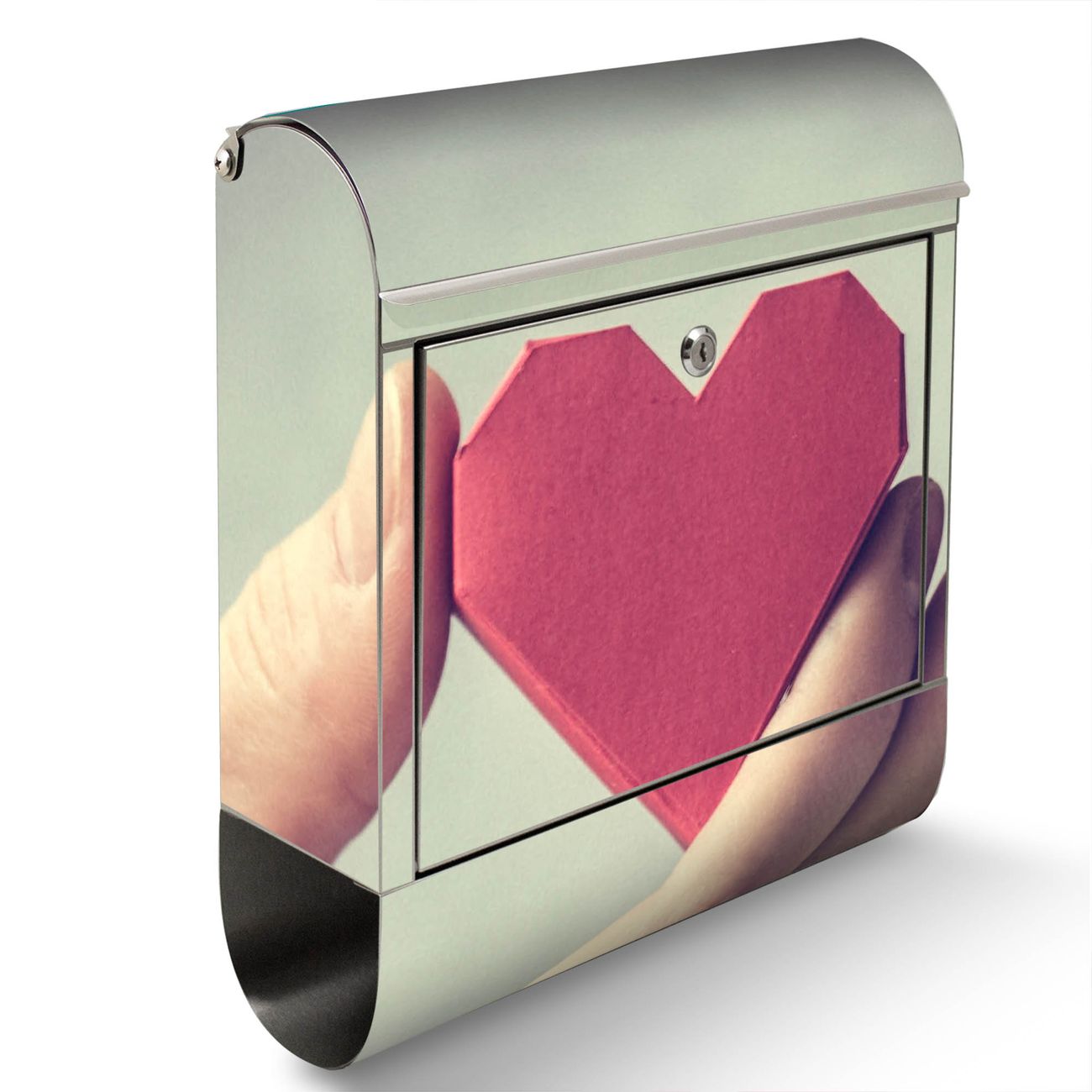 Wandbriefkasten Edelstahl Motiv Hand Aufs Herz