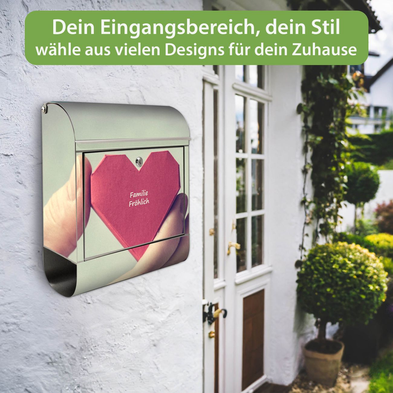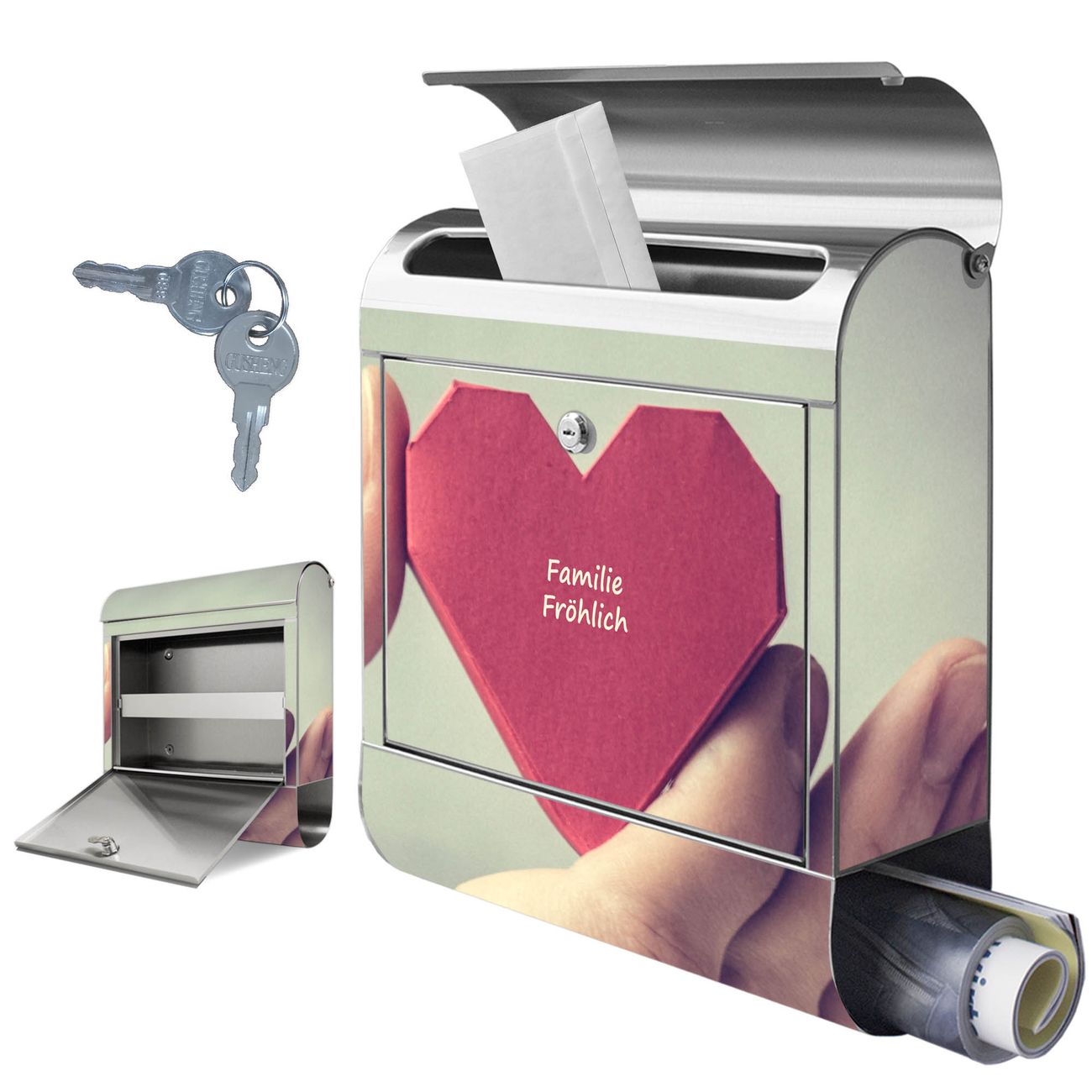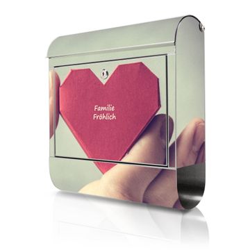 Wandbriefkasten Edelstahl Motiv Hand Aufs Herz