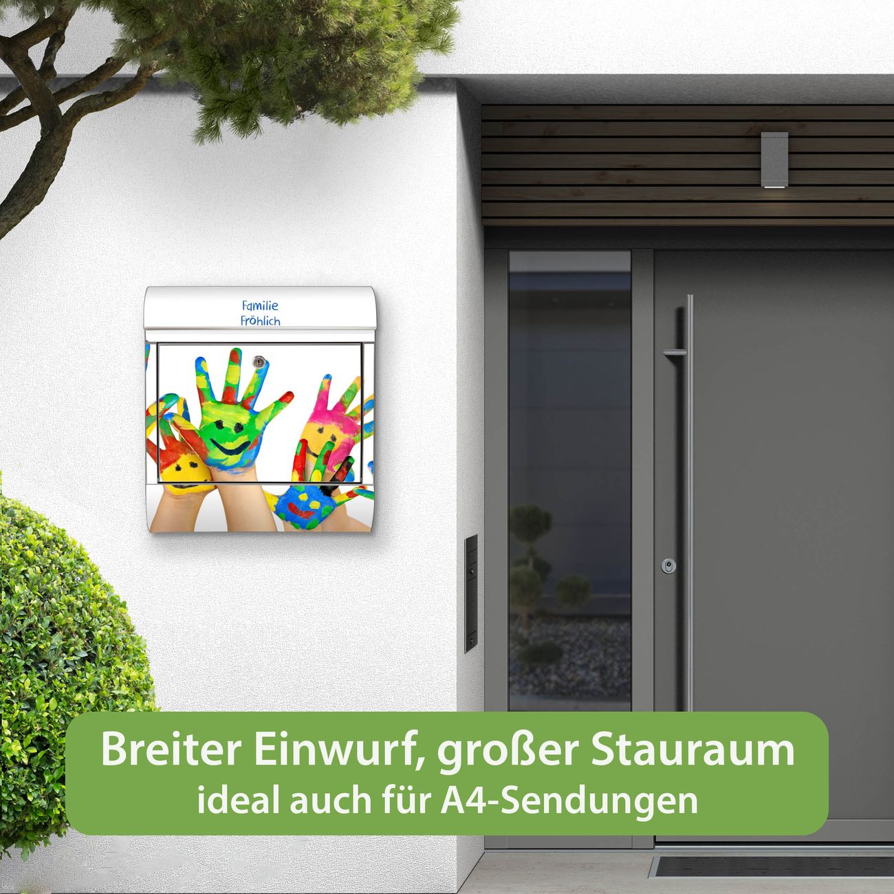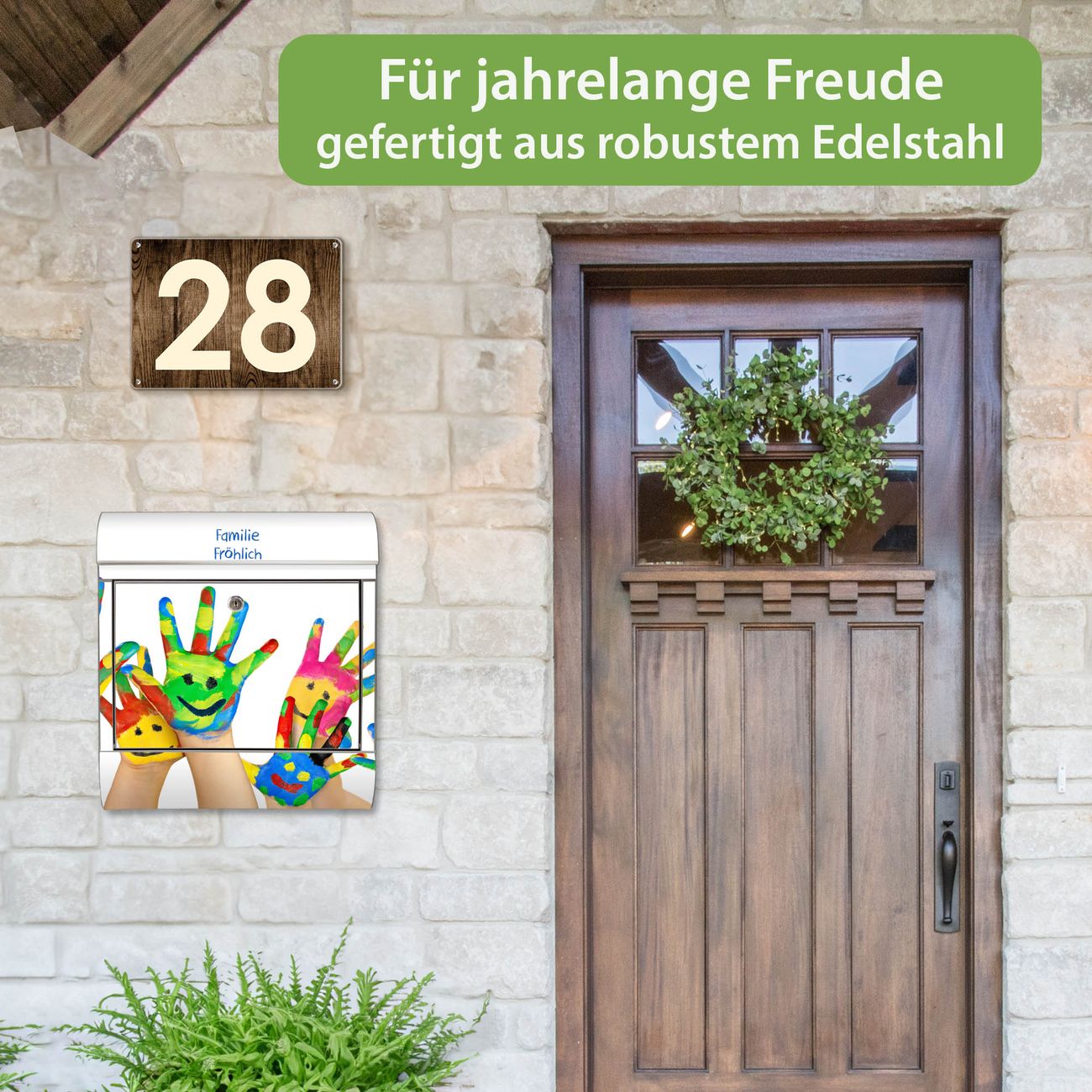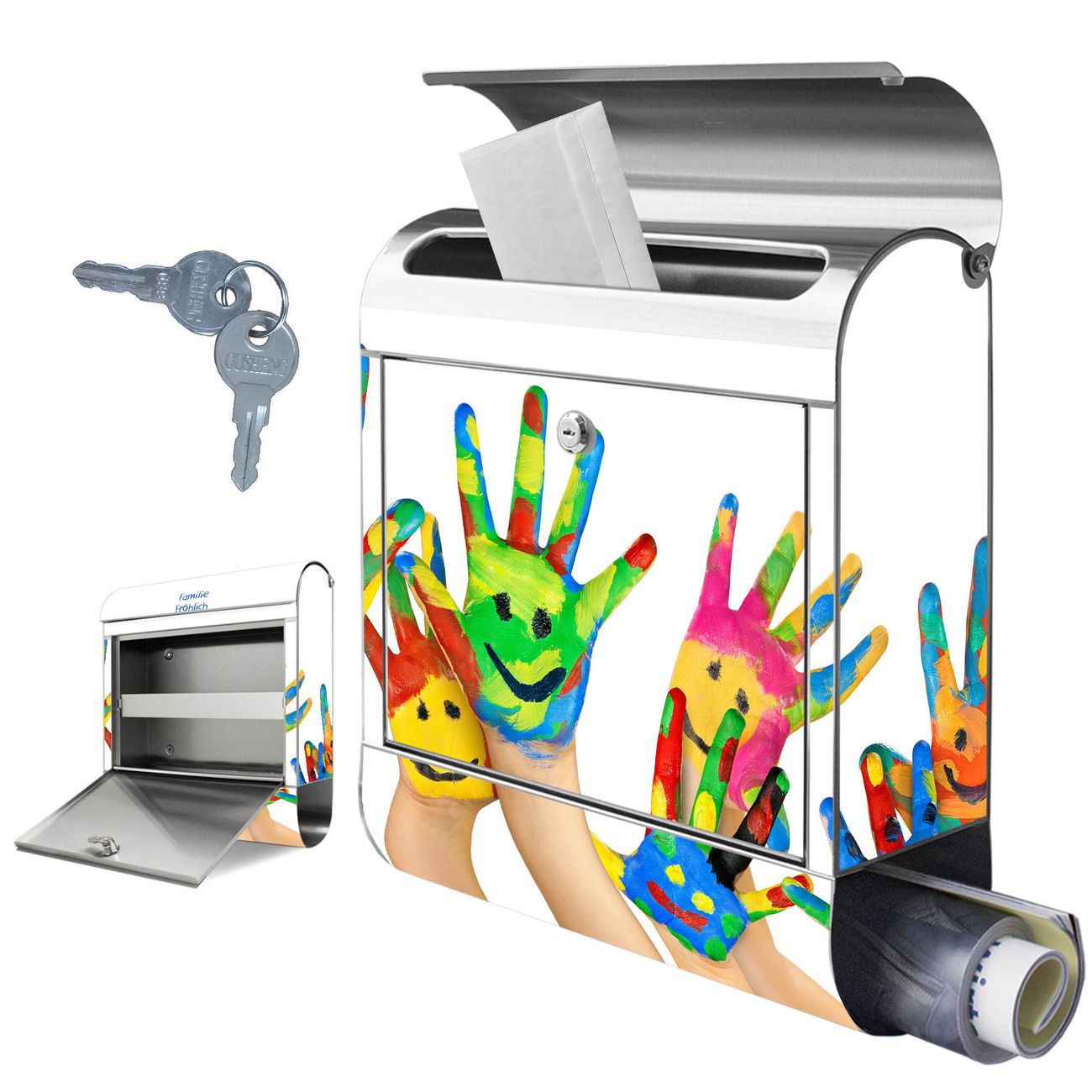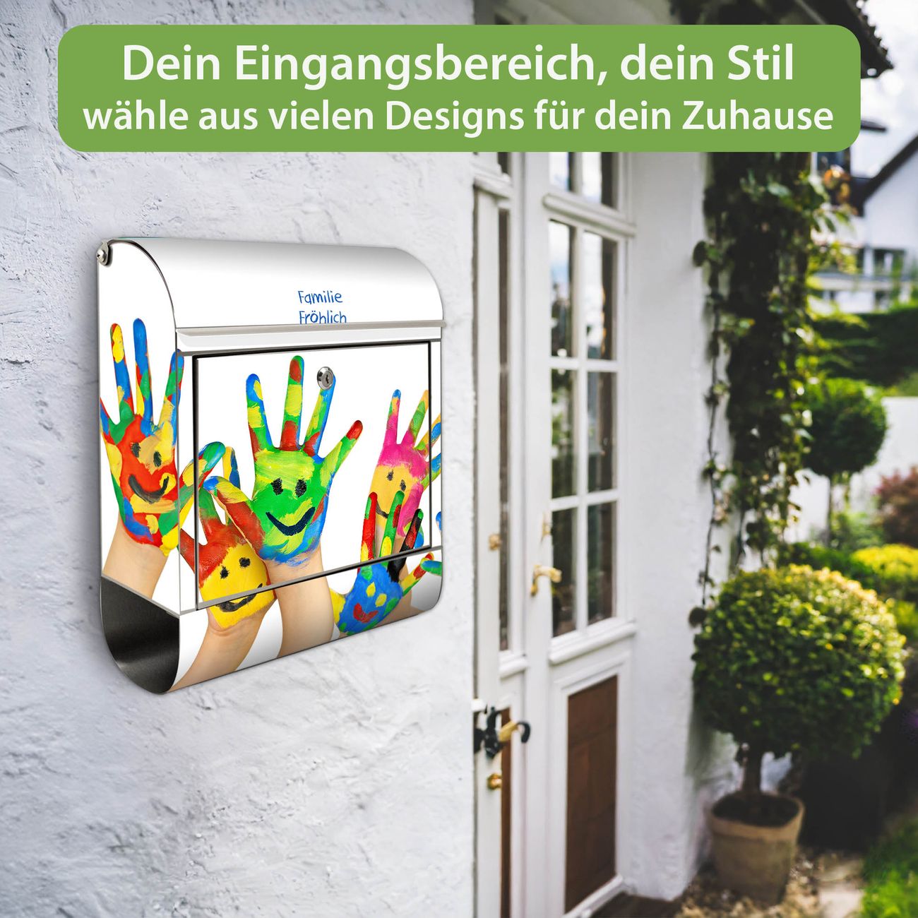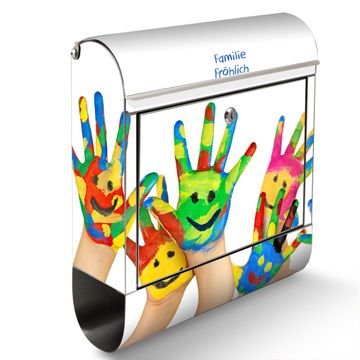 Wandbriefkasten Edelstahl Motiv Happy Hands