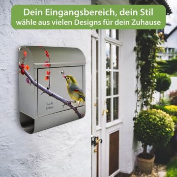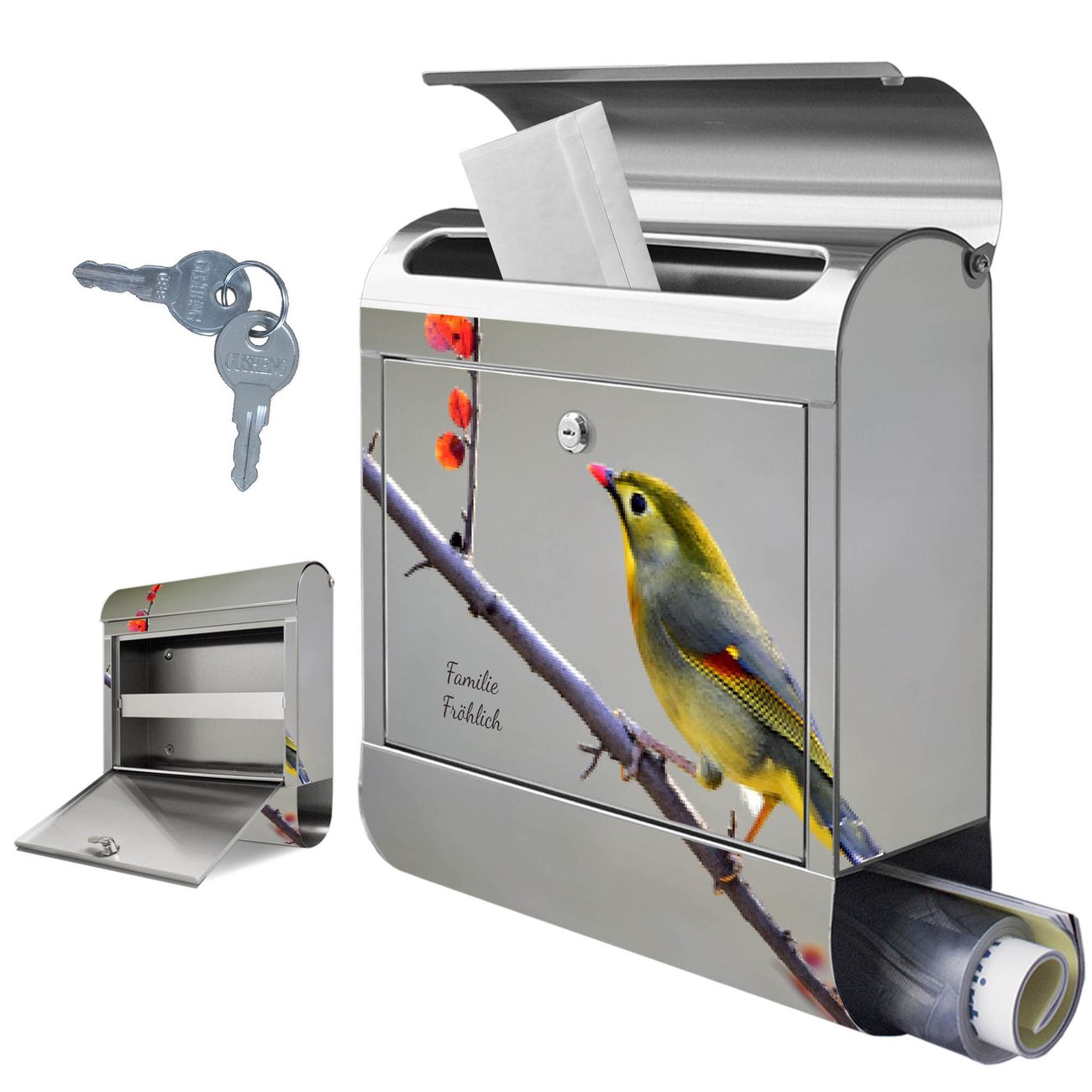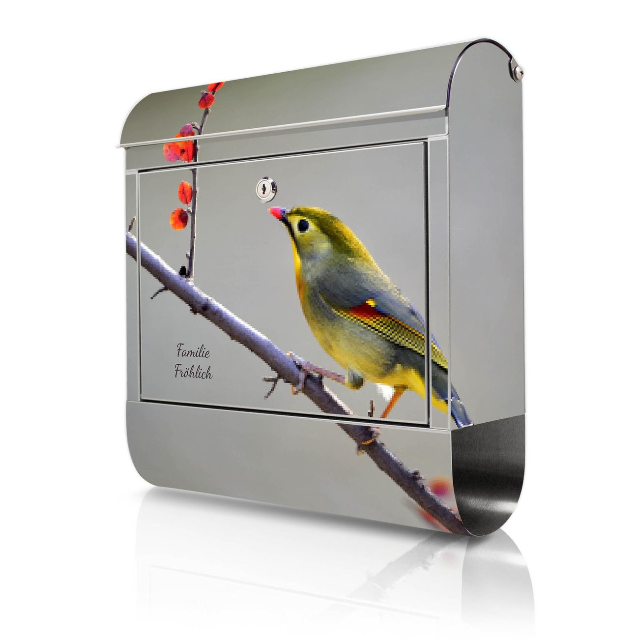 Wandbriefkasten Edelstahl Motiv Herbst Vogel