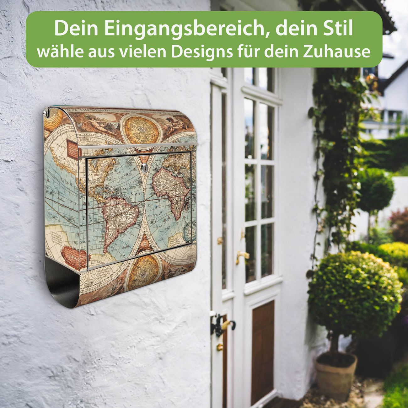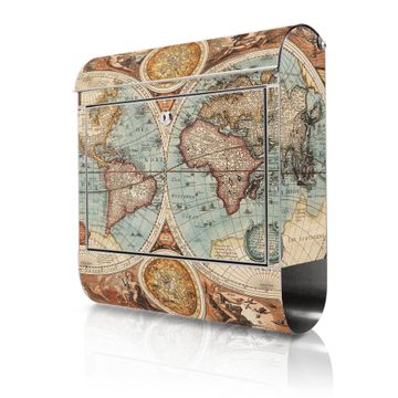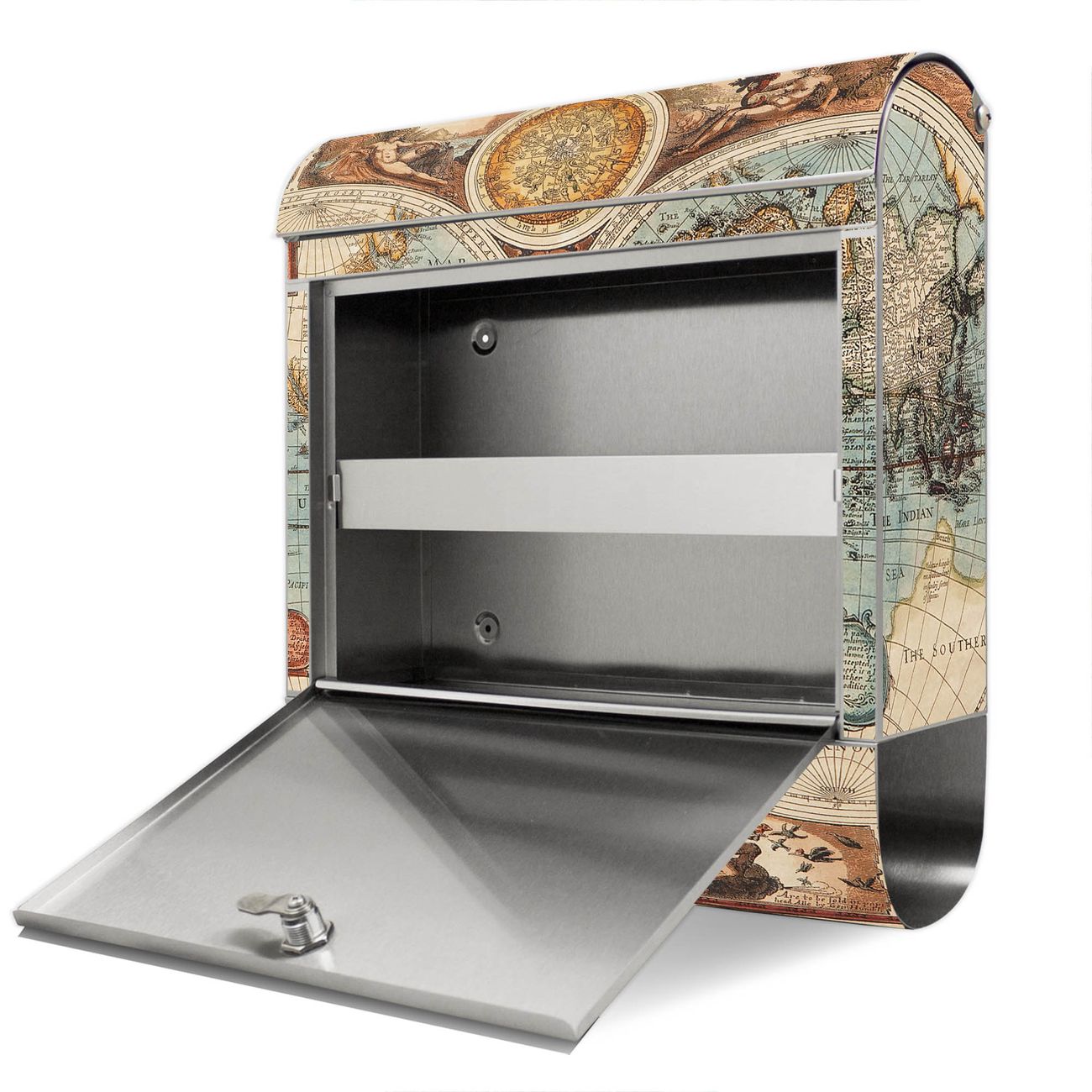 Wandbriefkasten Edelstahl Motiv Historische Weltkarte