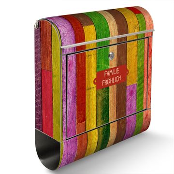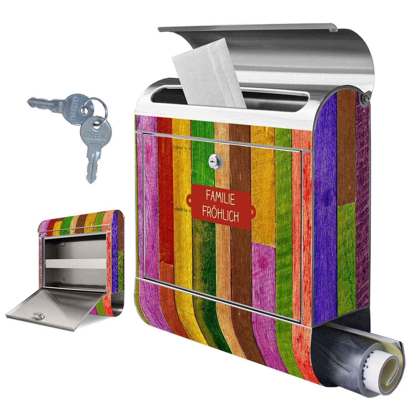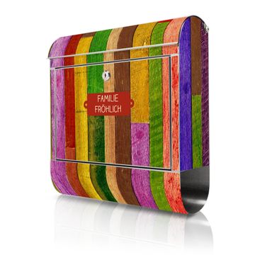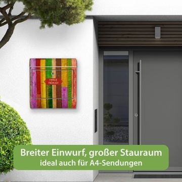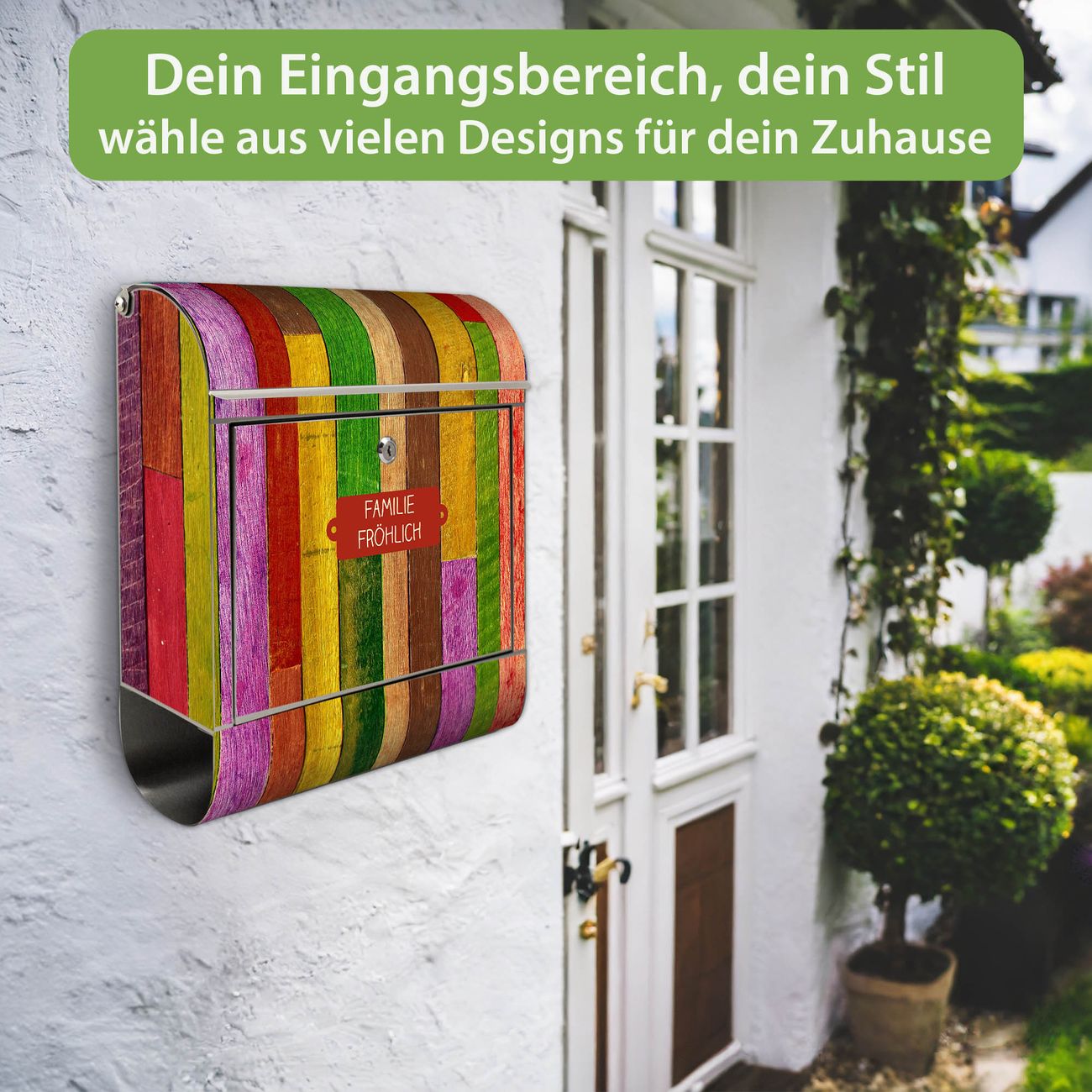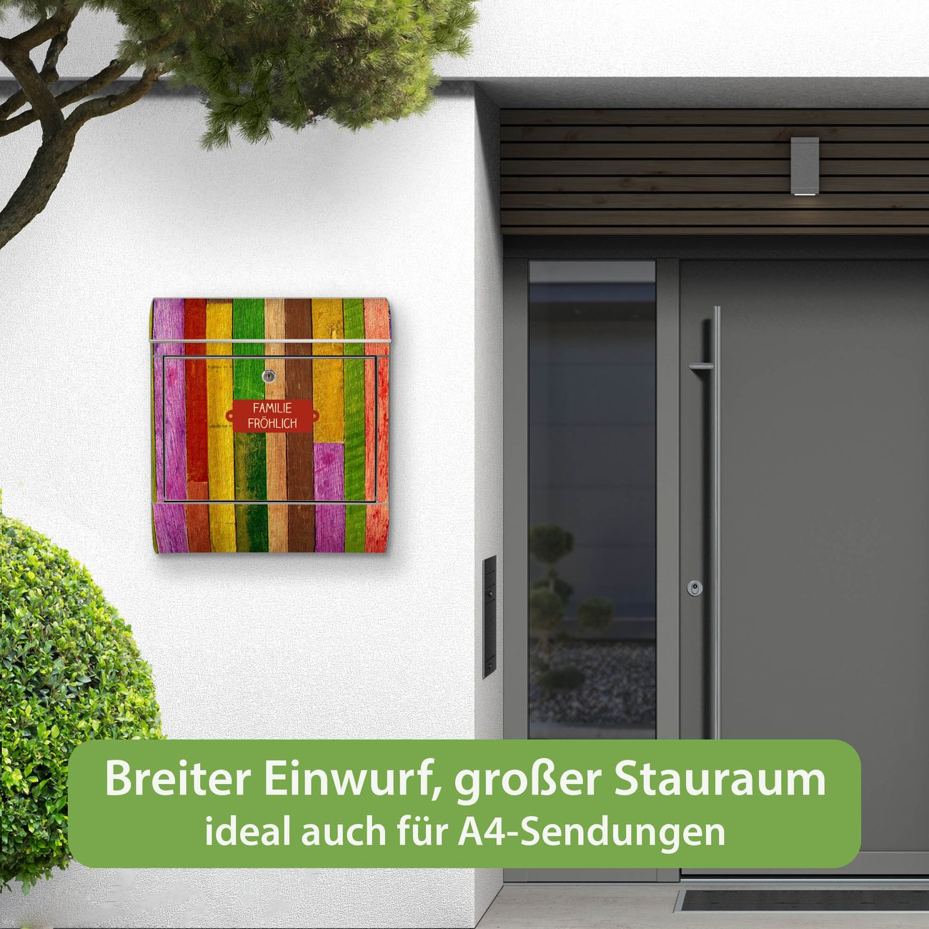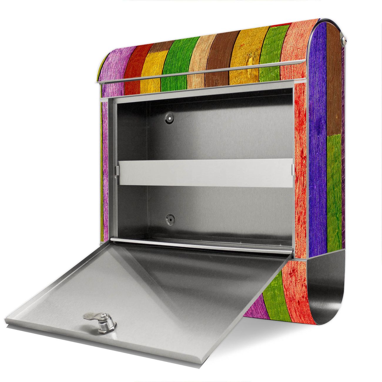 Wandbriefkasten Edelstahl Motiv Holz Collage Bunt