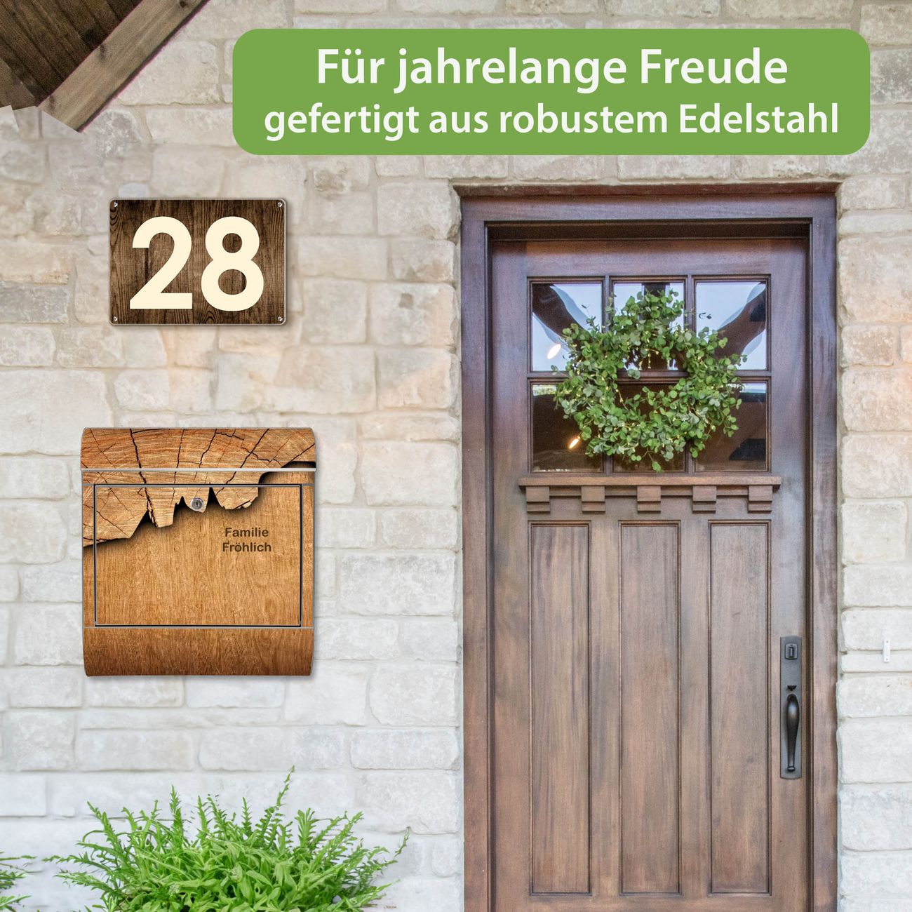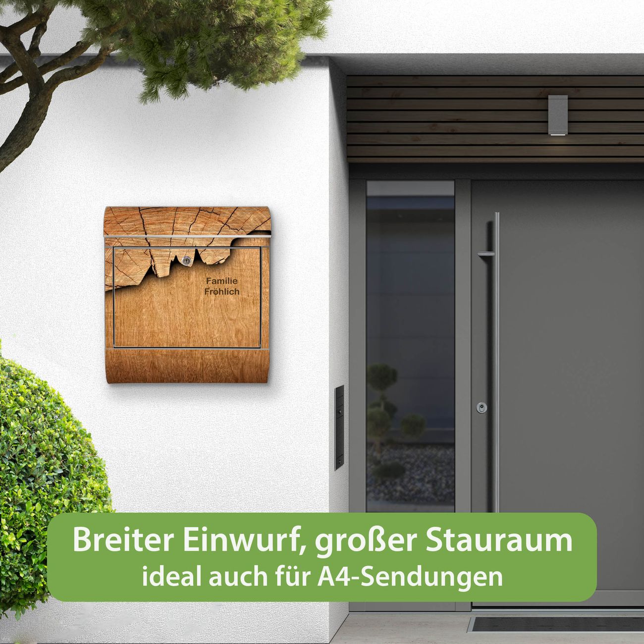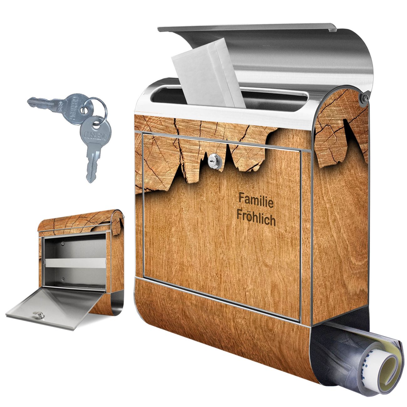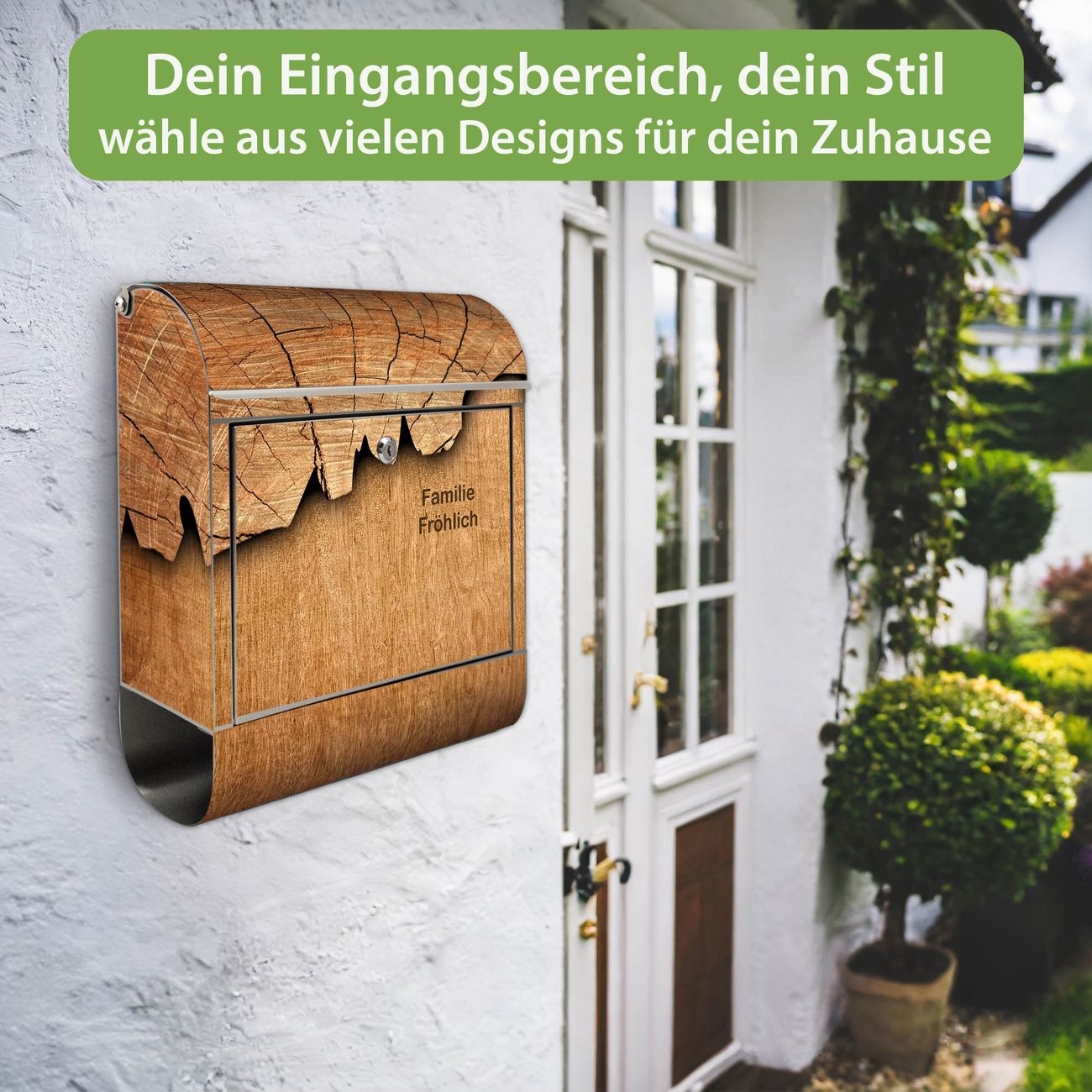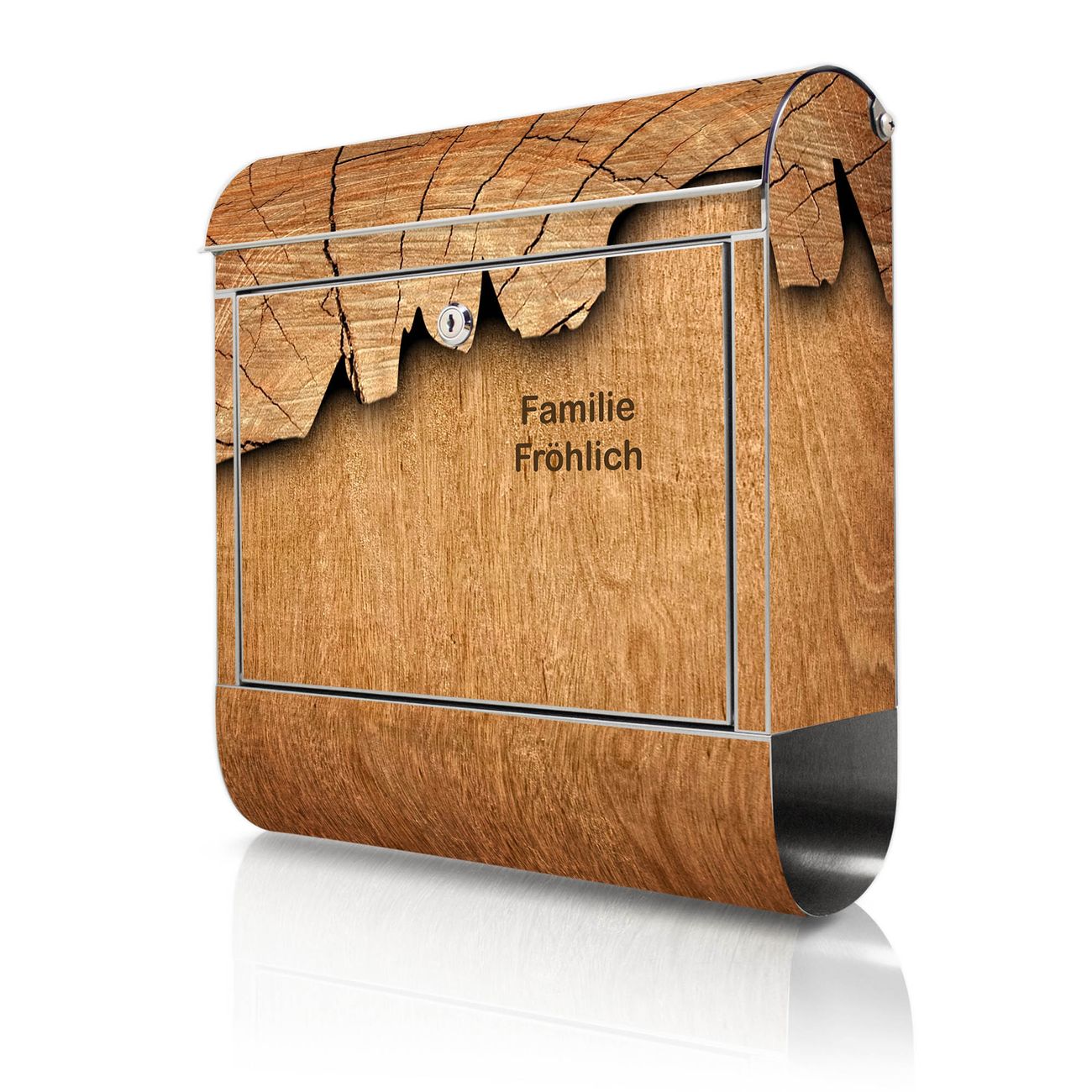 Wandbriefkasten Edelstahl Motiv Holz