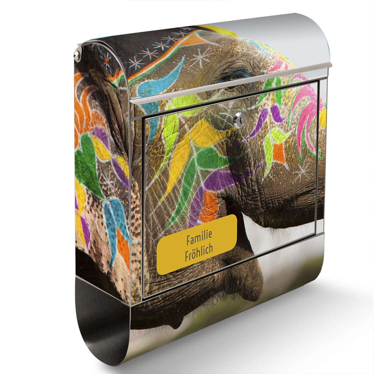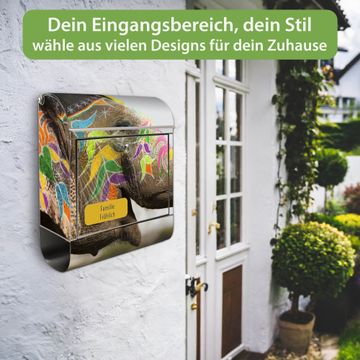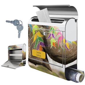 Wandbriefkasten Edelstahl Motiv Indischer Elephant