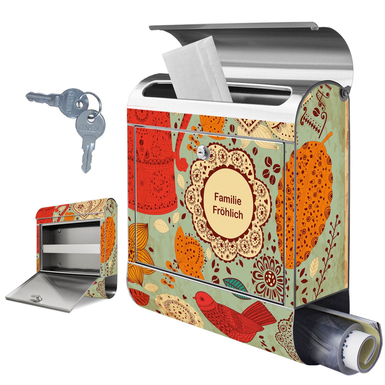 Wandbriefkasten Edelstahl Motiv Indischer Kaffee