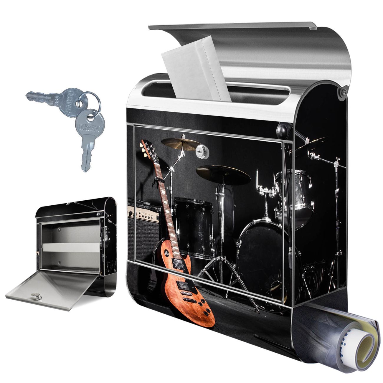 Wandbriefkasten Edelstahl Motiv Jam Session