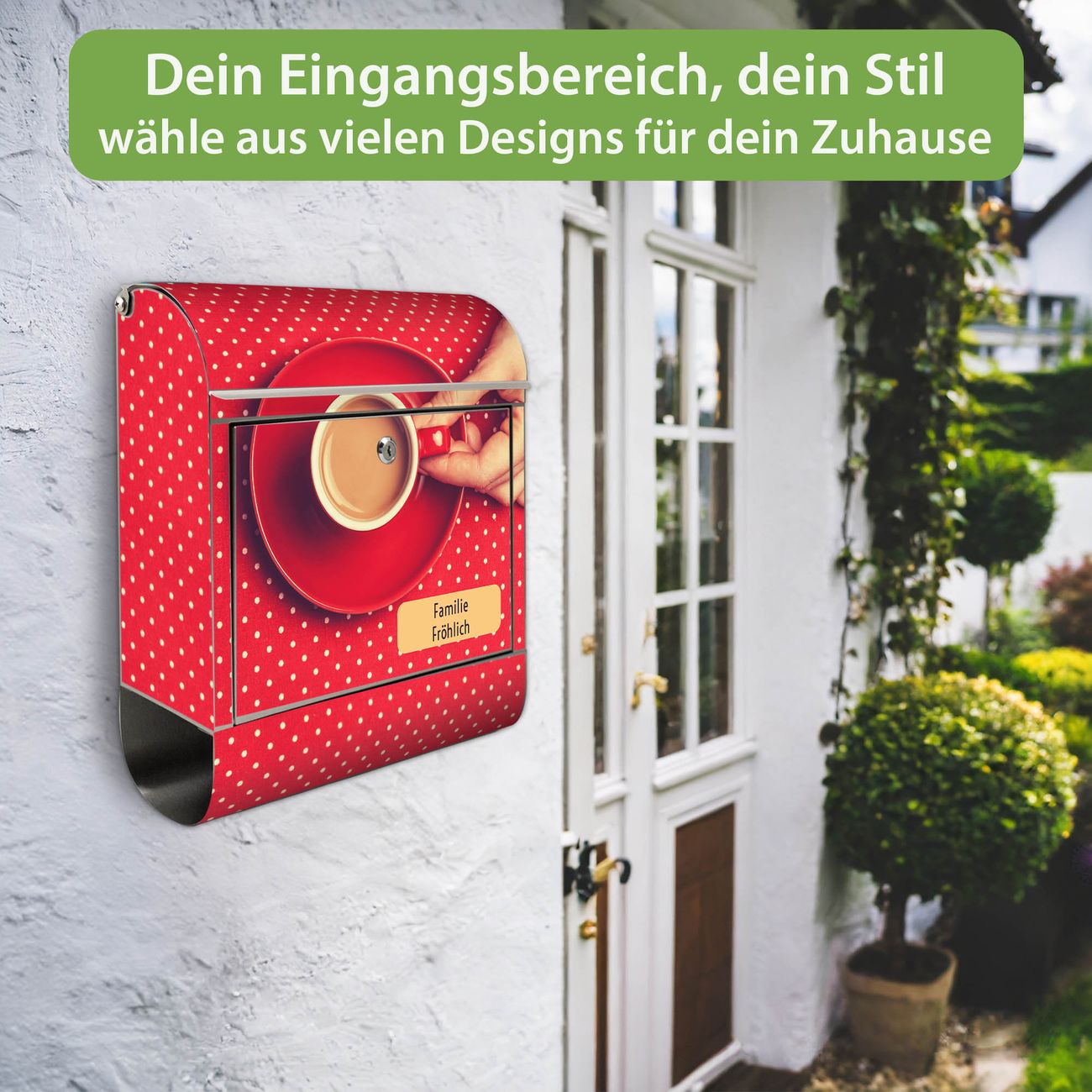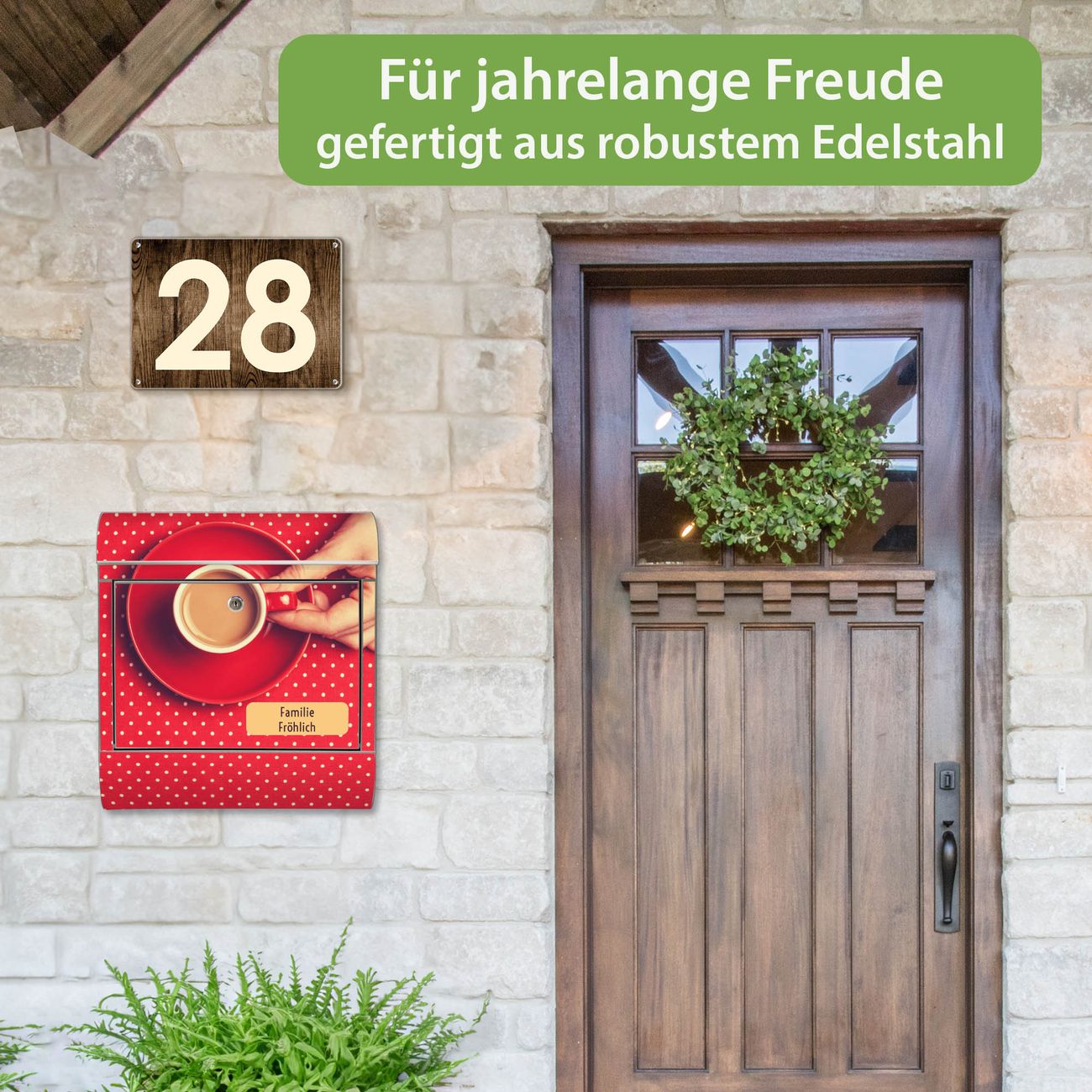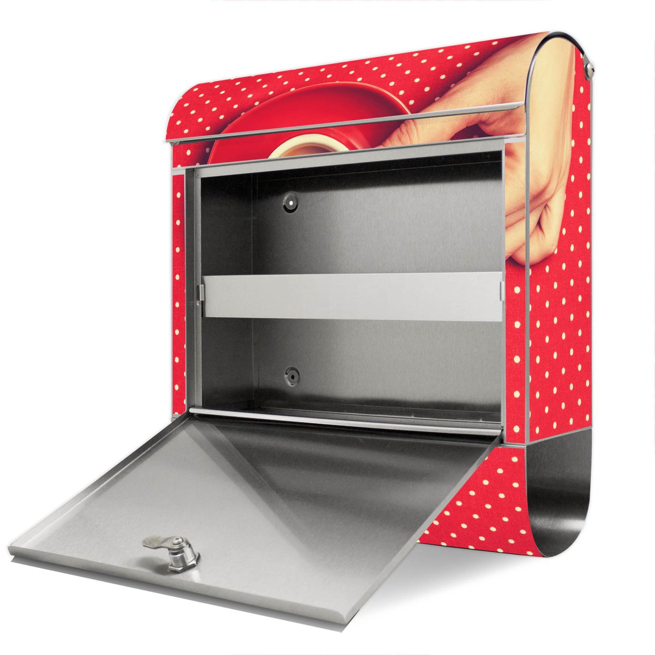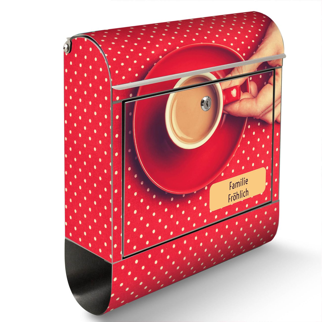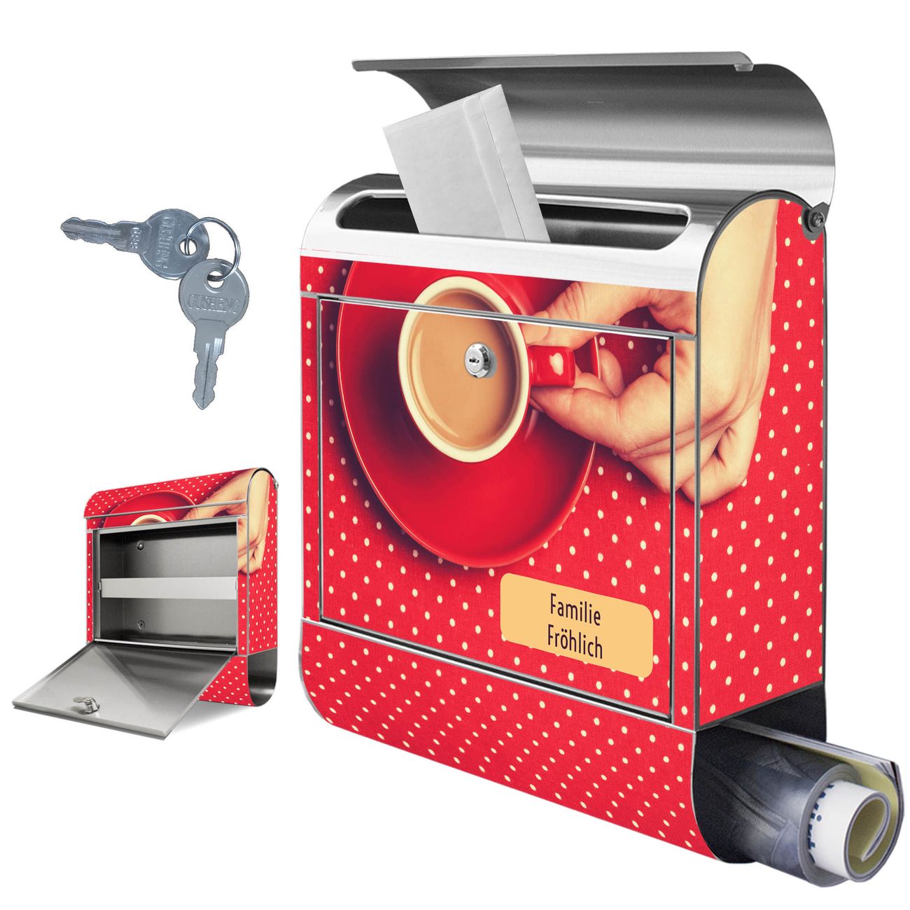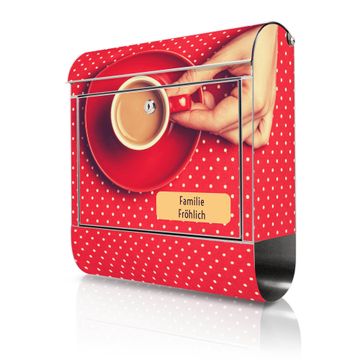 Wandbriefkasten Edelstahl Motiv Kaffee Rot Weiss