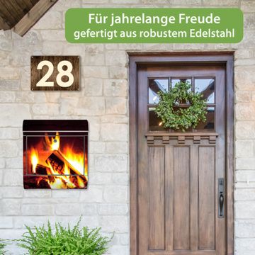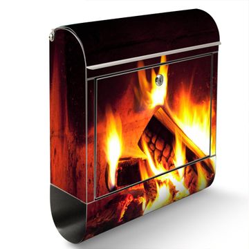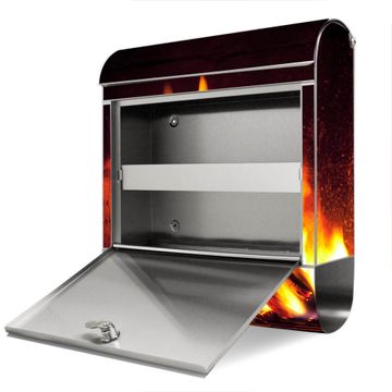 Wandbriefkasten Edelstahl Motiv Kaminfeuer
