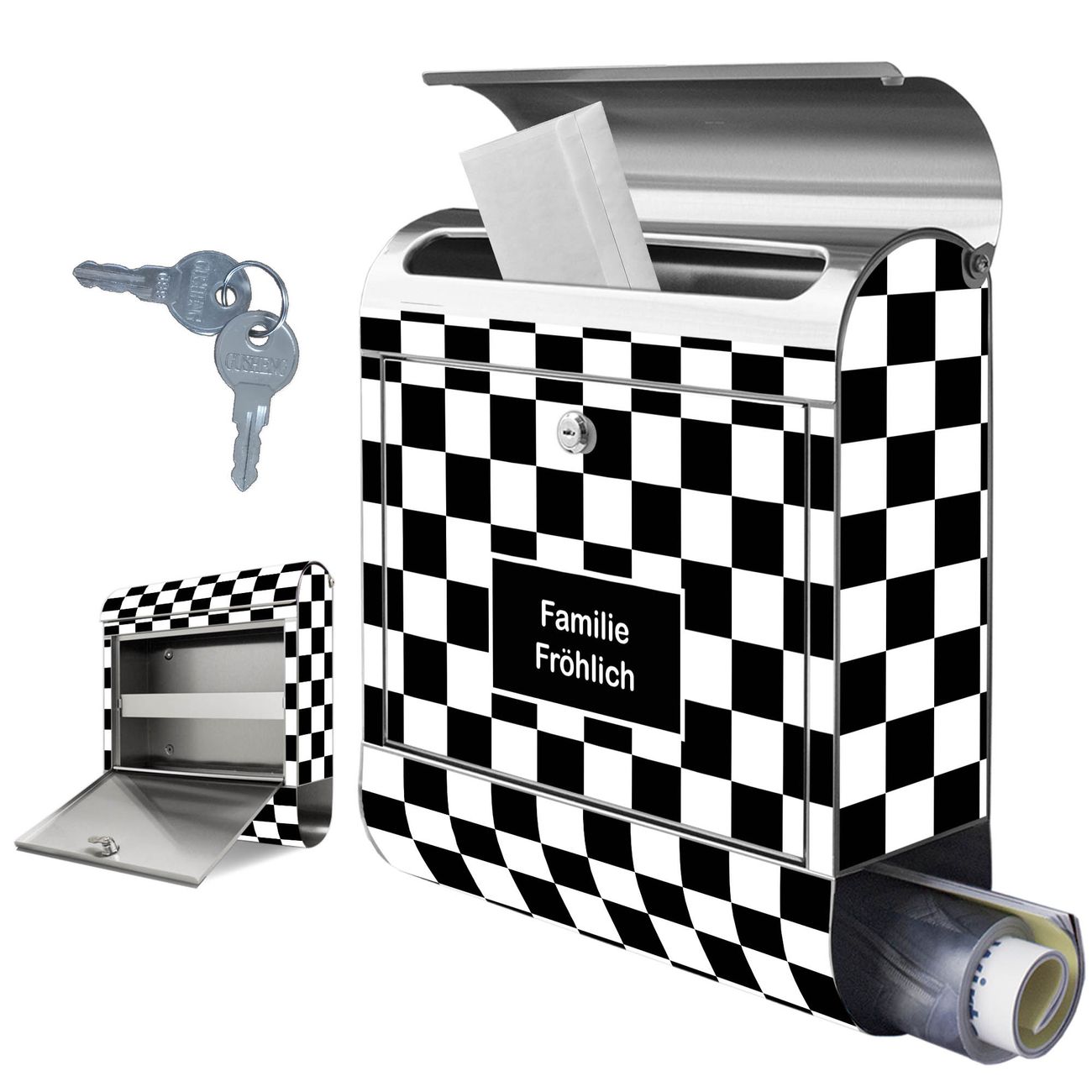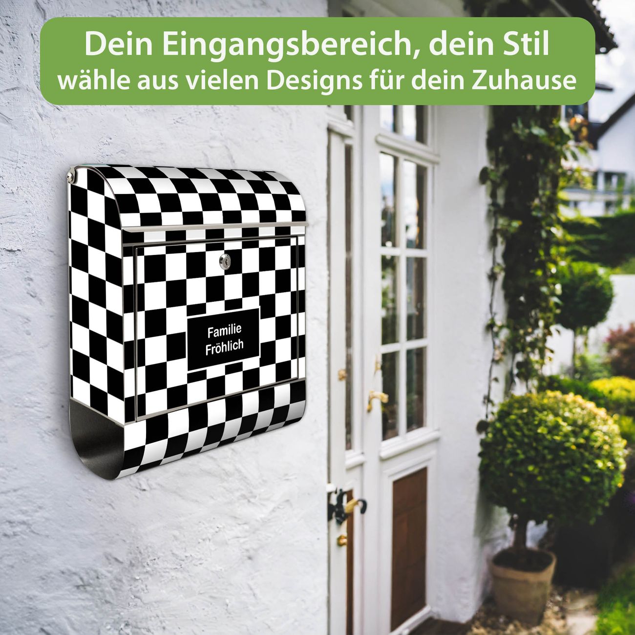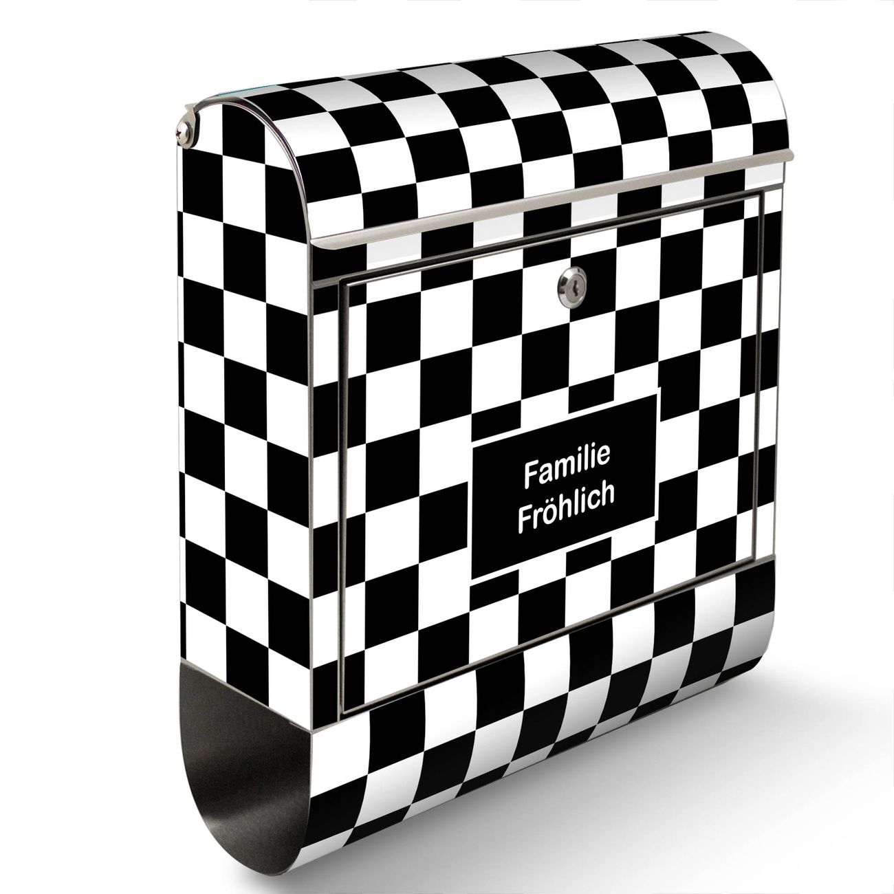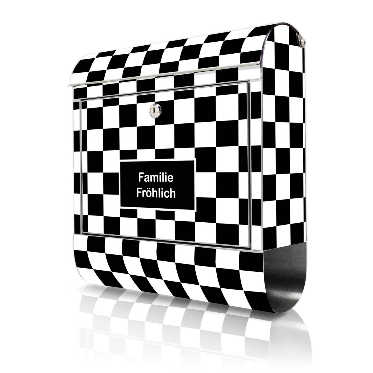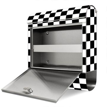 Wandbriefkasten Edelstahl Motiv Karo Schwarz