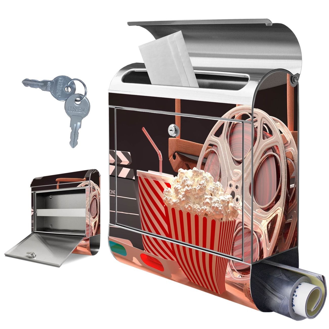 Wandbriefkasten Edelstahl Motiv Kino