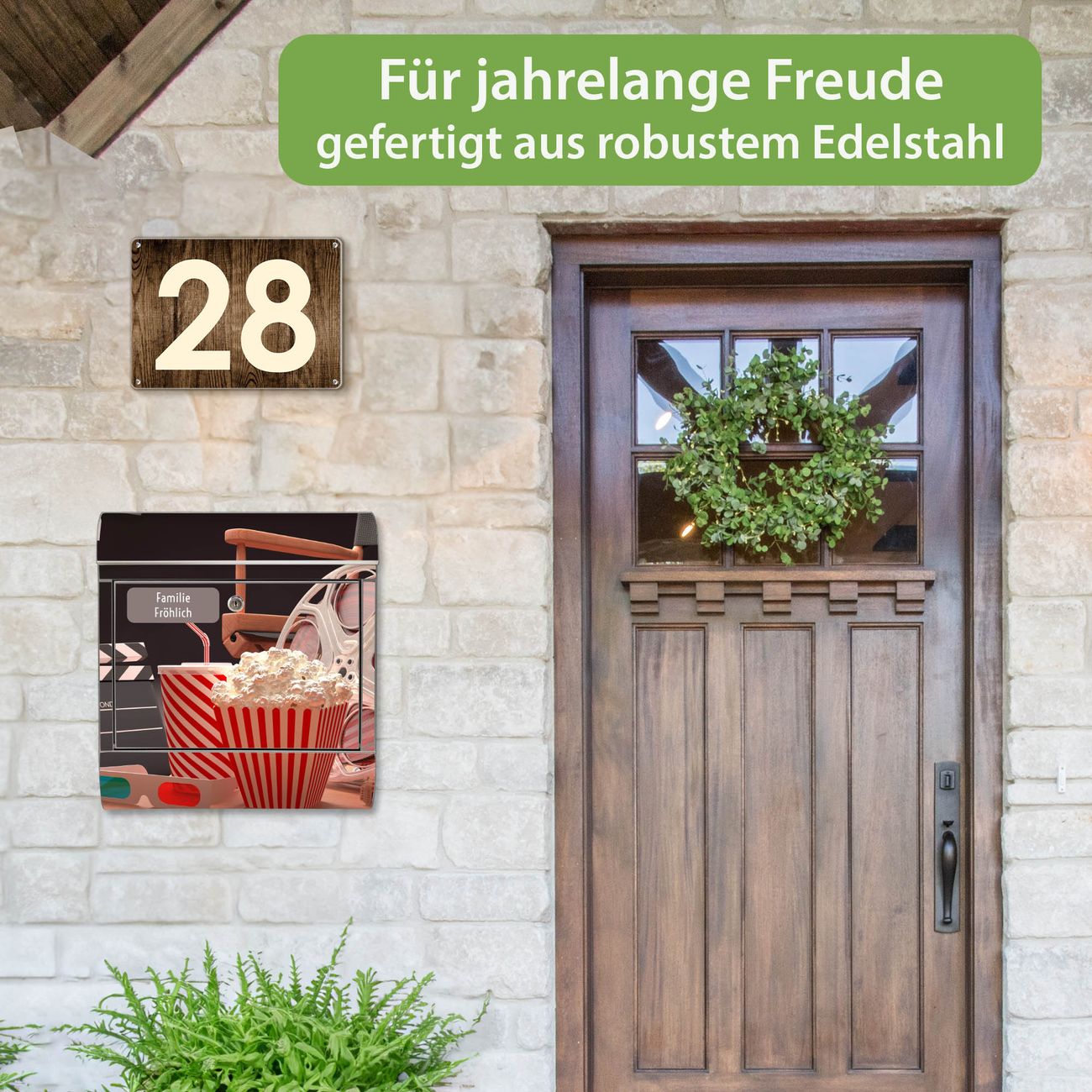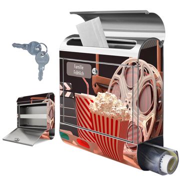 FUNKTION: Der banjado Edelstahl Briefkasten mit Motiv Motiv Kino bietet Ihnen mit seinem Fassungsvermögen genügend Platz auch für große A4 Sendungen. Das integrierte Zeitungsfach eignet sich hervorragend um unkompliziert die Tageszeitung zu fassen. Auf Wunsch können Sie bei uns den passenden Ständer kaufen und so aus dem Wandbriefkasten einen Standbriefkasten machen. DESIGN: Der Motivbriefkasten hat ein sehr ansprechendes und ausgefallenes Design, damit entlocken Sie Ihren Nachbarn und dem Postboten ein Lächeln. Heben Sie Sich ab von der tristen grauen Masse ohne auf Funktionalität zu verzichten. DETAILS: Der Design Briefkasten mit Motiv Motiv Kino besteht aus hochwertigem 18/0 Edelstahl. Das Motiv besteht aus einer wetter- und UV-resistenten Folie, die mit einem Schutzlaminat überzogen ist. Der Briefkasten wird mit Montagematerial und zwei Schlüsseln geliefert. NUTZEN: Sie können diesen Briefkasten sowohl als Wandbriefkasten montieren oder einen passenden Ständer auswählen und als Standbriefkasten einbetonieren. Die Größe bietet genügend Platz für Sendungen aller Art, das hochwertige Edelstahl ist rostfrei und die Motivfolie absolut wetterfest. SCHUTZ: Um Ihre Post optimal vor Witterungseinflüssen wie Starkregen zu schützen, empfehlen wir, den Briefkasten geschützt anzubringen. BANJADO: Ihr Briefkasten wird in Sachsen in einer kleinen Manufaktur von Hand veredelt. Die Motivfolie ist lösungsmittelfrei und schutzlaminiert, dies sorgt für einen langen Halt. Wir legen großen Wert auf die Verbindung von Funktionalität und Design. Sie erhalten Handarbeit aus Sachsen.