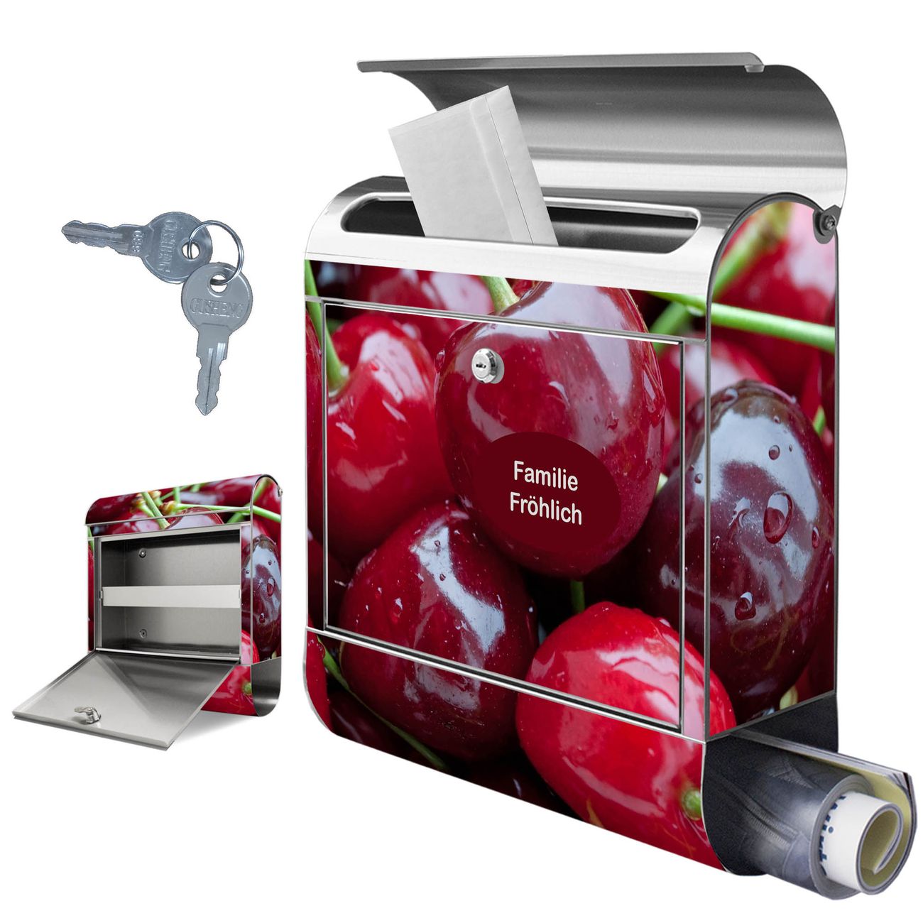 Wandbriefkasten Edelstahl Motiv Kirschen