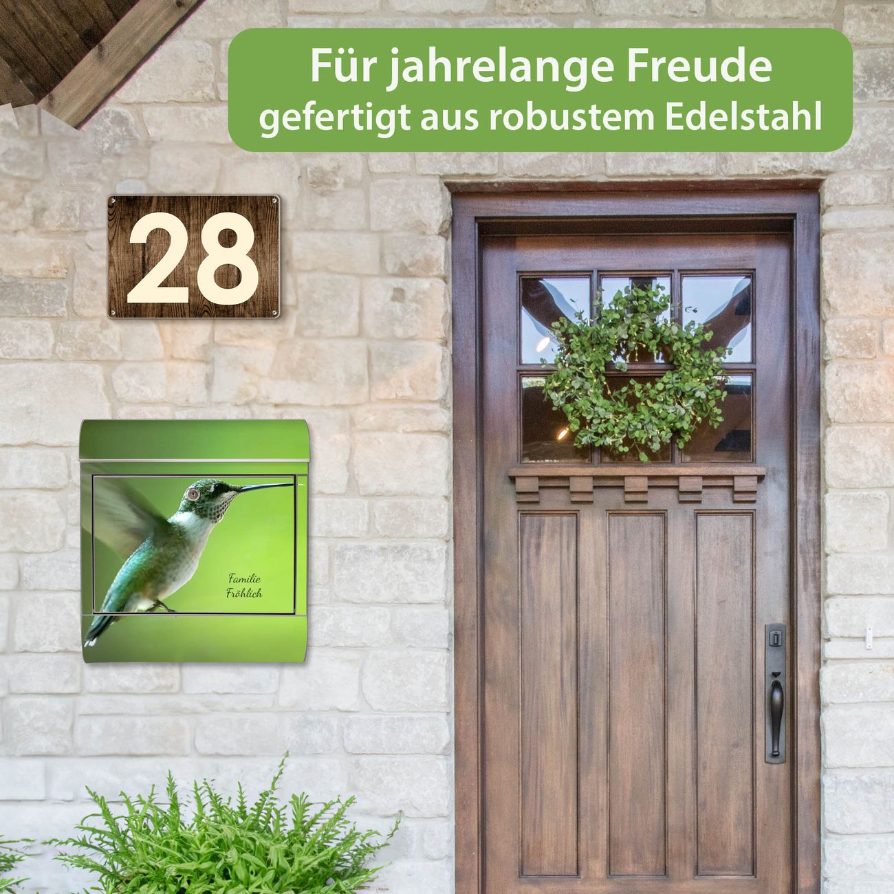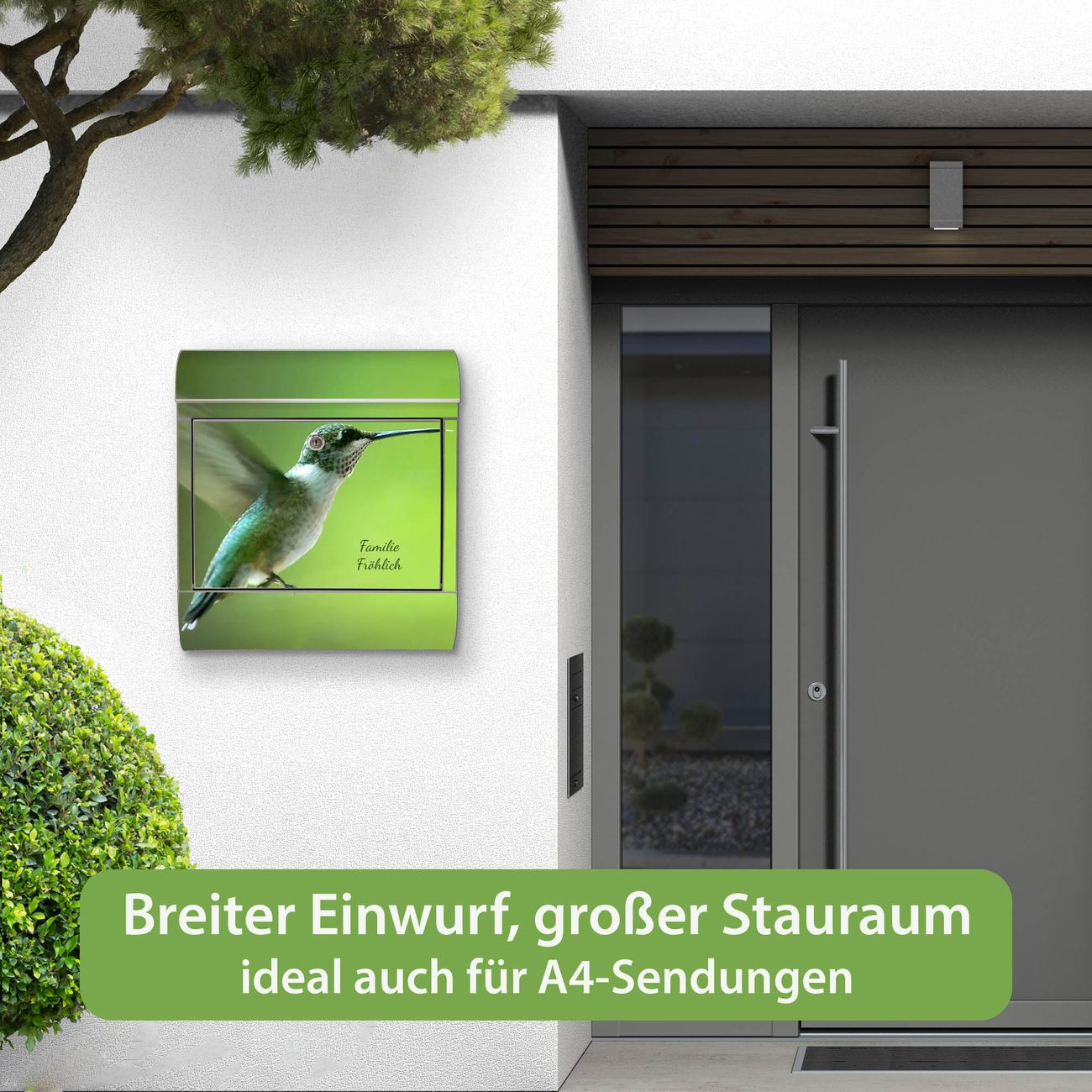 Wandbriefkasten Edelstahl Motiv Kolibri
