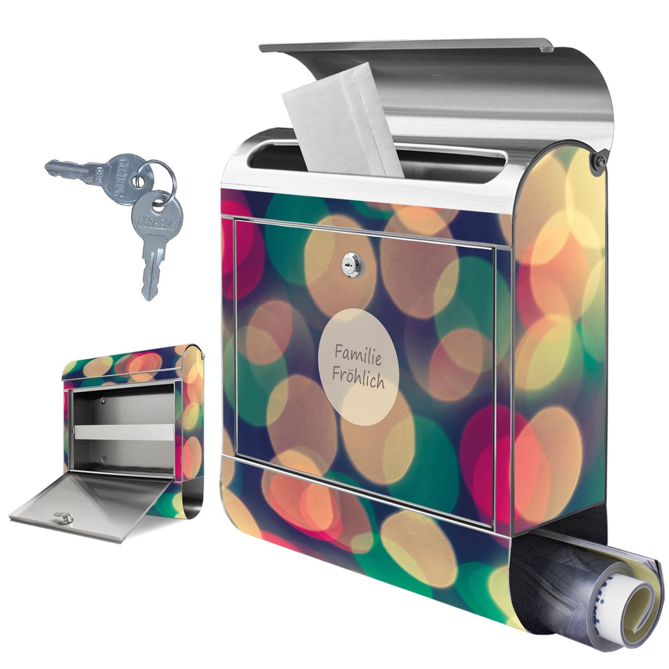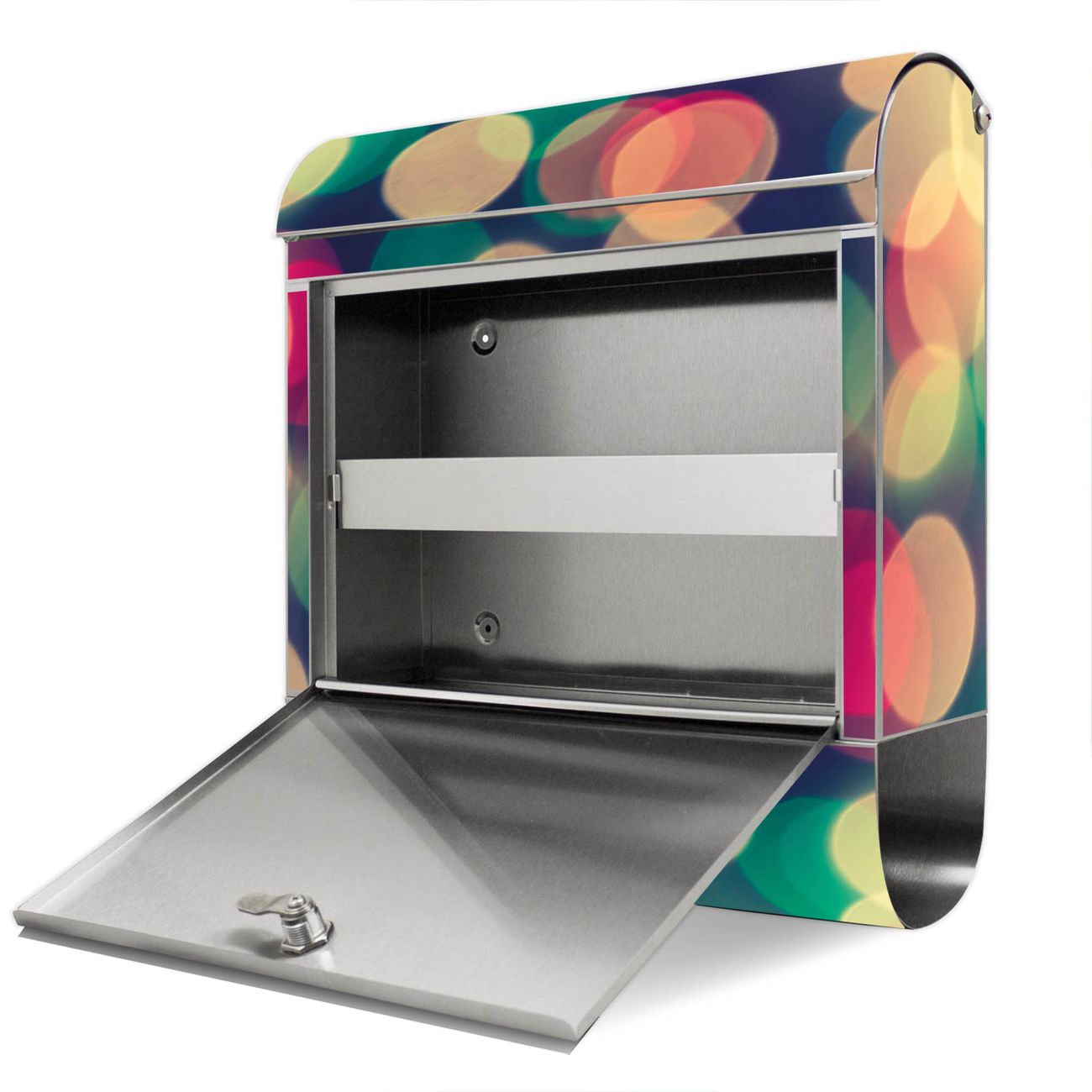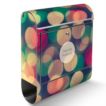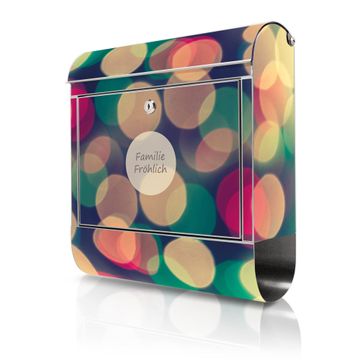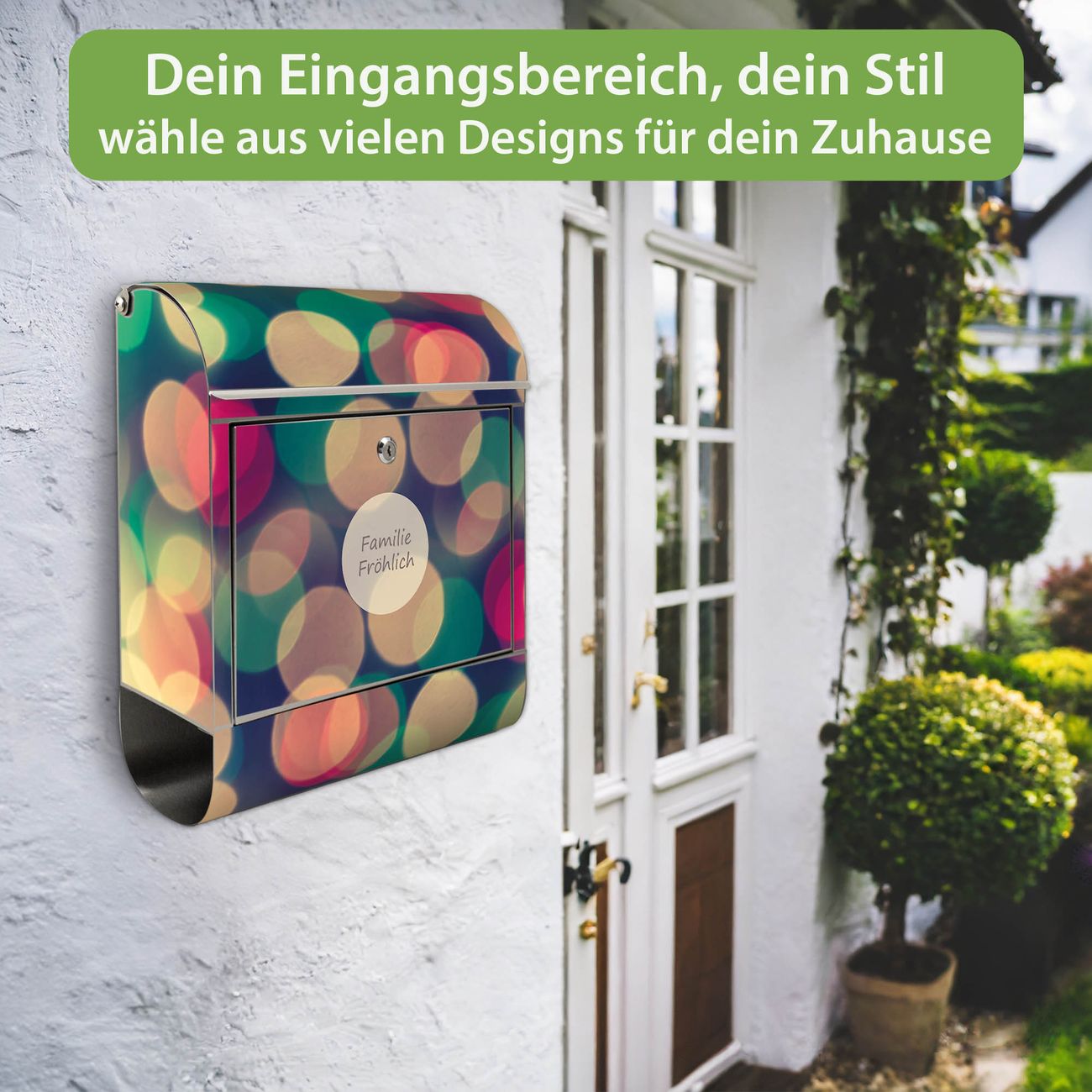Wandbriefkasten Edelstahl Motiv Lichtpunkte Weiß Grün Rot