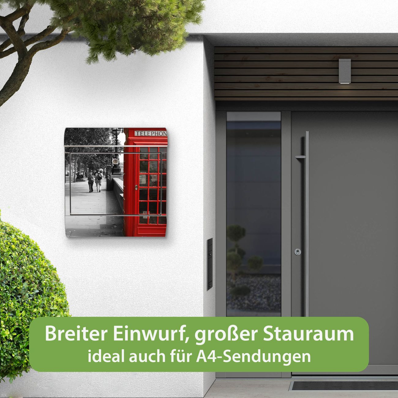 Wandbriefkasten Edelstahl Motiv London Red Telephone