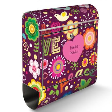 Wandbriefkasten Edelstahl Motiv Love and Peace