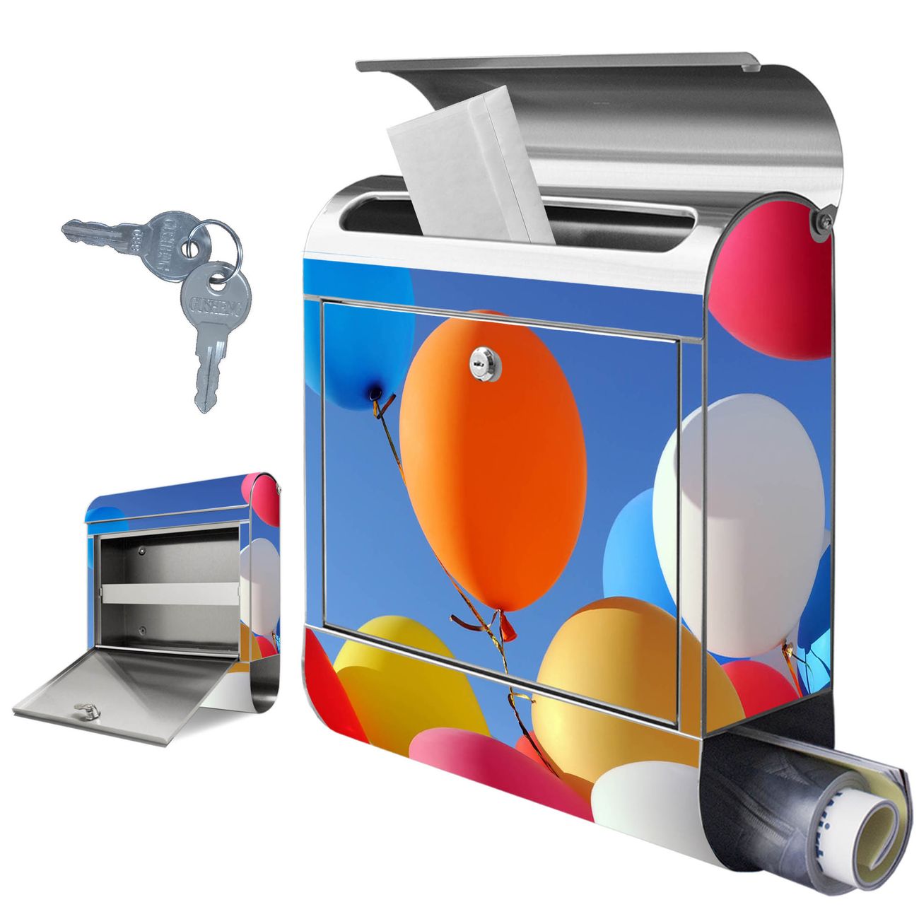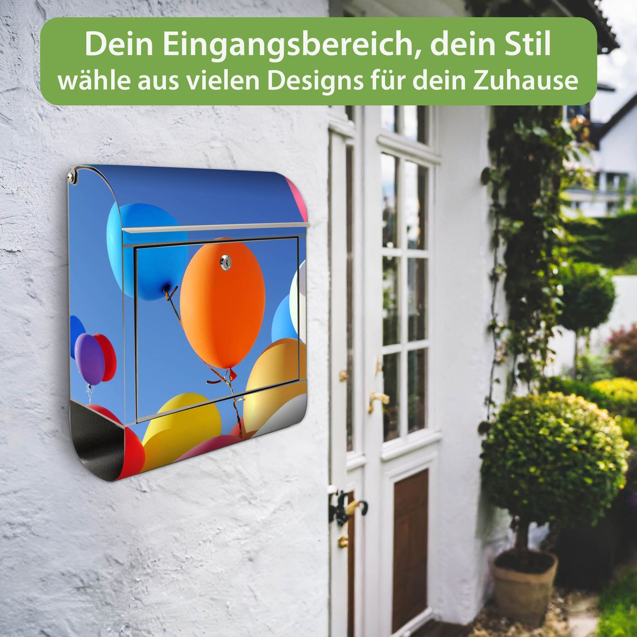 Wandbriefkasten Edelstahl Motiv Luftballons