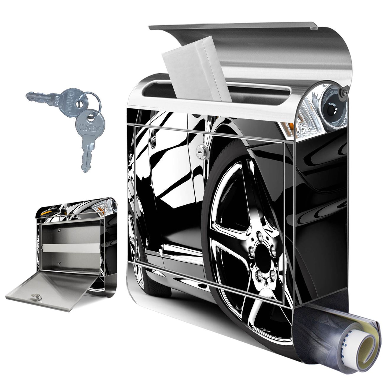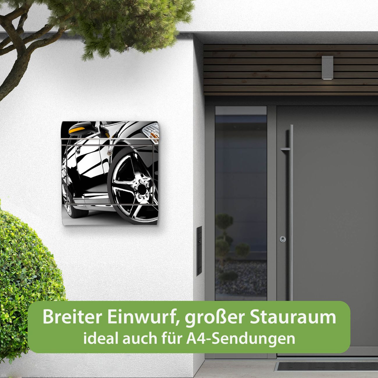 Wandbriefkasten Edelstahl Motiv Luxus Car