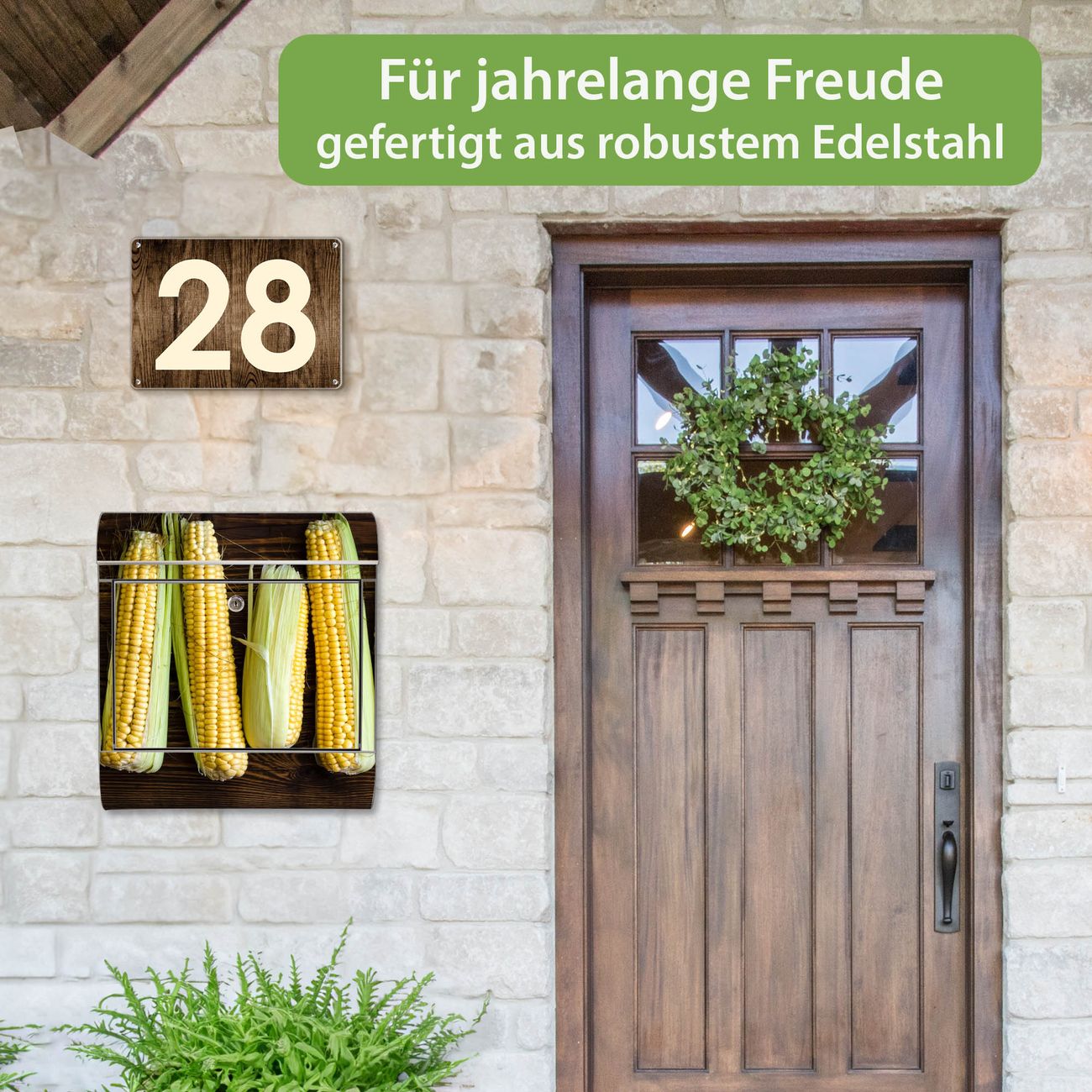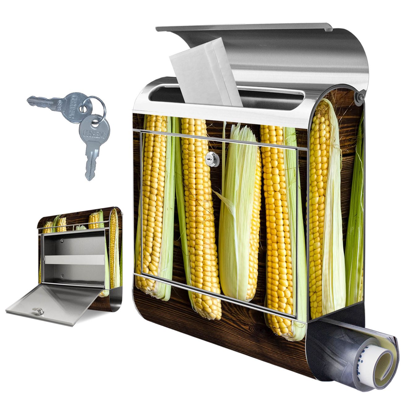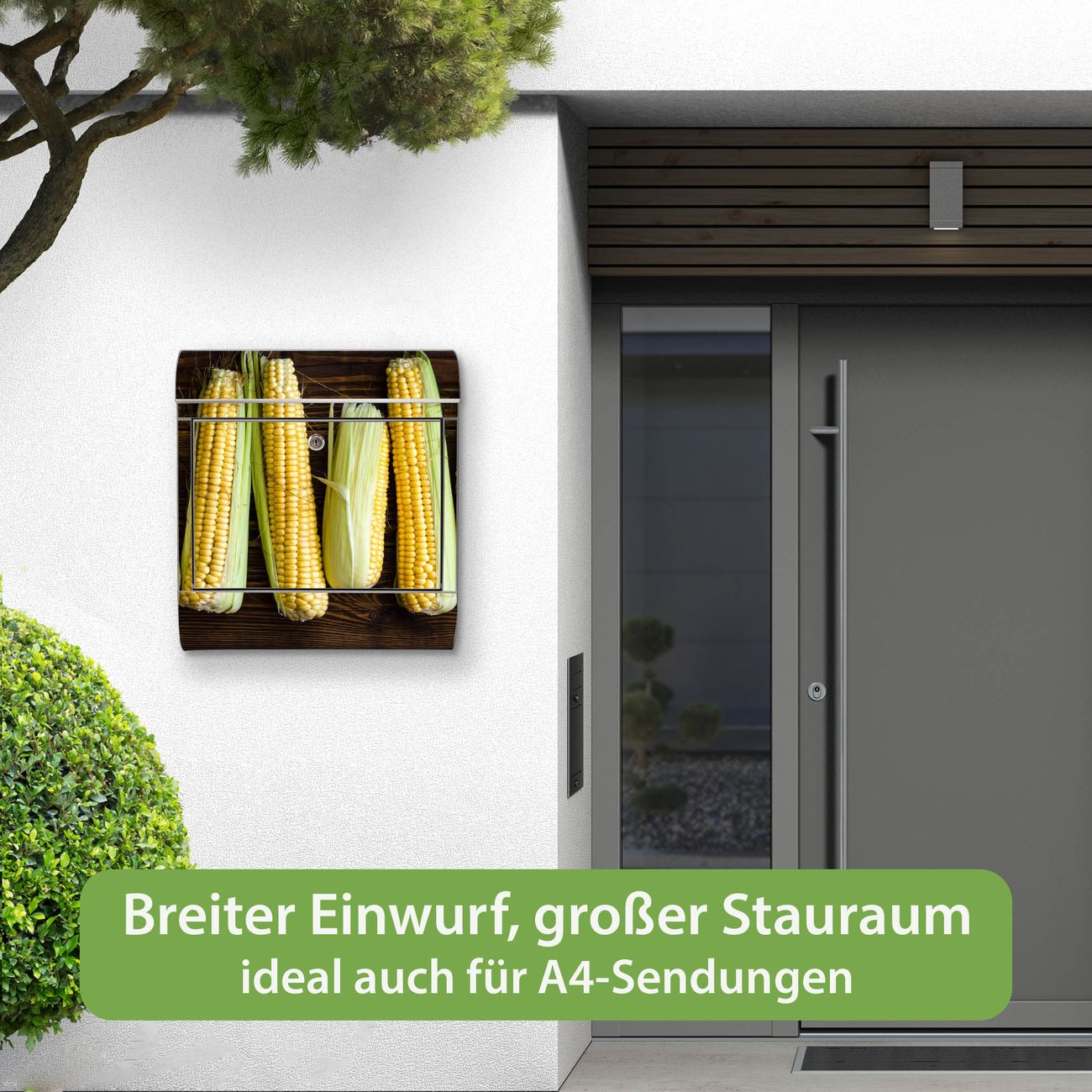 Wandbriefkasten Edelstahl Motiv Maiskolben