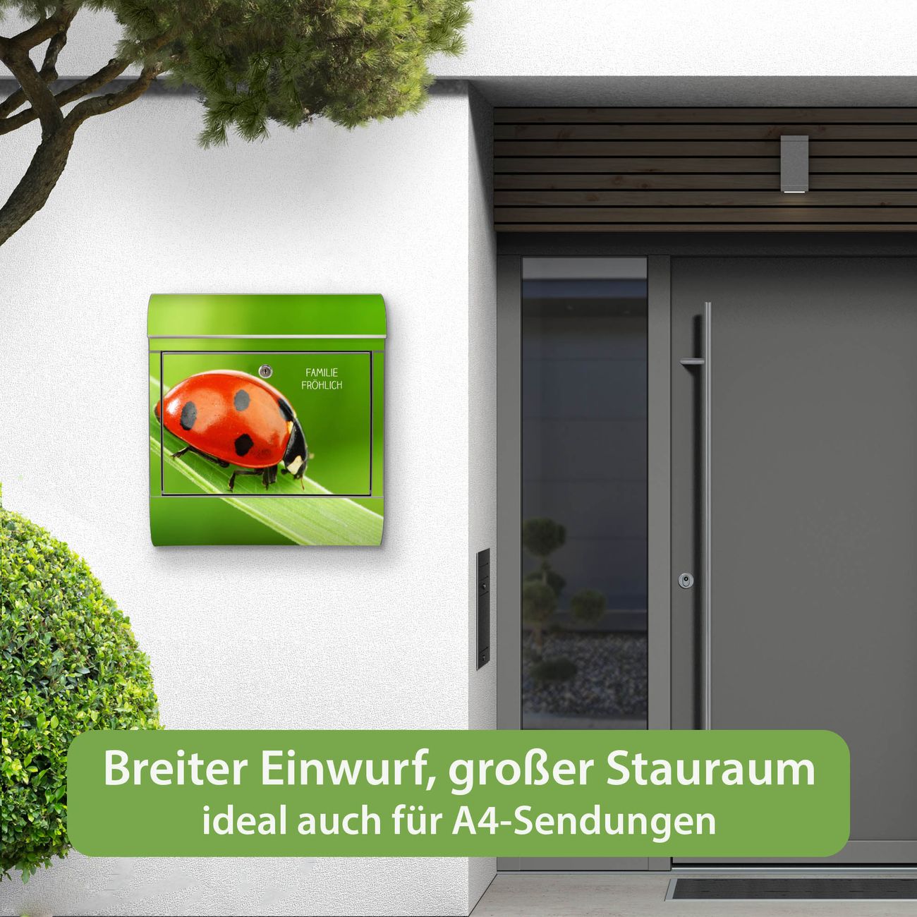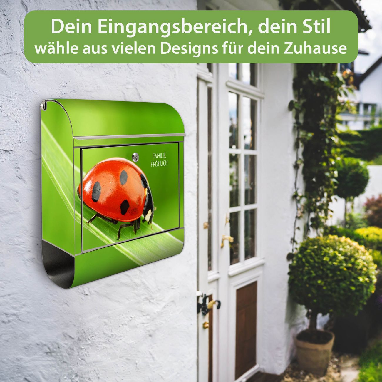 Wandbriefkasten Edelstahl Motiv Marienkäfer