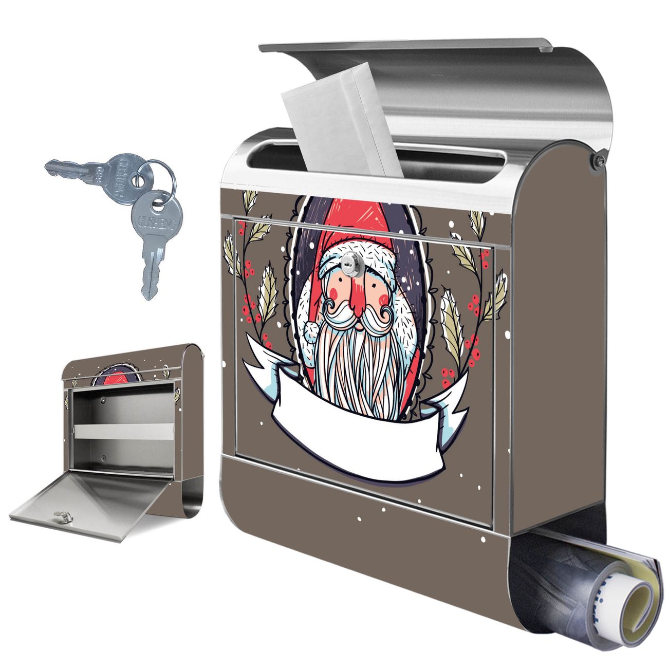 Wandbriefkasten Edelstahl Motiv Merry XMAS