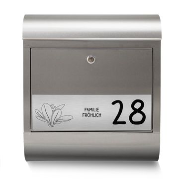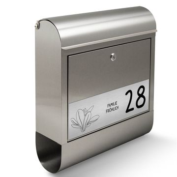 Wandbriefkasten Edelstahl mit Gravur WT Magnolien