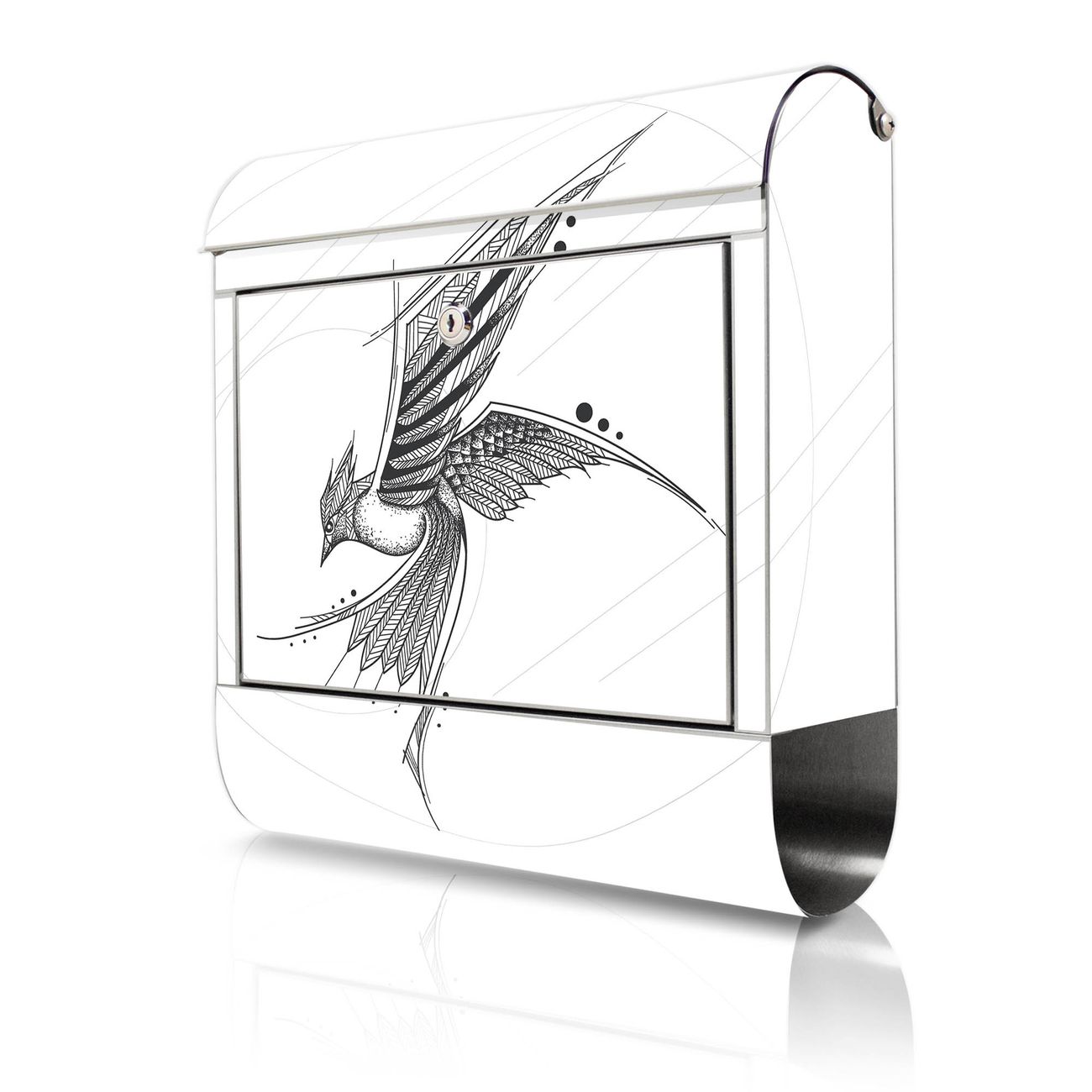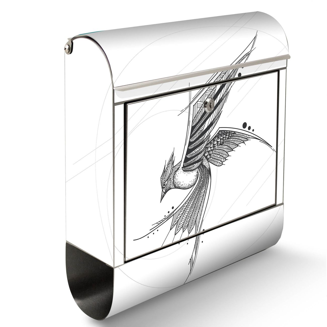 Wandbriefkasten Edelstahl Motiv Abstrakte Schwalbe