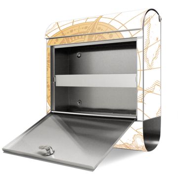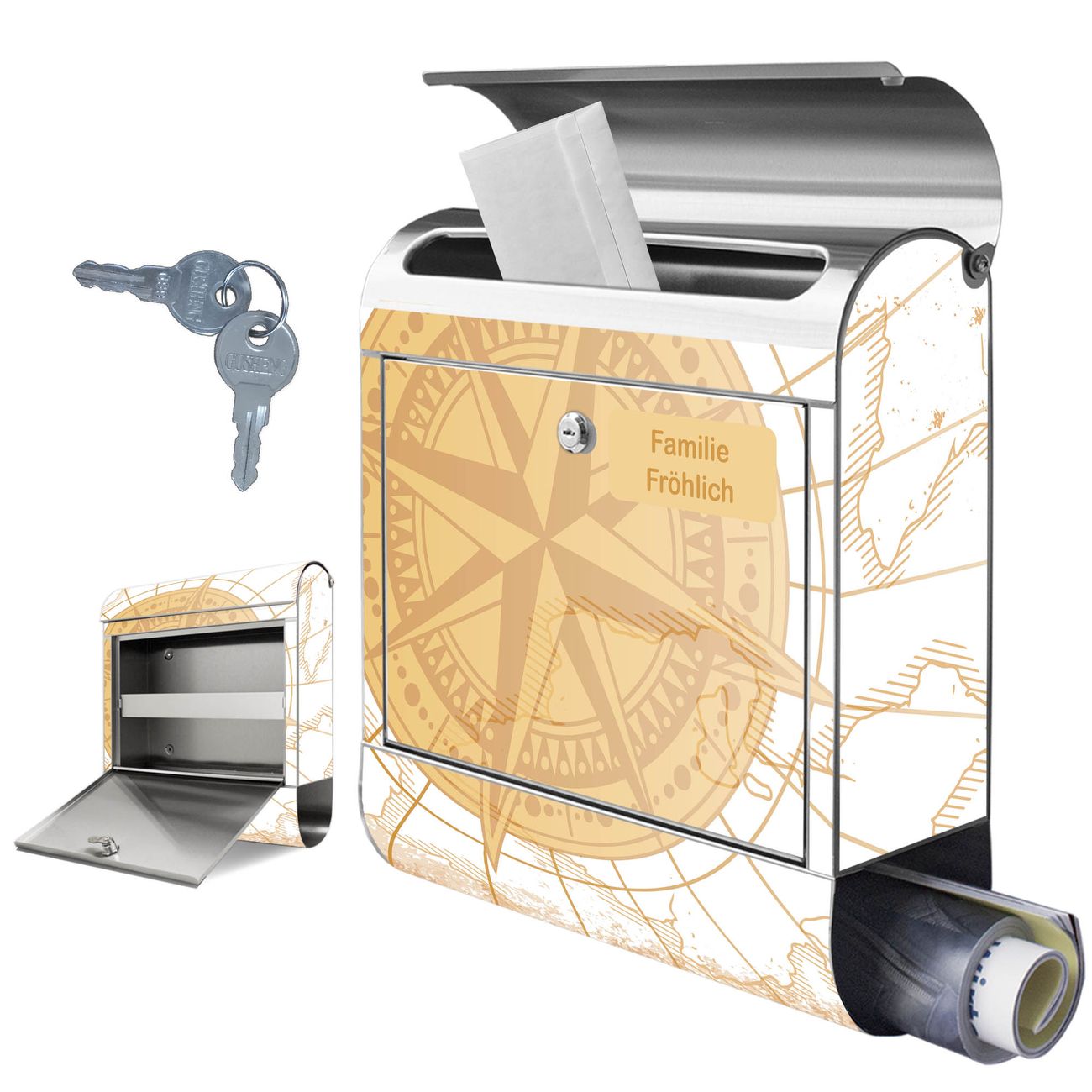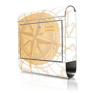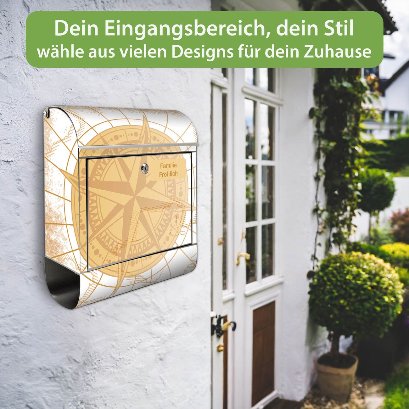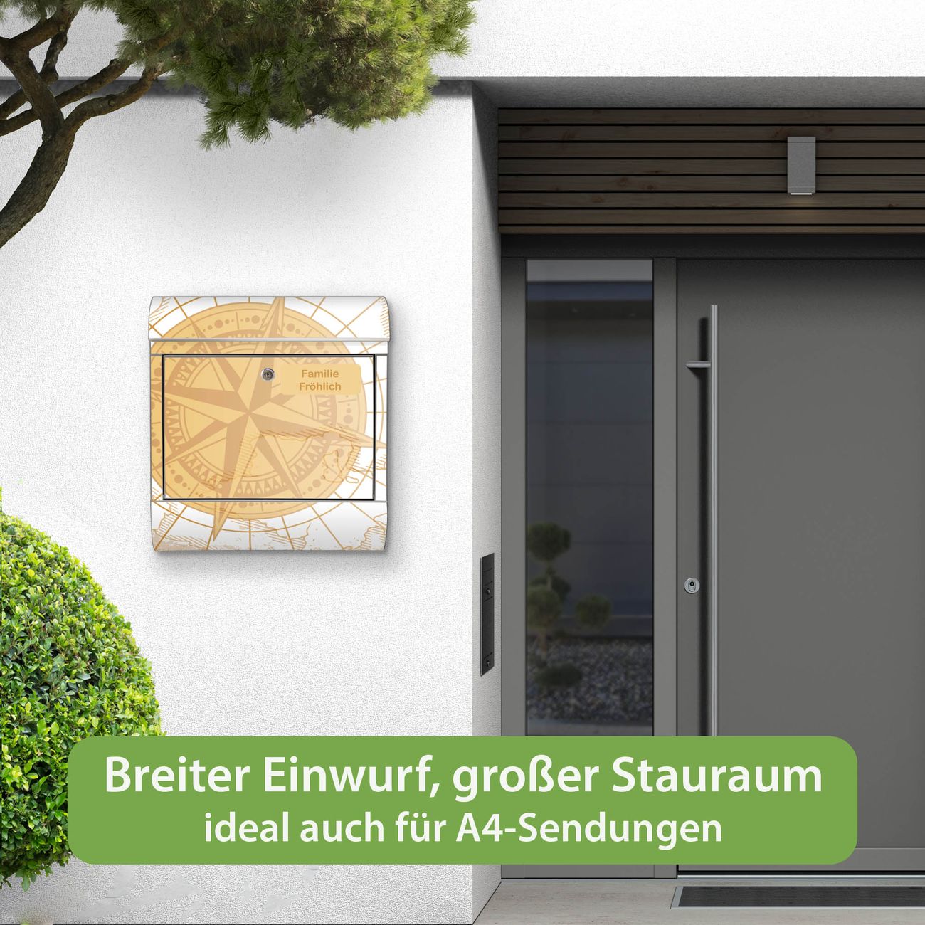 Wandbriefkasten Edelstahl Motiv Antike Kompassrose